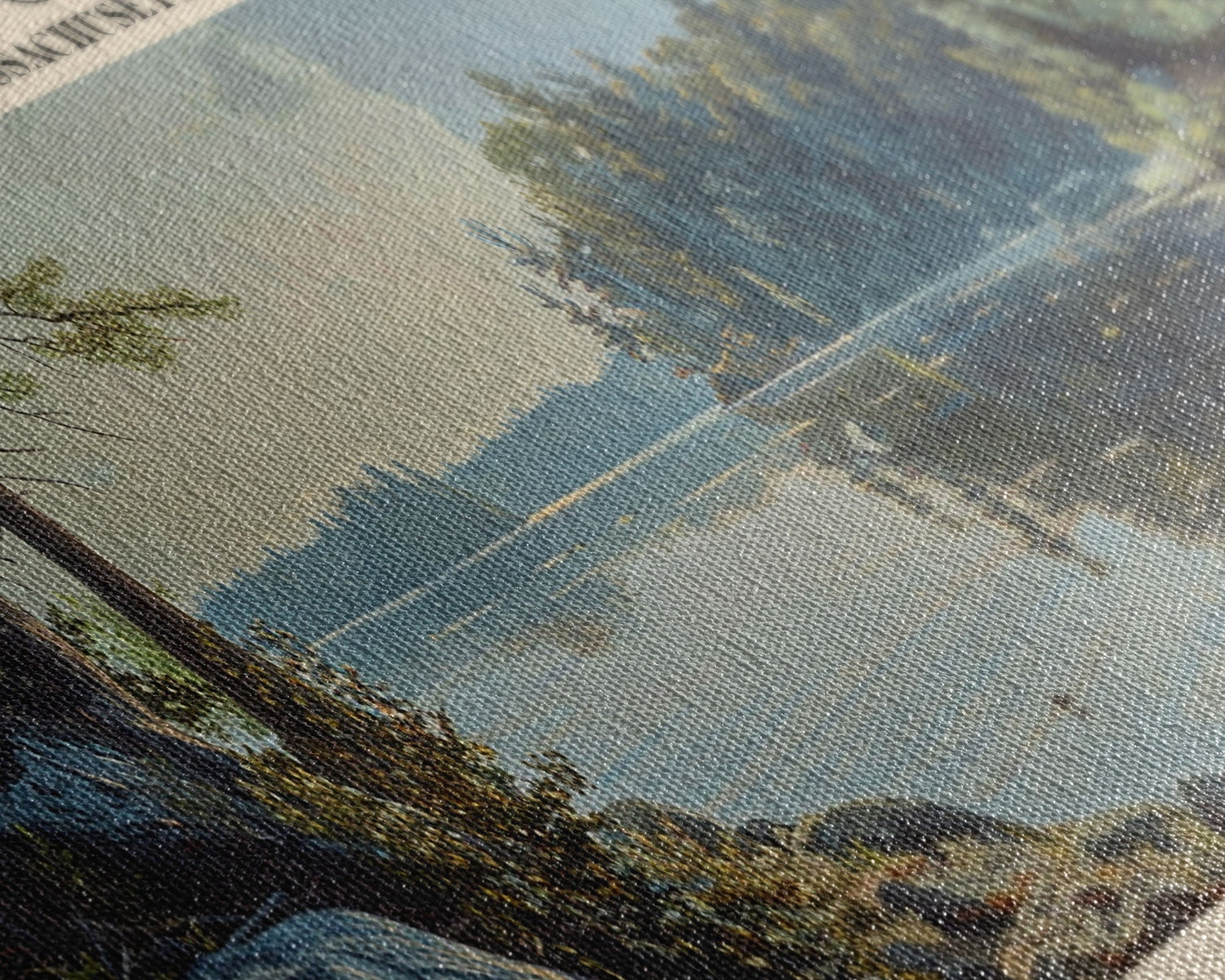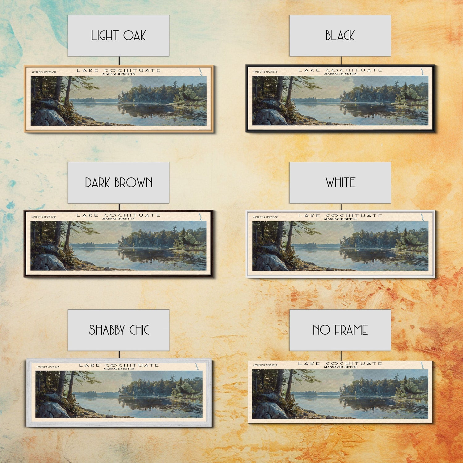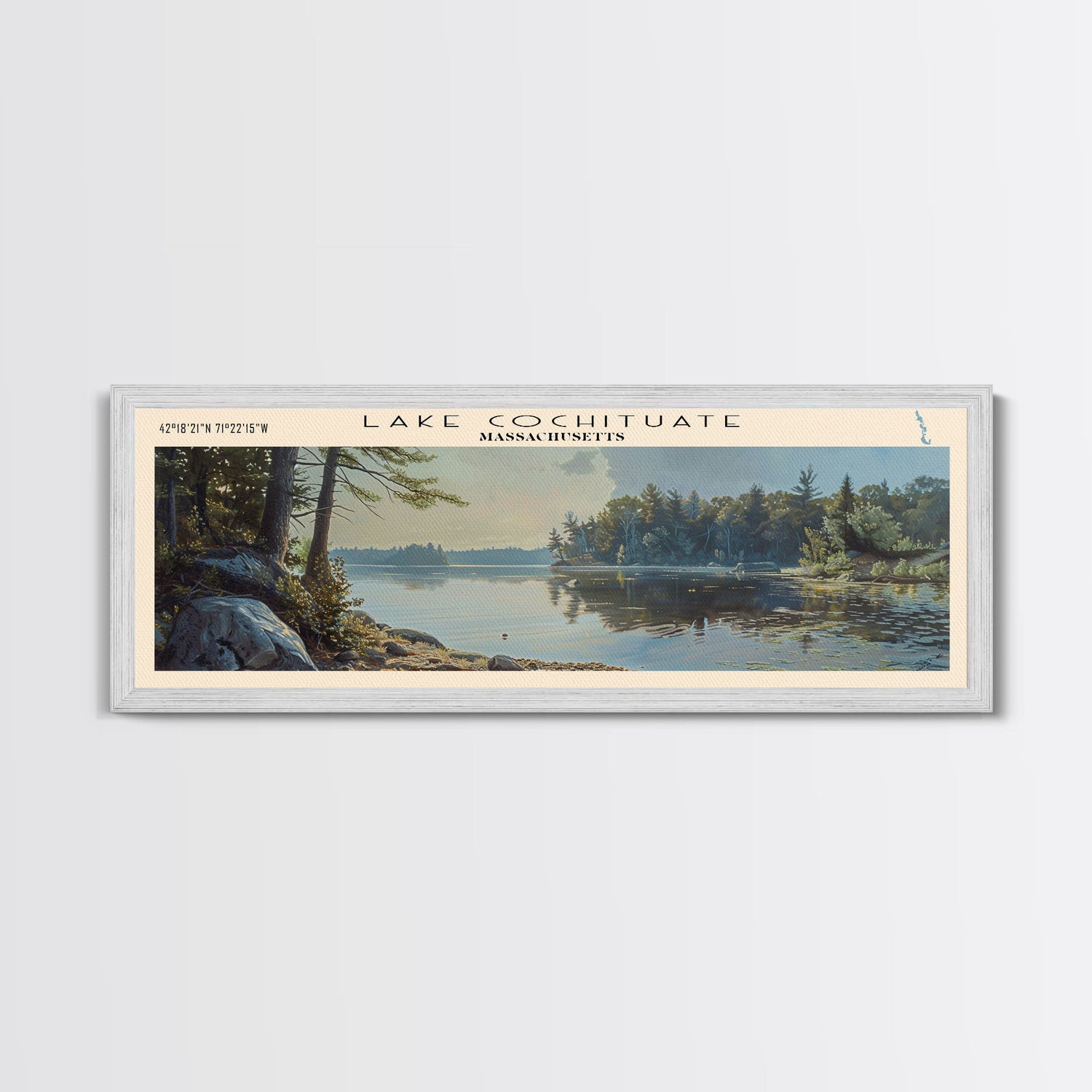 Lake Cochituate Massachusetts Framed Canvas Print, Lake House Decor, Panoramic Wall Art, Travel Poster, Beautiful Lake Painting, Nature Art