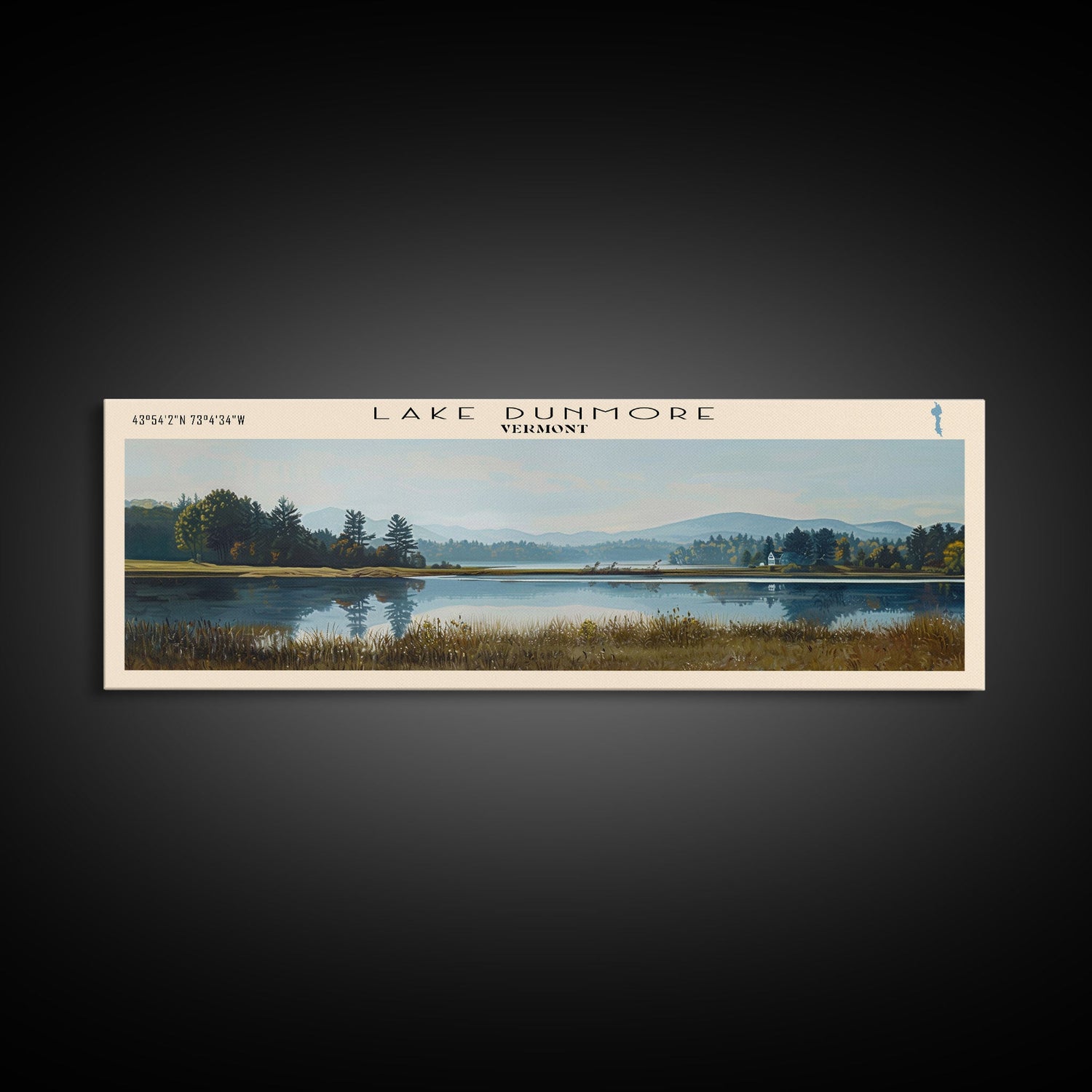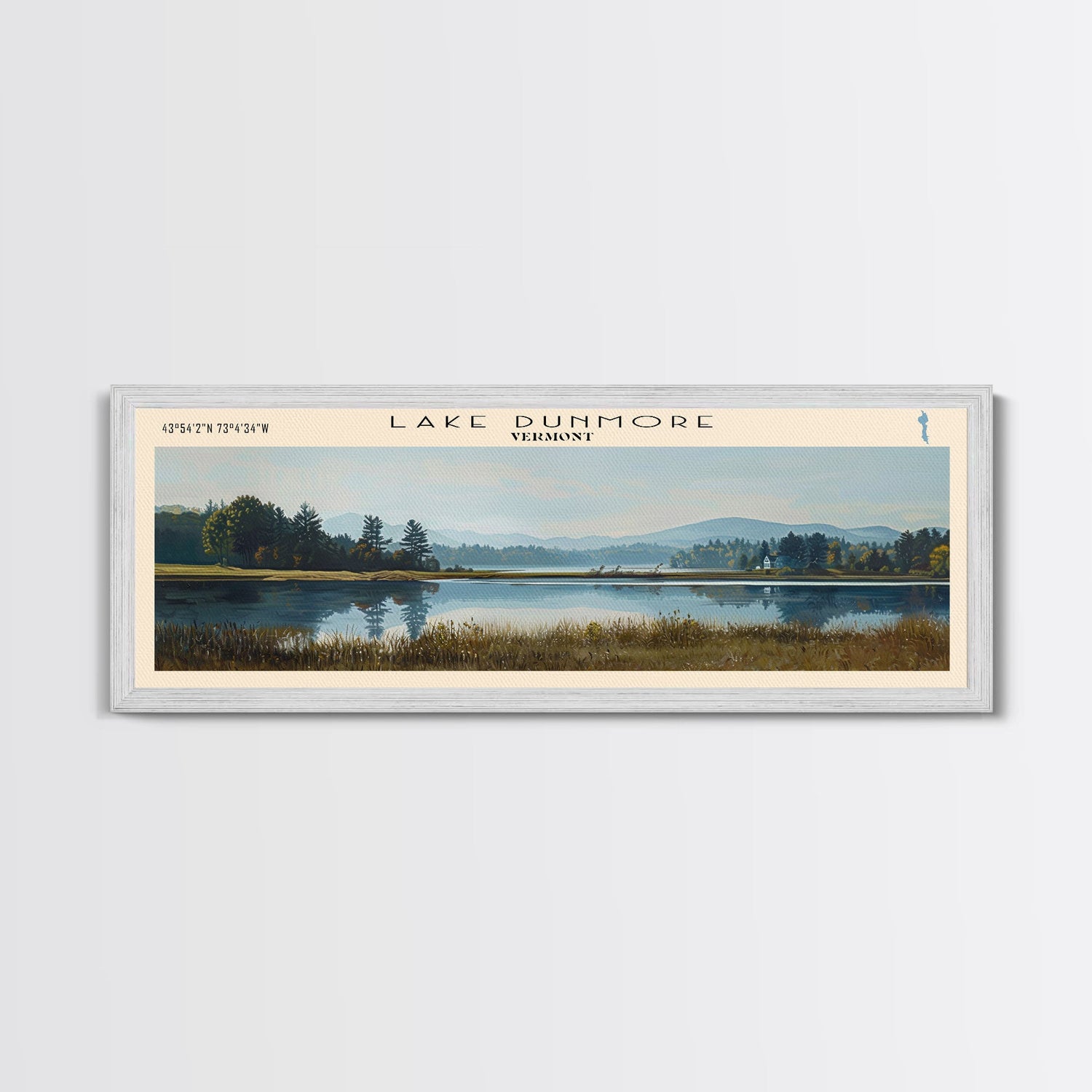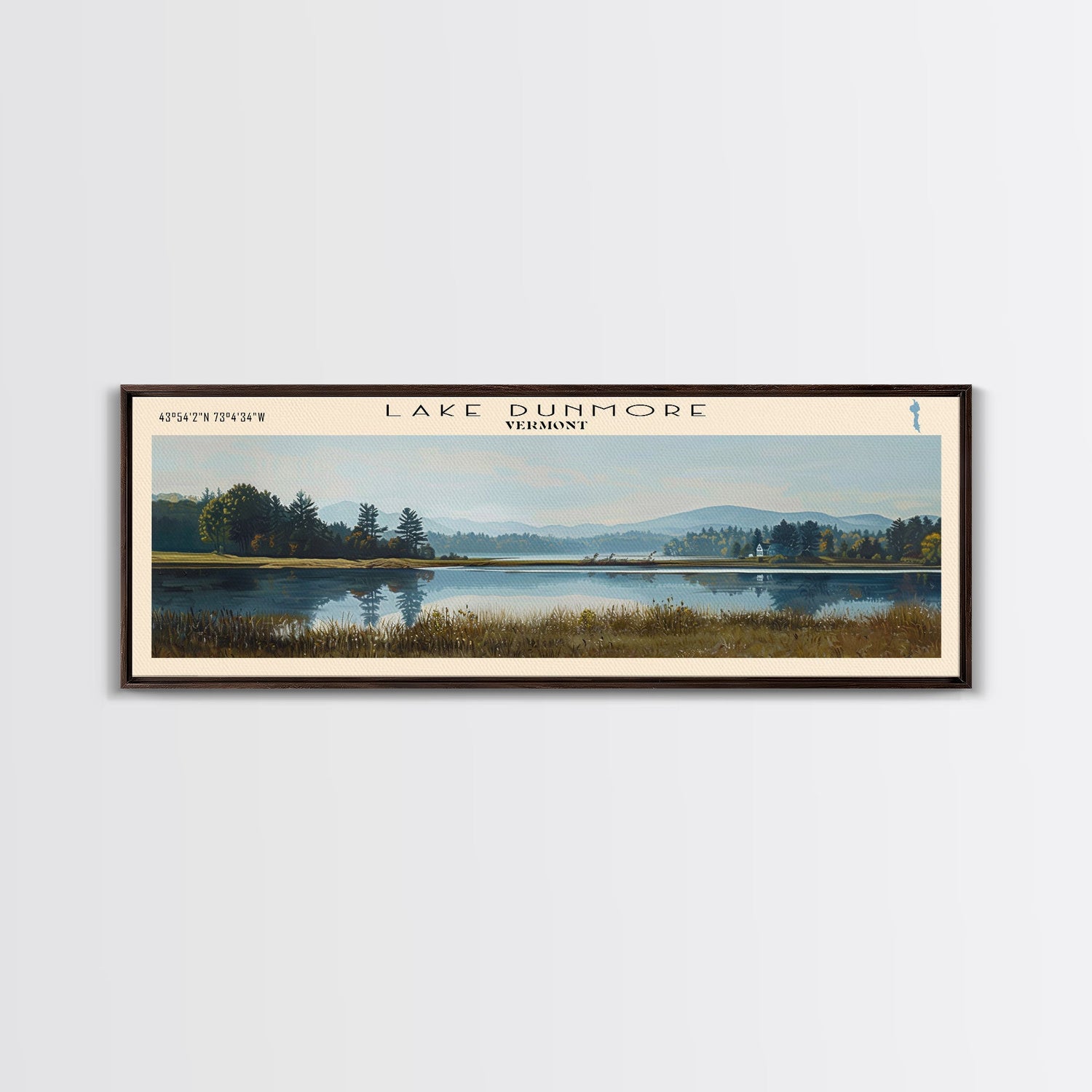 Lake Dunmore Vermont Framed Canvas Print, Lake House Decor, Panoramic Wall Art, Travel Poster, Stunning Landscape Painting, Home Art