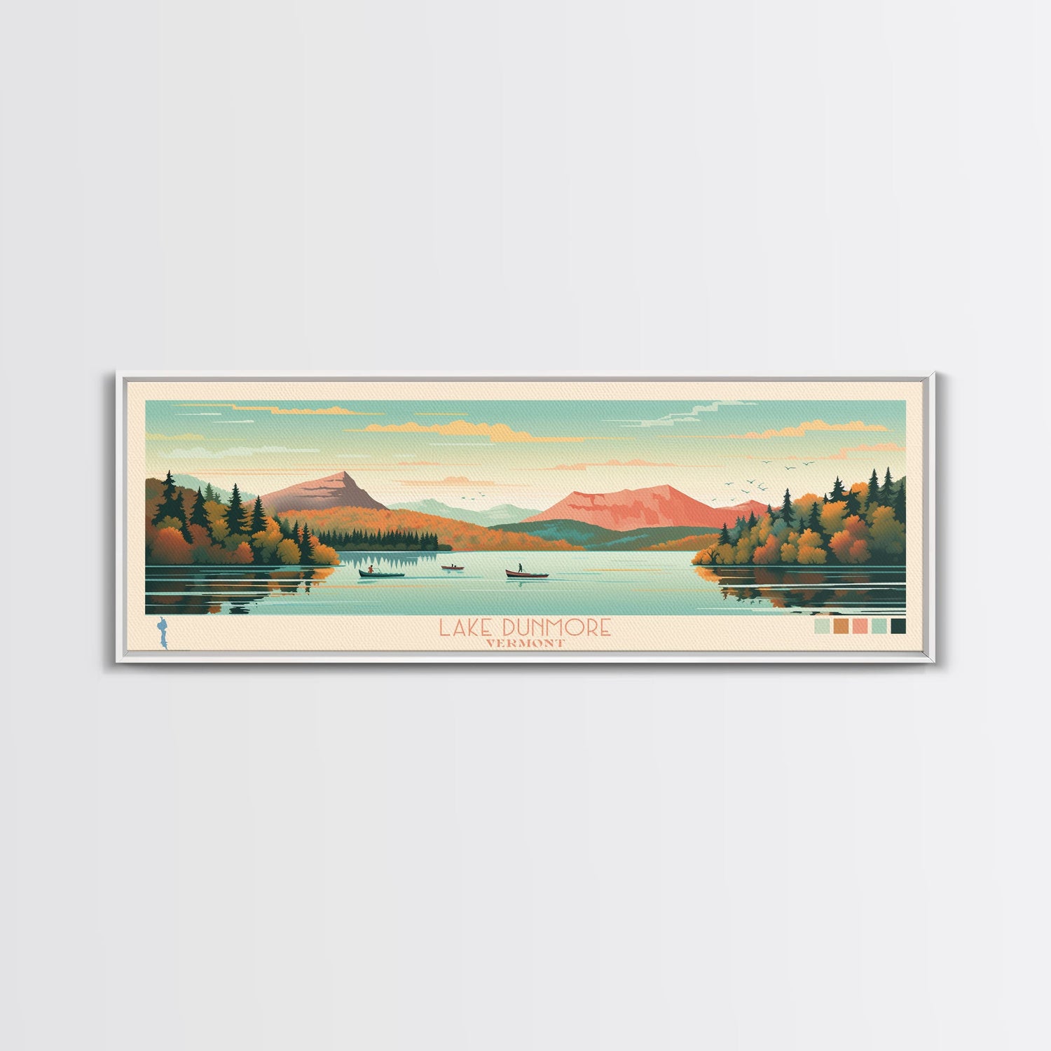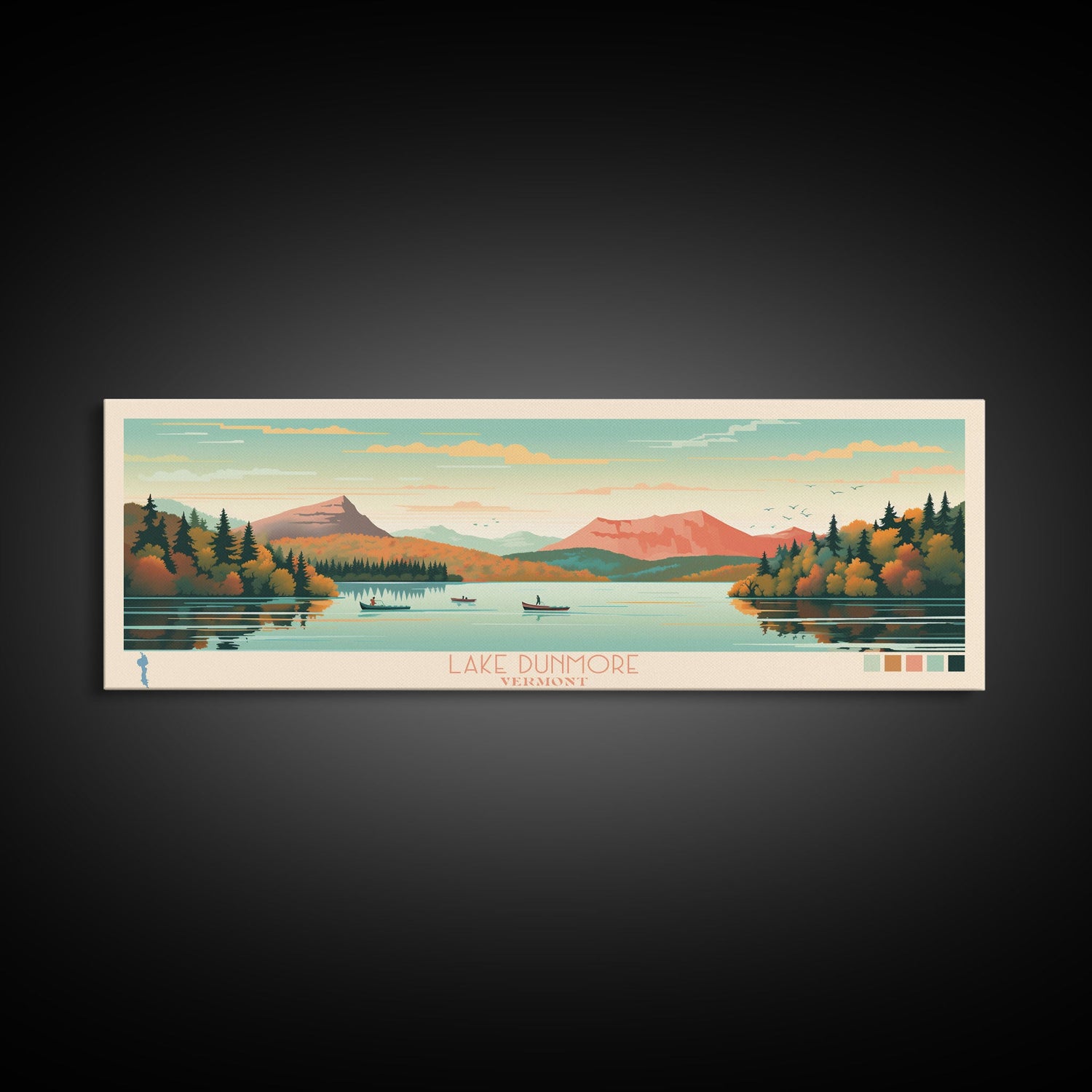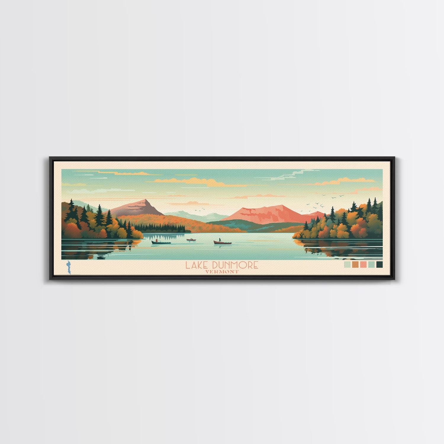 Lake Dunmore Vermont Framed Canvas Print, Panoramic Art, Midcentury Modern, Pop Art, Living Room Wall Art, Travel Poster, Lake House Decor