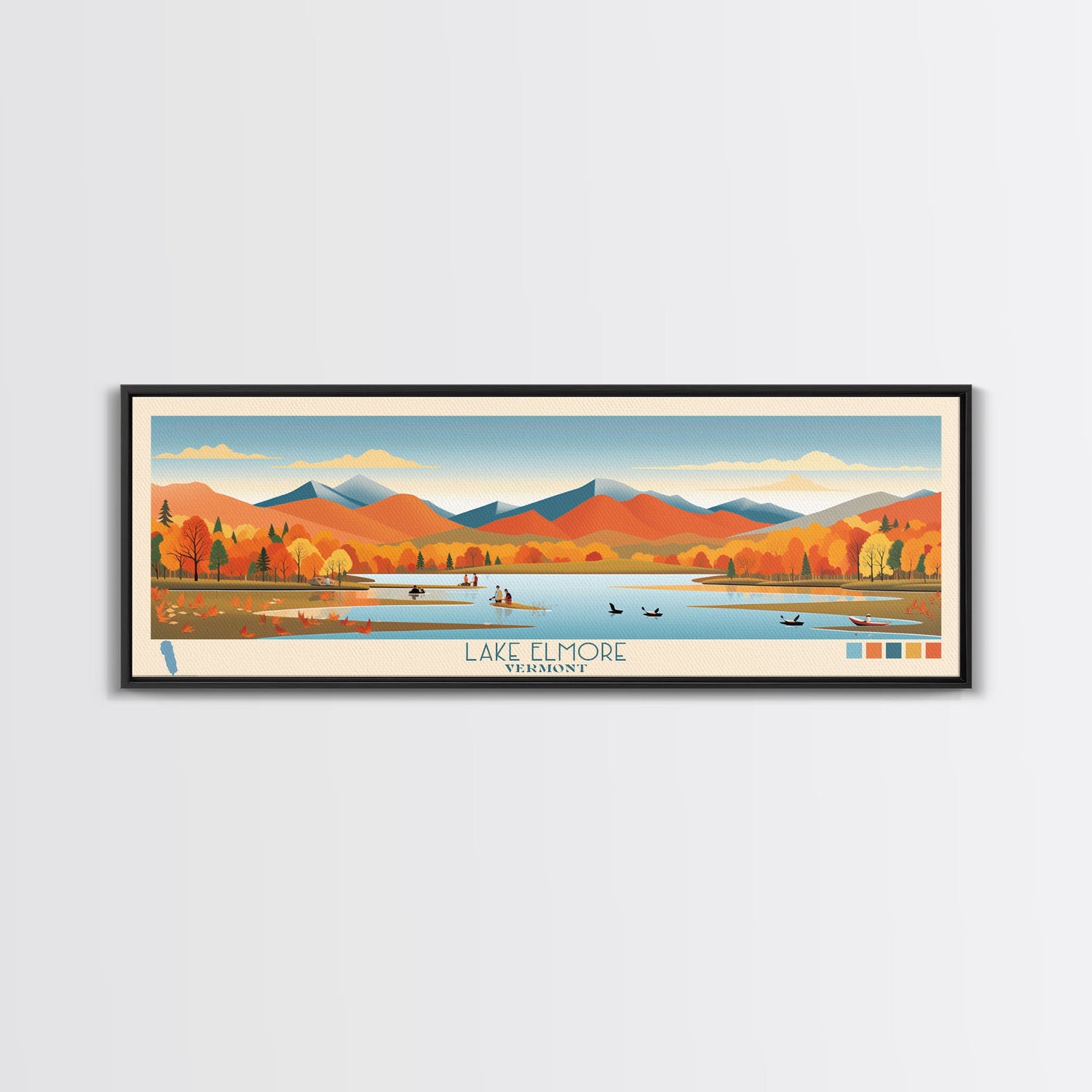 Lake Elmore Vermont Framed Canvas Print, Panoramic Art, Midcentury Modern, Pop Art, Living Room Wall Art, Travel Poster, Lake House Decor