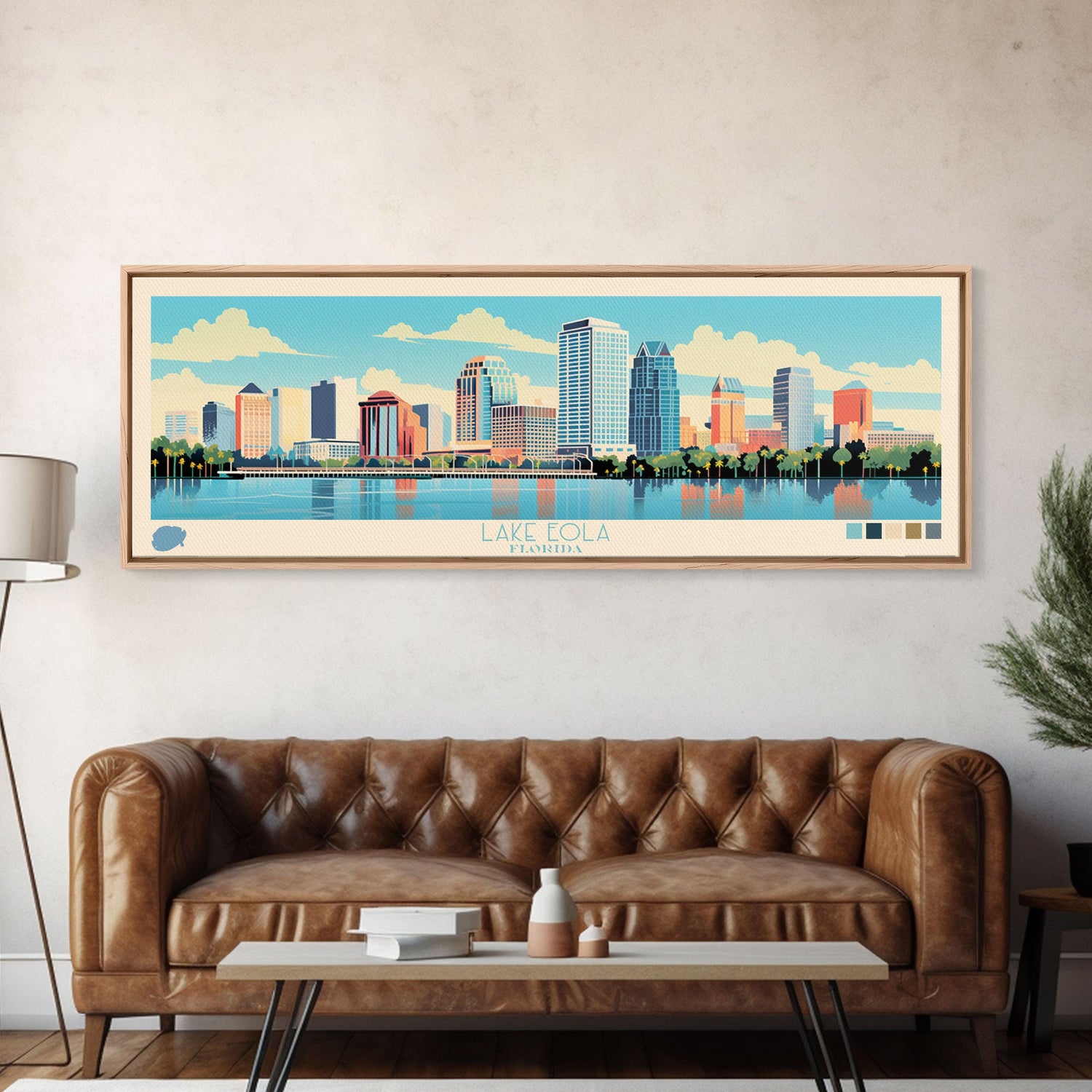 Lake Eola Florida Framed Canvas Print, Panoramic Wall Art, Midcentury Modern, Pop Art, Bedroom Decor, Travel Poster, Living Room Art
