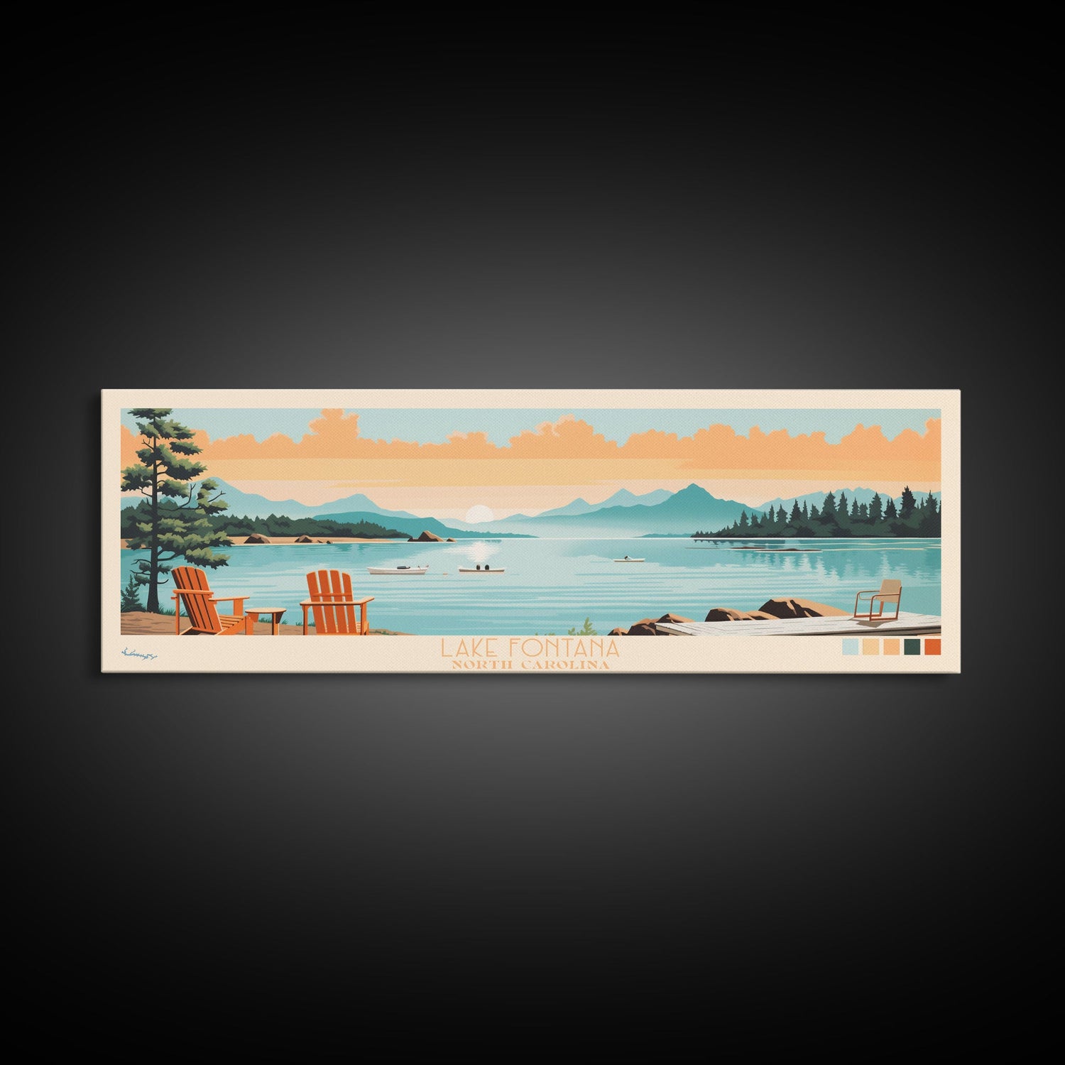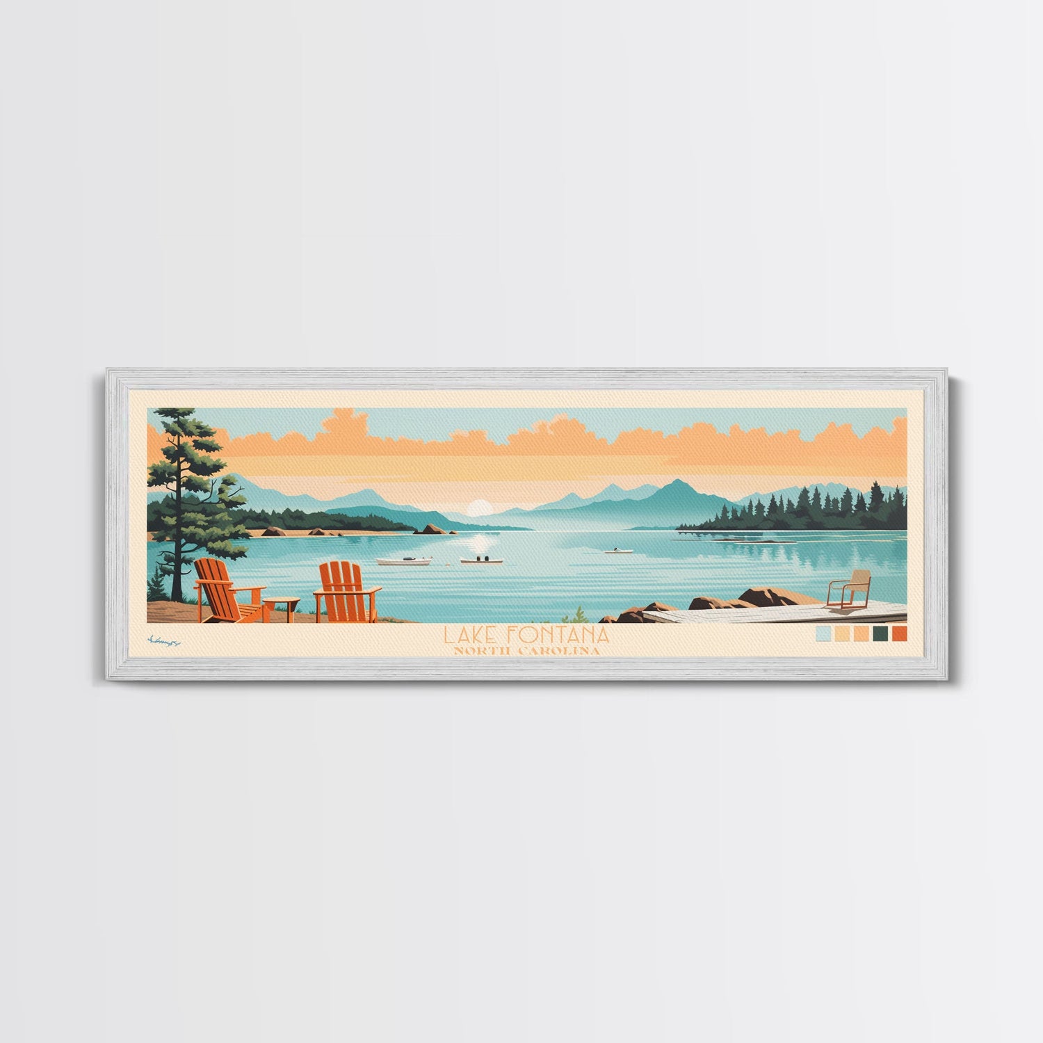 Lake Fontana North Carolina Framed Canvas Print, Panoramic Art, Midcentury Modern, Pop Art, Living Room Wall Art, Travel Poster, Lake House Decor