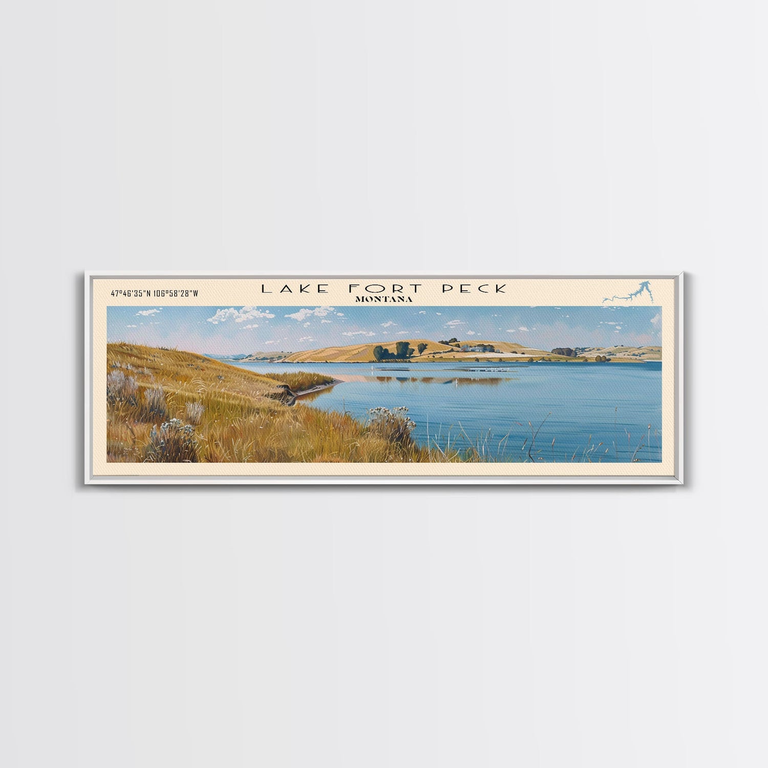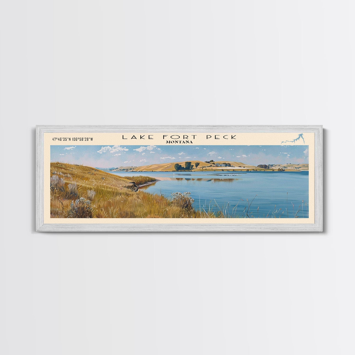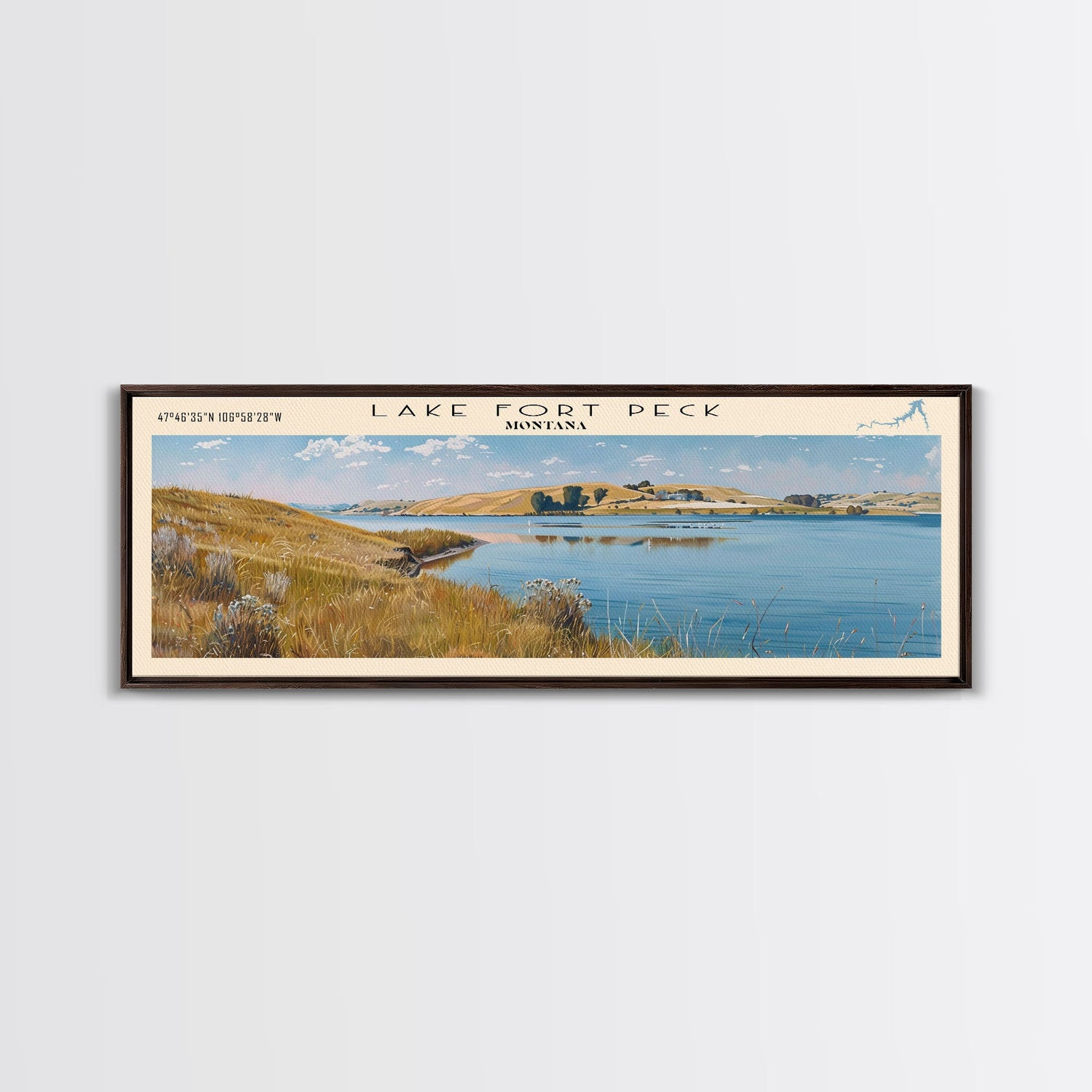 Lake Fort Peck Framed Canvas Print, Lake House Decor, Panoramic Wall Art, Travel Poster, Scenic Lake Painting, Nature Art