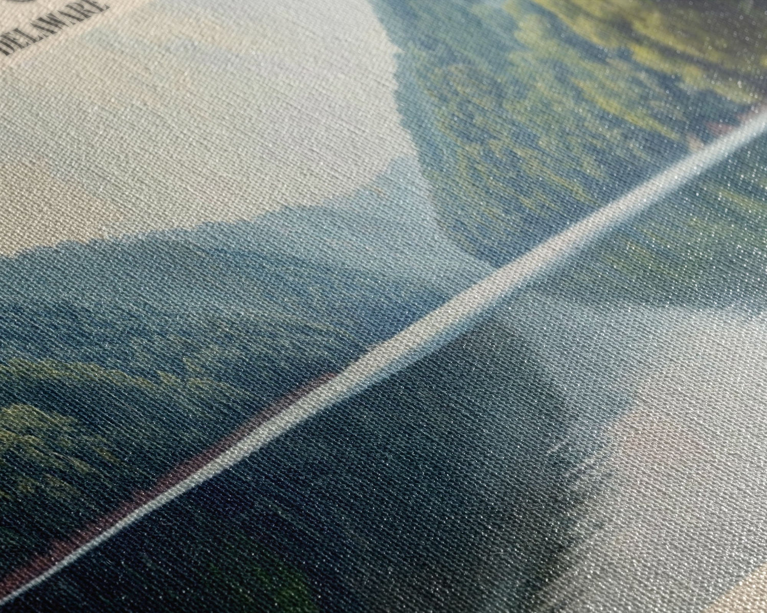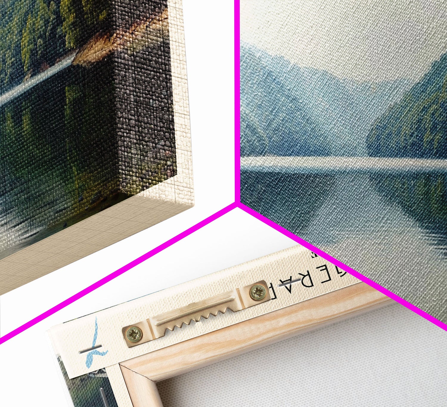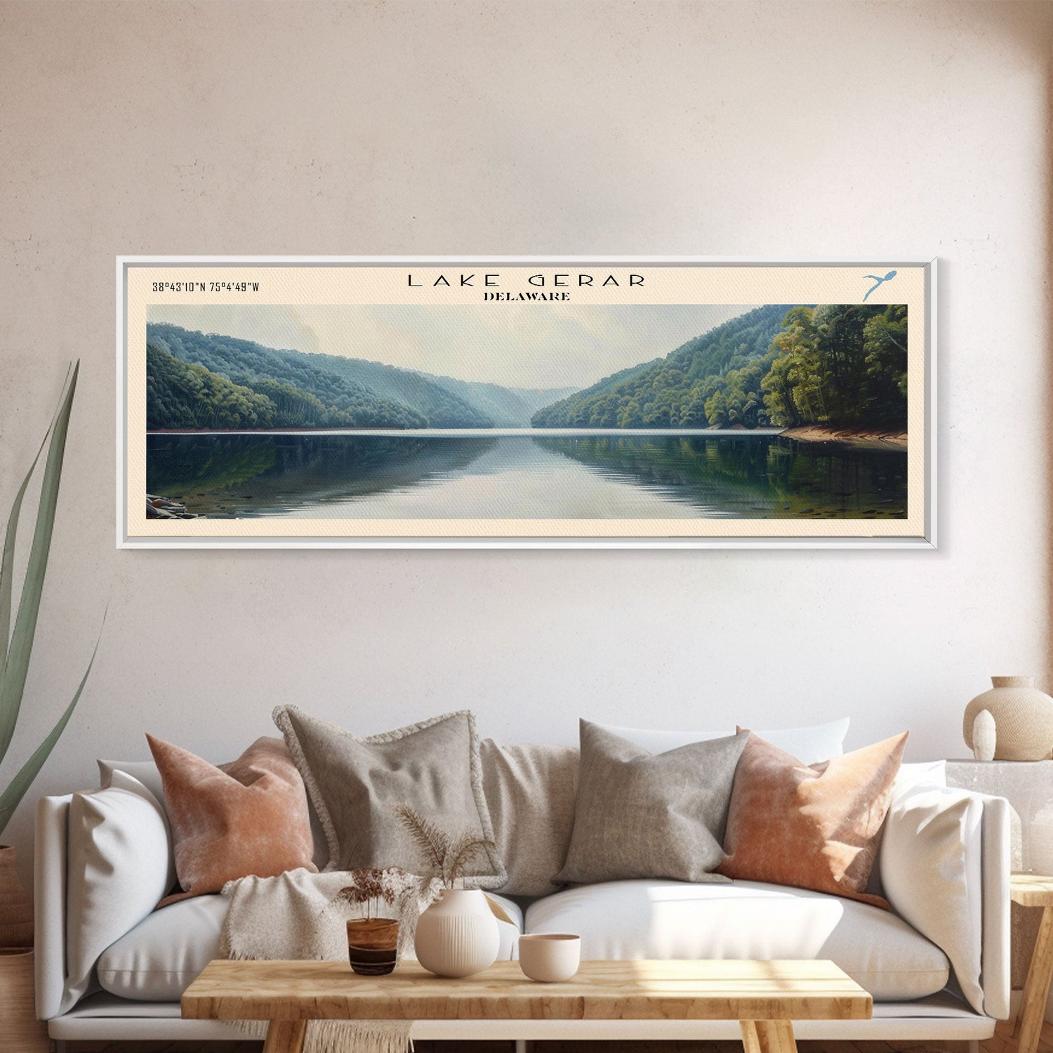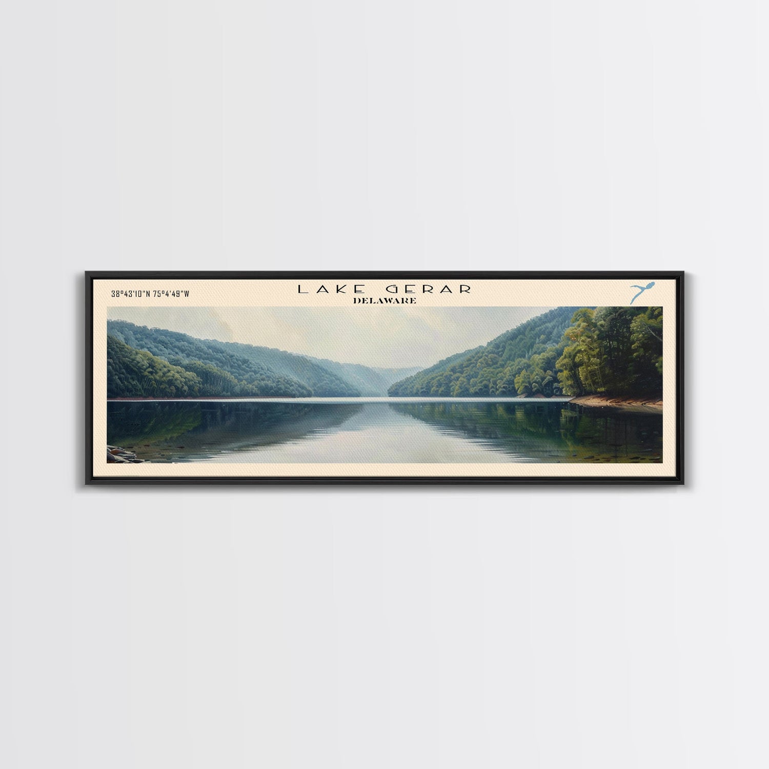 Lake Gerar Delaware Framed Canvas Print, Lake House Decor, Panoramic Wall Art, Travel Poster, Beautiful Lake Painting, Home Art