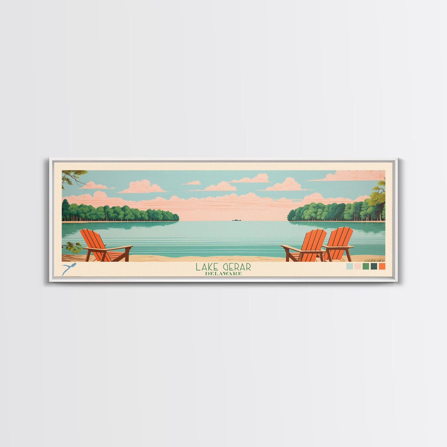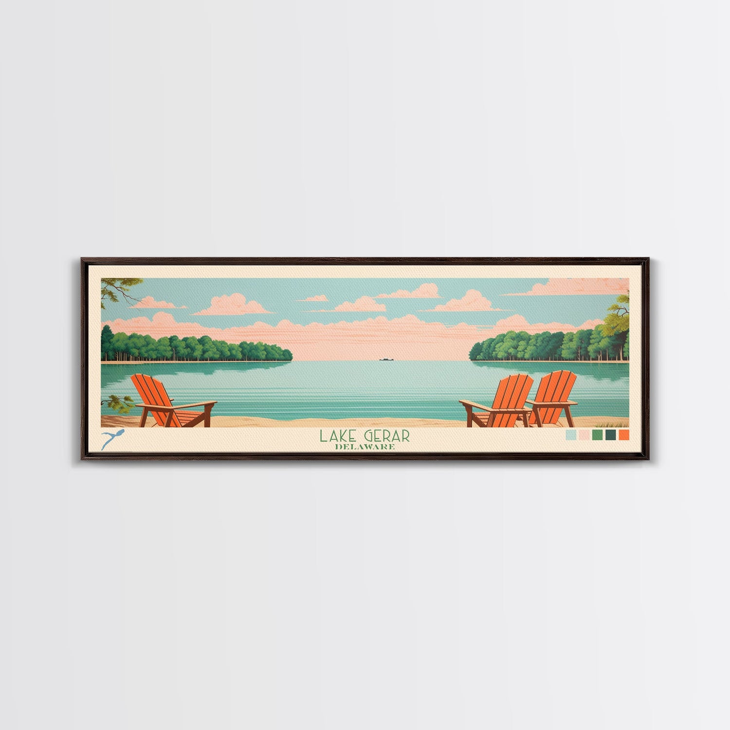 Lake Gerar Delaware Framed Canvas Print, Panoramic Wall Art, Midcentury Modern, Pop Art, Bedroom Decor, Travel Poster, Living Room Art
