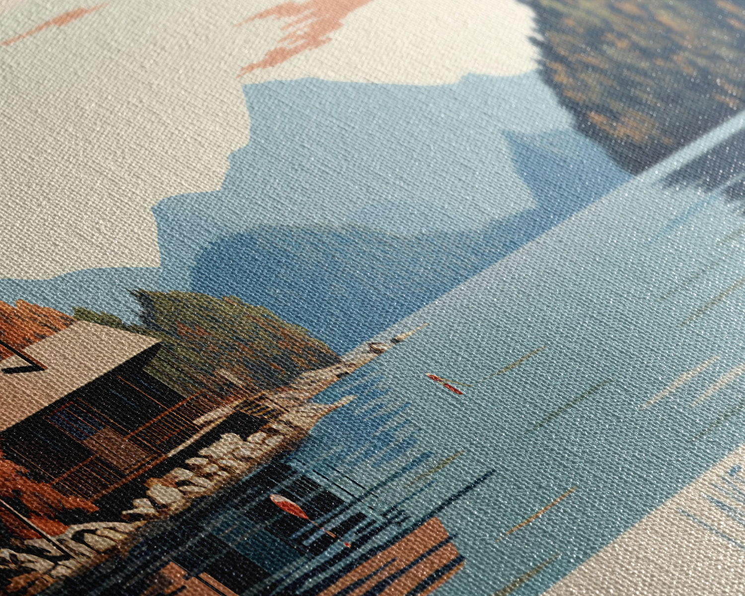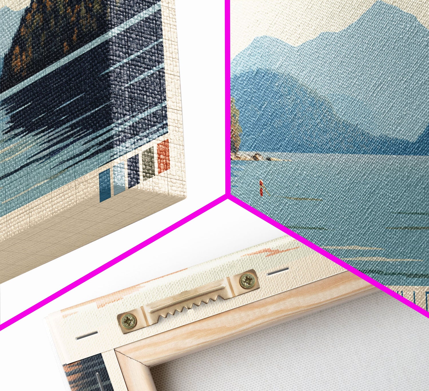 Lake Glenville North Carolina Framed Canvas Print, Panoramic Art, Midcentury Modern, Pop Art, Living Room Wall Art, Travel Poster, Lake House Decor