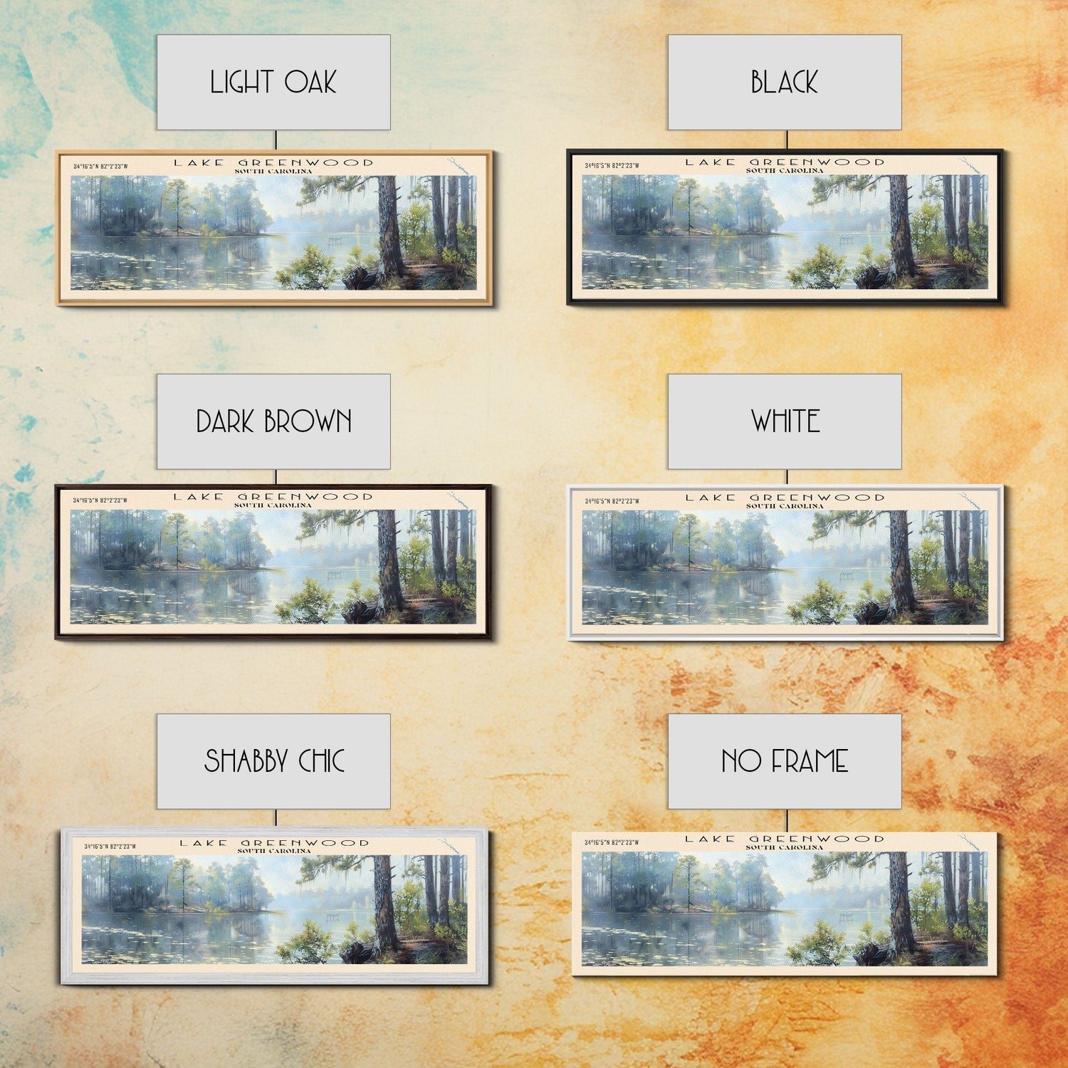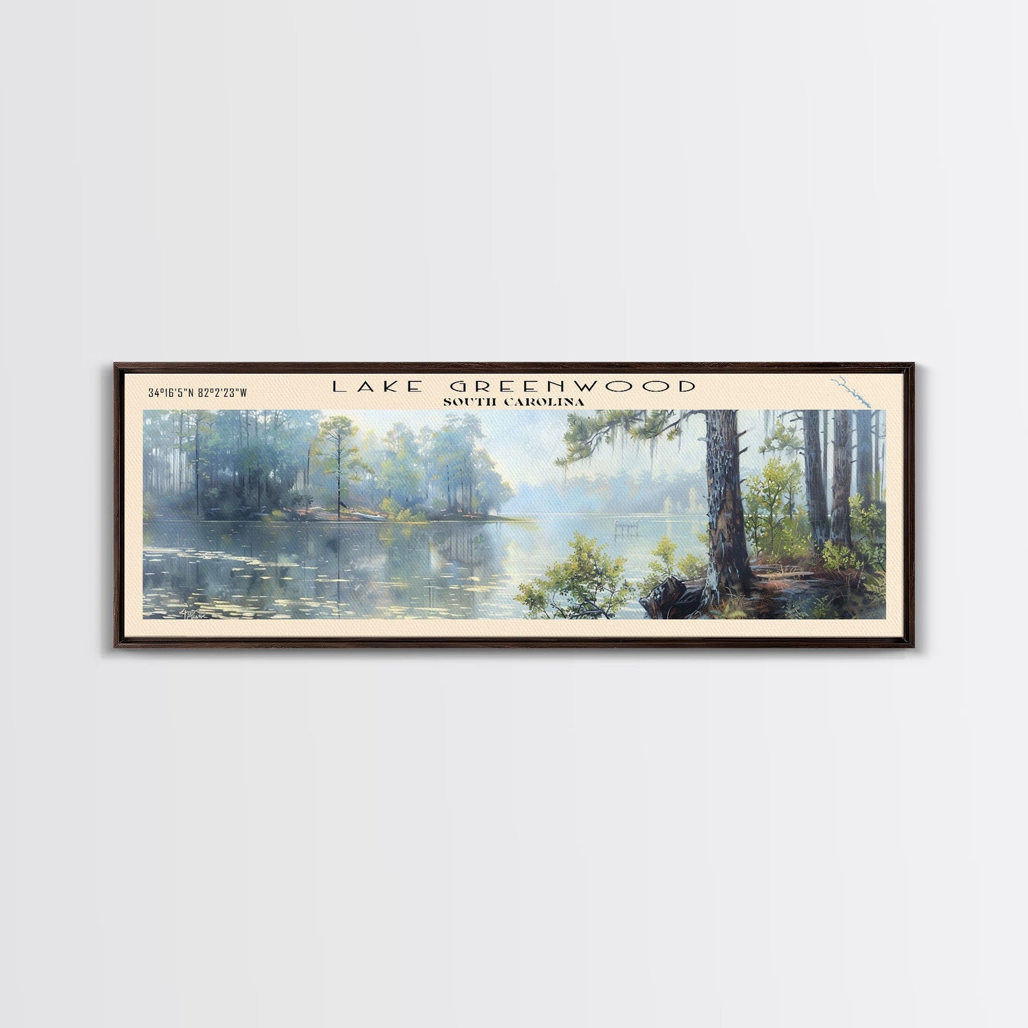 Lake Greenwood South Carolina Framed Canvas Print, Lake House Decor, Panoramic Wall Art, Travel Poster, Scenic Landscape Painting, Nature Art