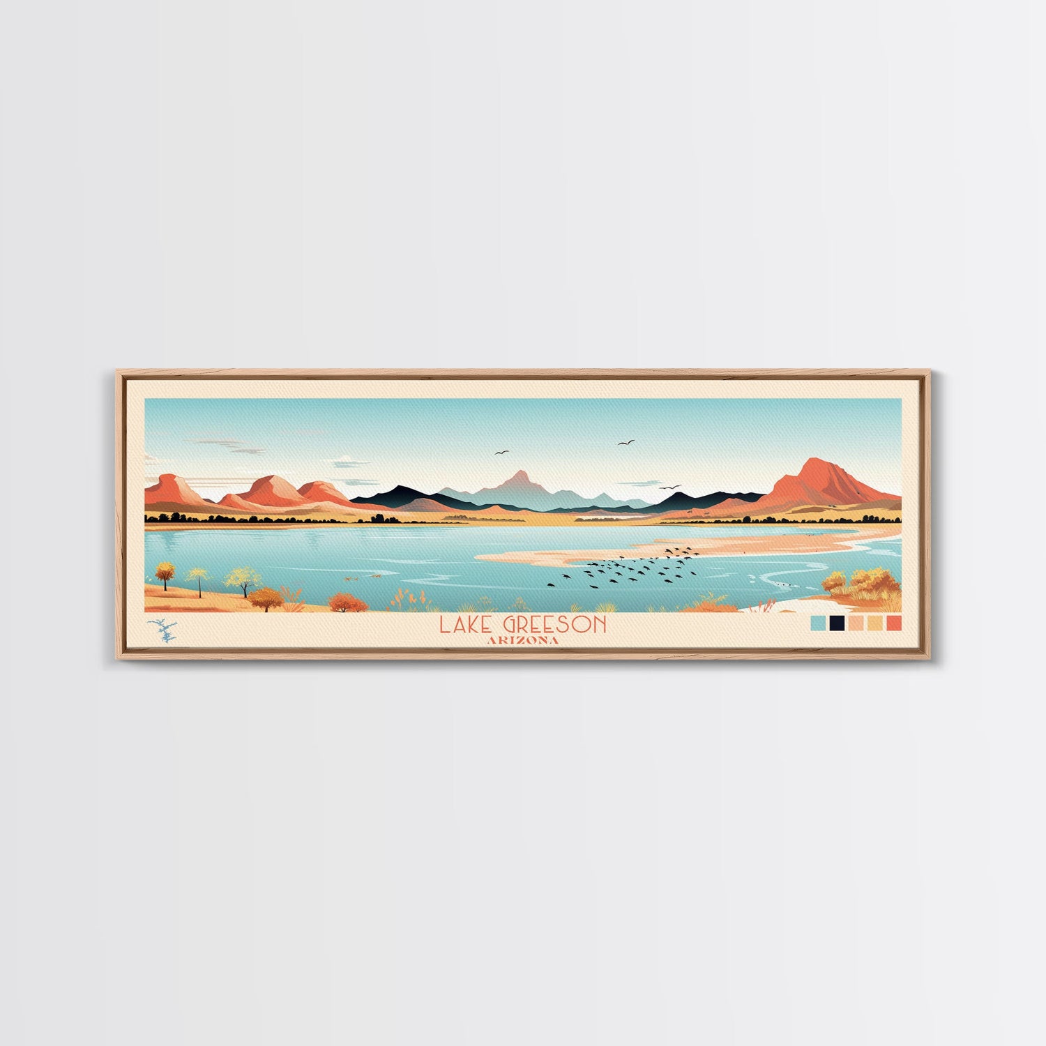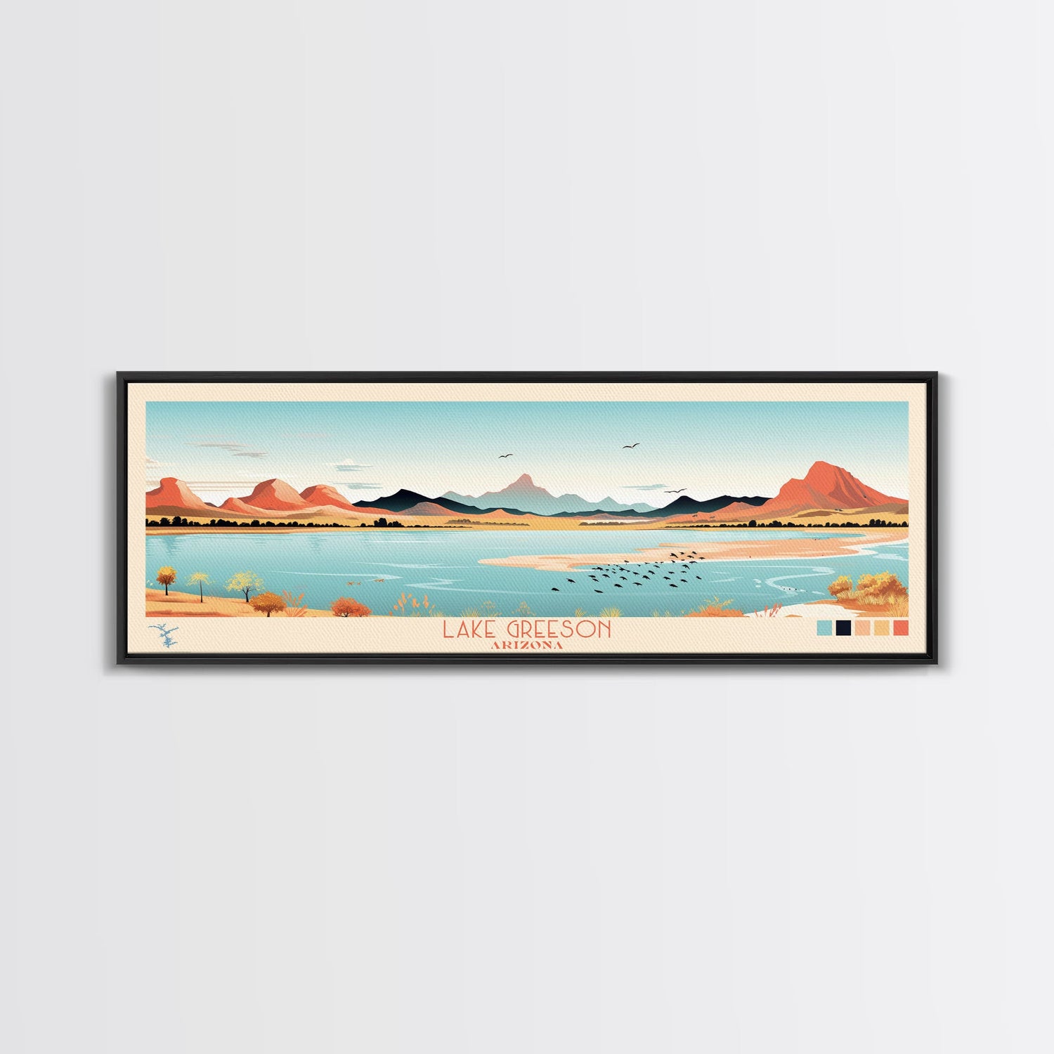 Lake Greeson Arizona Framed Canvas Print, Panoramic Wall Art, Midcentury Modern, Pop Art, Living Room Decor, Travel Poster, Bedroom Art