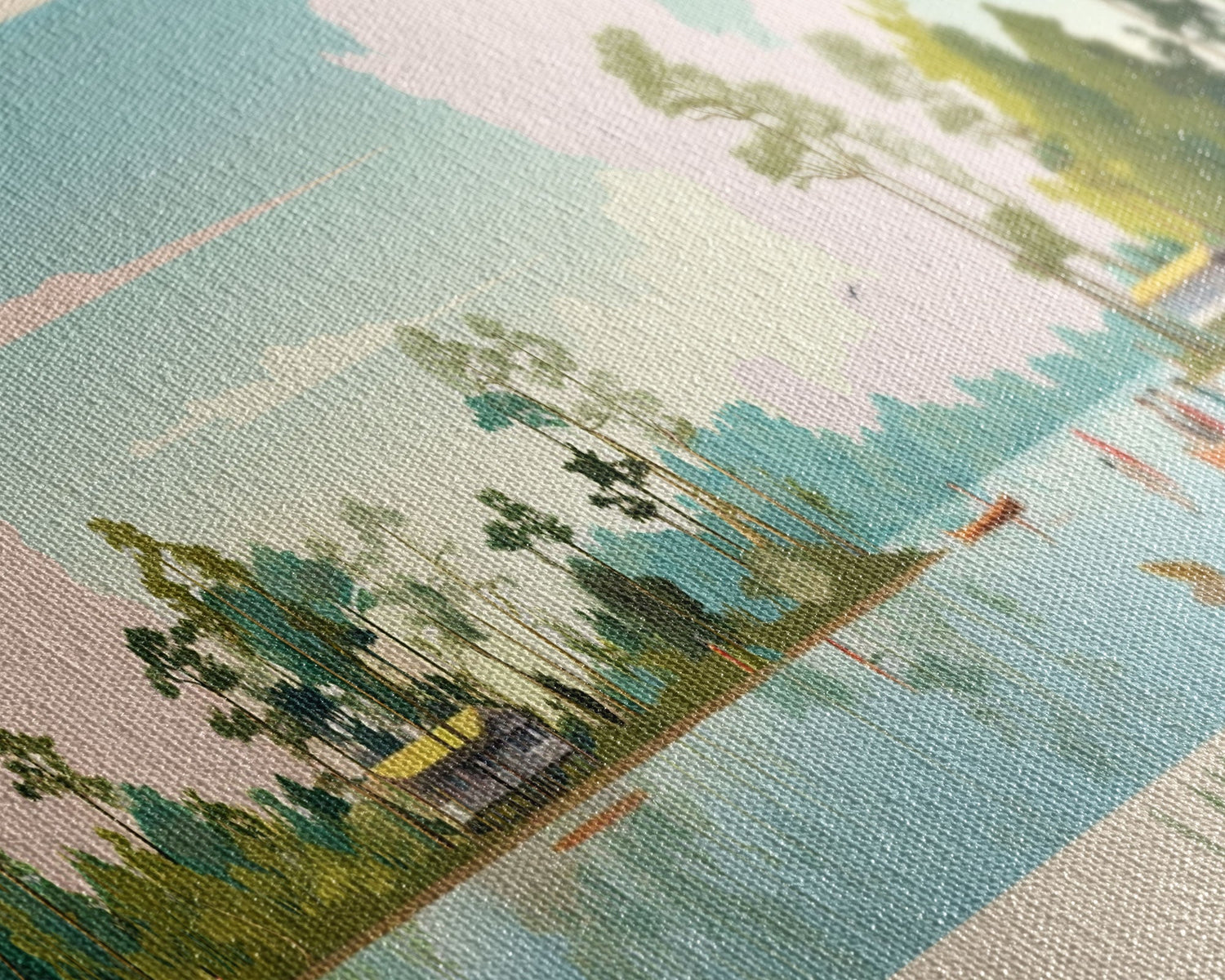 Most of our canvases are made in the USA, with the exception of canvases ordered with the light oak unstained frames, and any large canvases (24x48, 30x60, 16x48 and 20x60) ordered WITH a frame. These are temporarily made in and shipped from Europe, while we try to find a more consistent supplier in the USA.