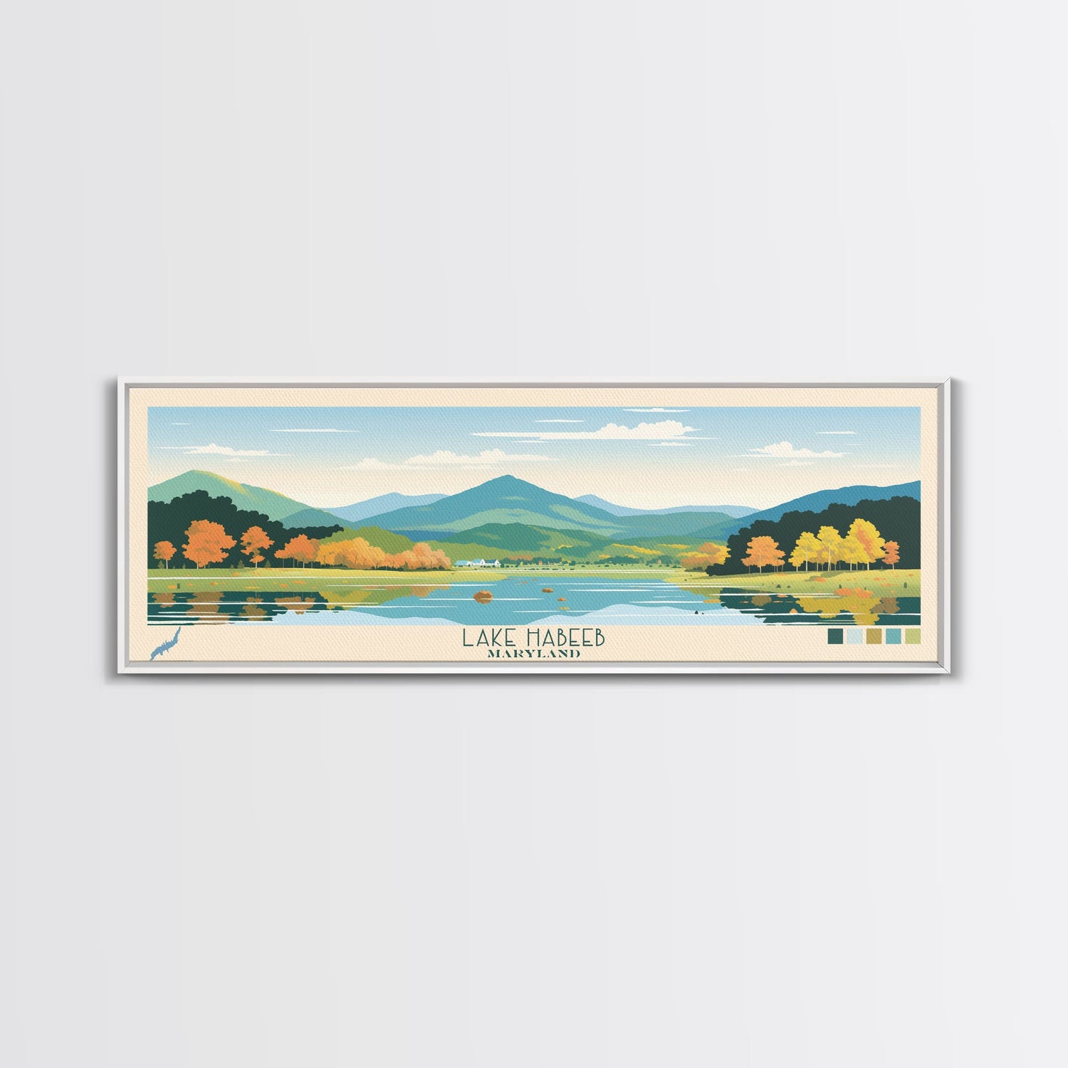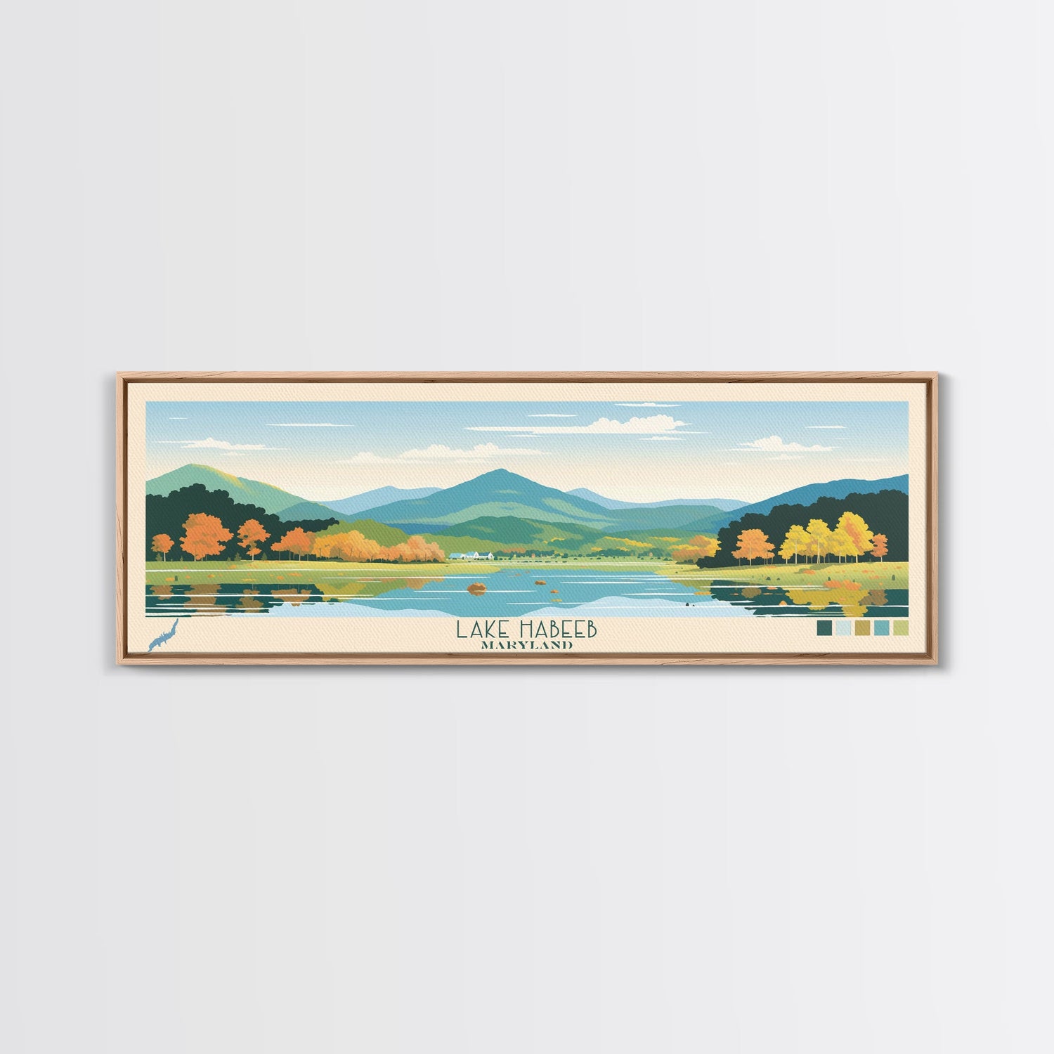 Lake Habeeb Maryland Framed Canvas Print, Panoramic Wall Art, Midcentury Modern, Pop Art, Living Room Decor, Travel Poster, Lake House Art
