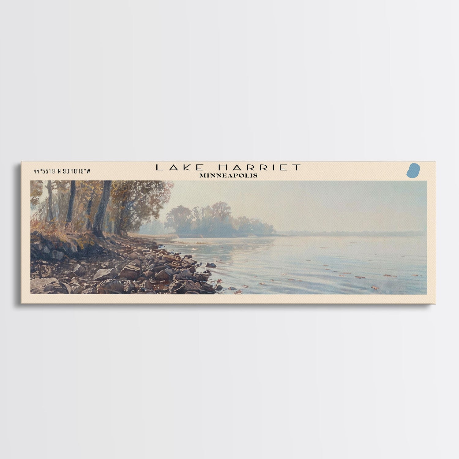 Lake Harriet Minneapolis Framed Canvas Print, Lake House Decor, Panoramic Wall Art, Travel Poster, Scenic Lake Painting, Nature Art