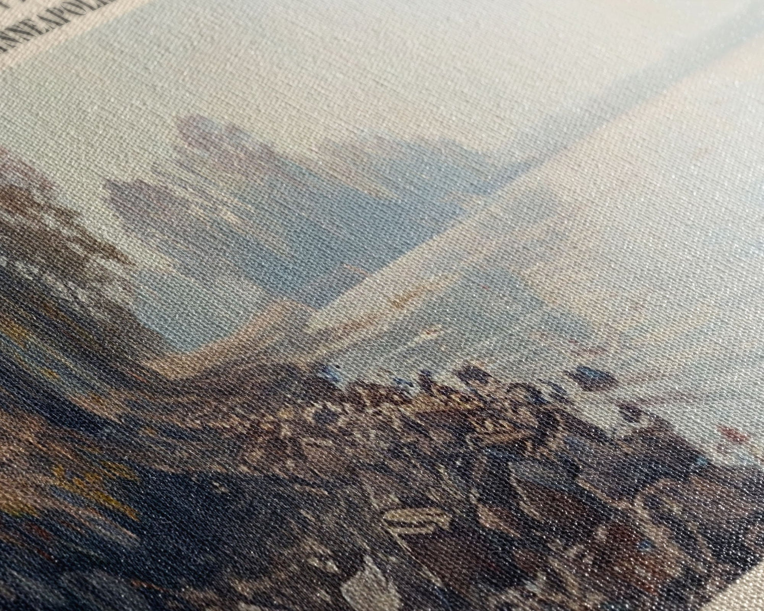 Most of our canvases are made in the USA, with the exception of canvases ordered with the light oak unstained frames, and any large canvases (24x48, 30x60, 16x48 and 20x60) ordered WITH a frame. These are temporarily made in and shipped from Europe, while we try to find a more consistent supplier in the USA.