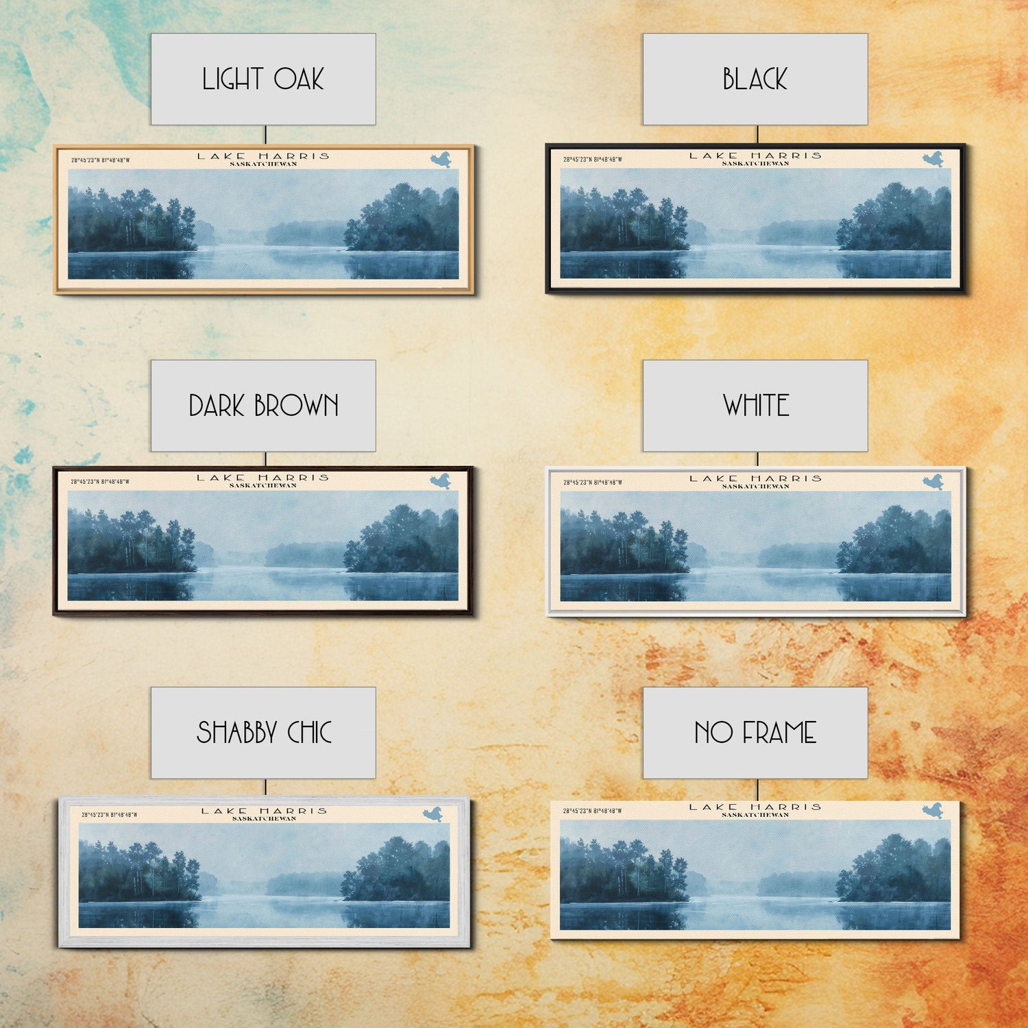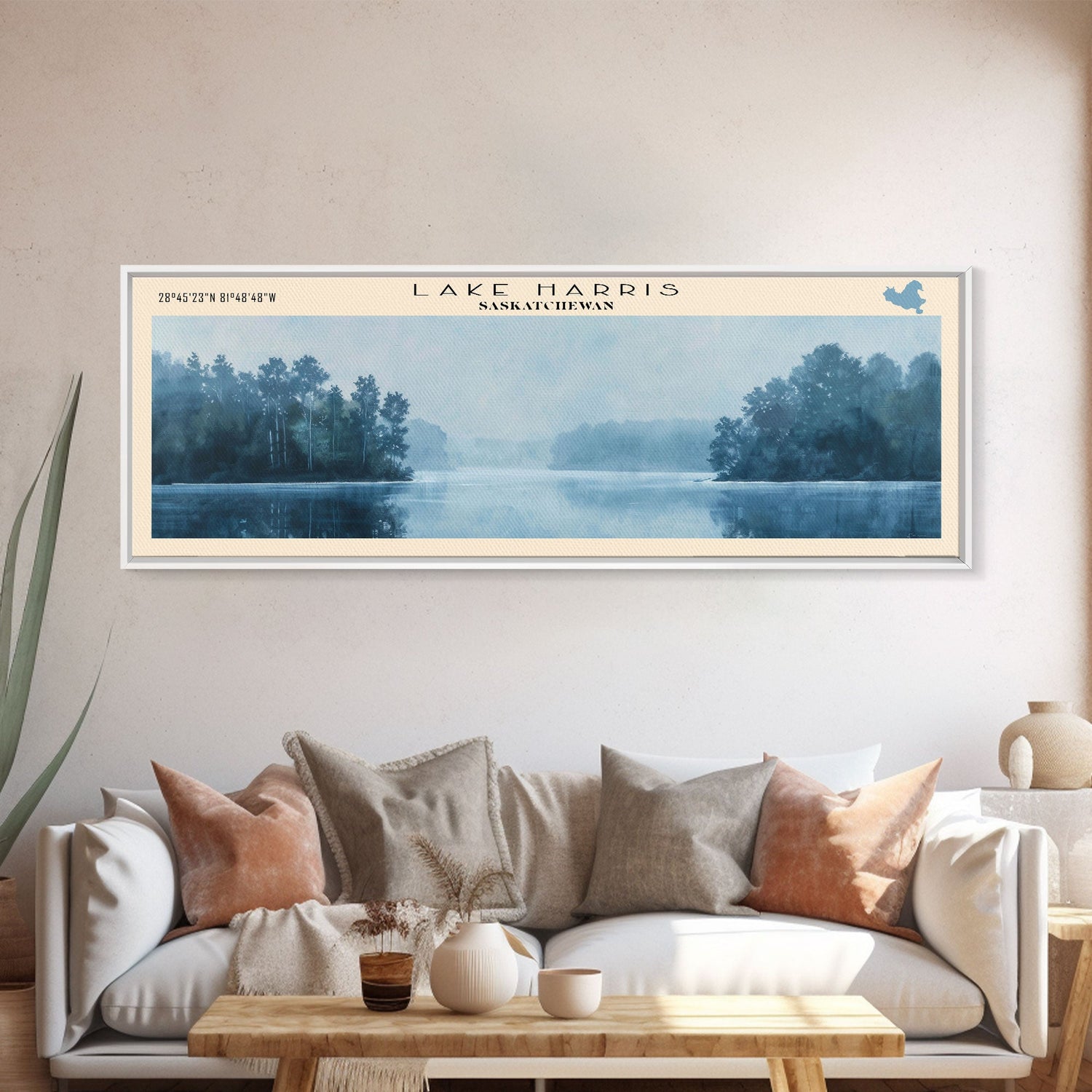 Lake Harris Framed Canvas Print, Lake House Decor, Panoramic Wall Art, Travel Poster, Stunning Lake Painting, Home Art