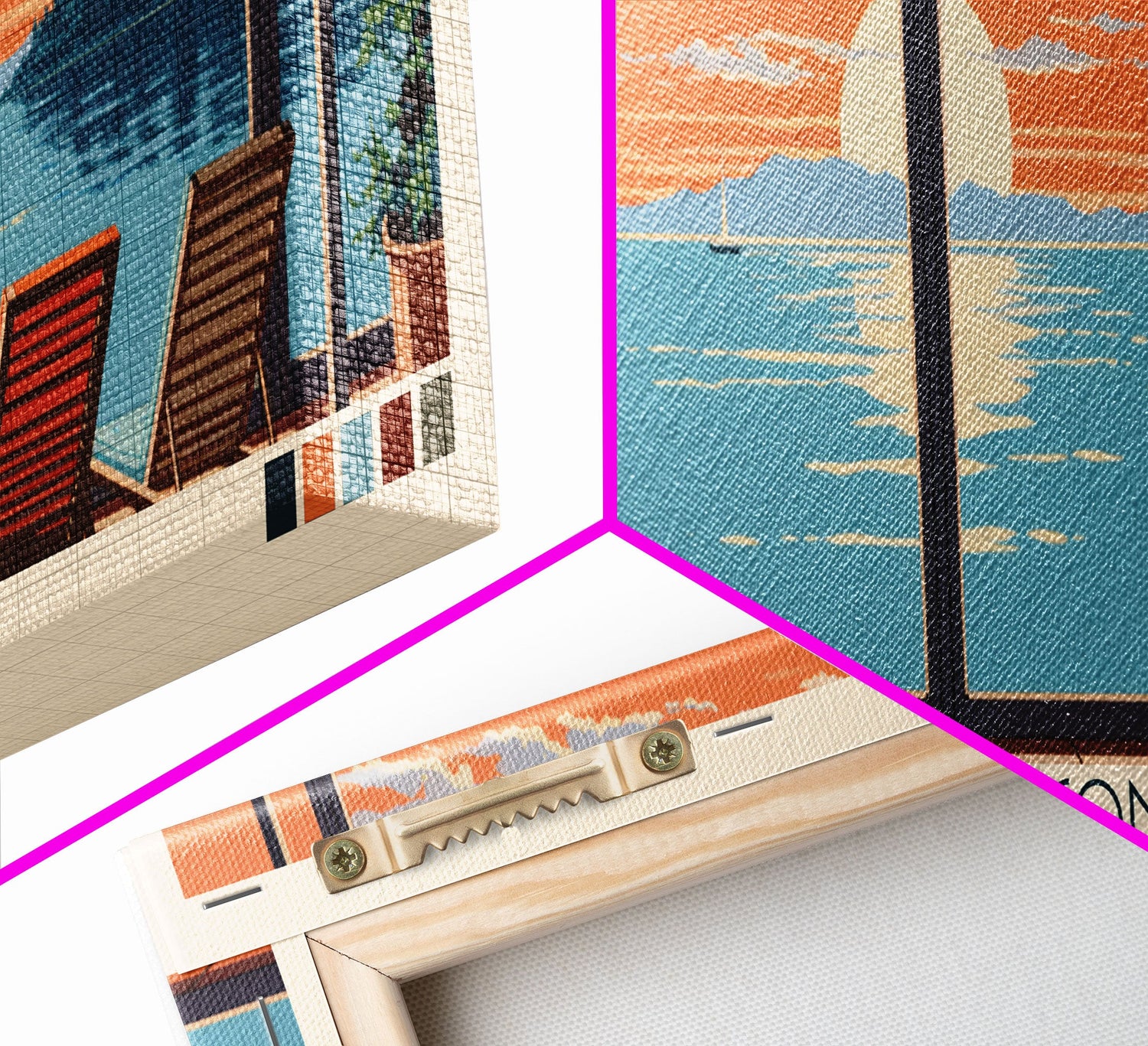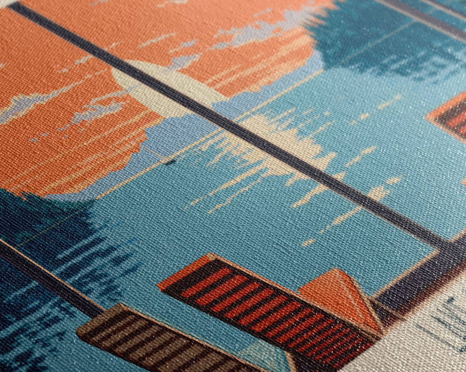Lake Hopatcong New Jersey Framed Canvas Print, Panoramic Wall Art, Midcentury Modern, Pop Art, Living Room Decor, Travel Poster, Bedroom Art