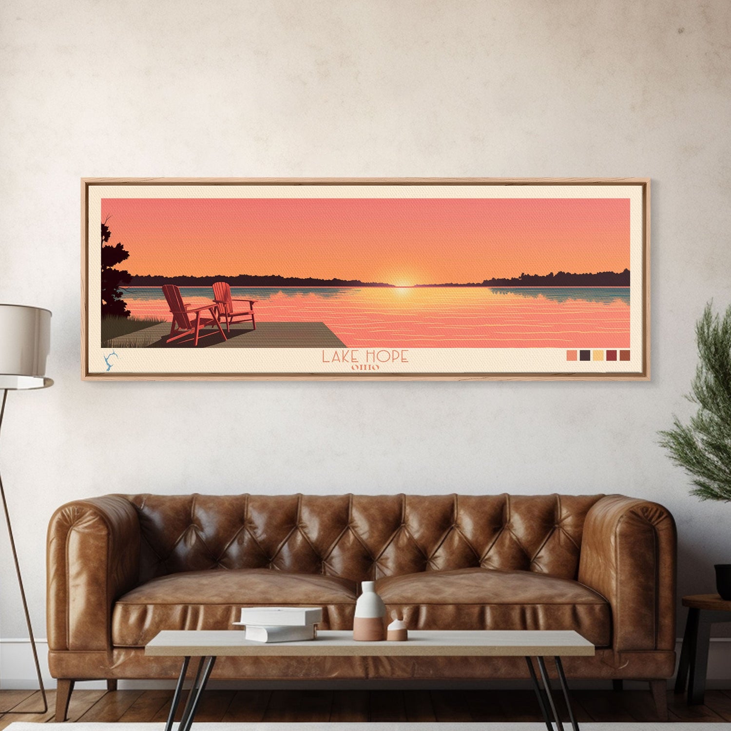 Lake Hope Ohio Framed Canvas Print, Panoramic Wall Art, Midcentury Modern, Pop Art, Bedroom Art, Travel Poster, Living Room Decor