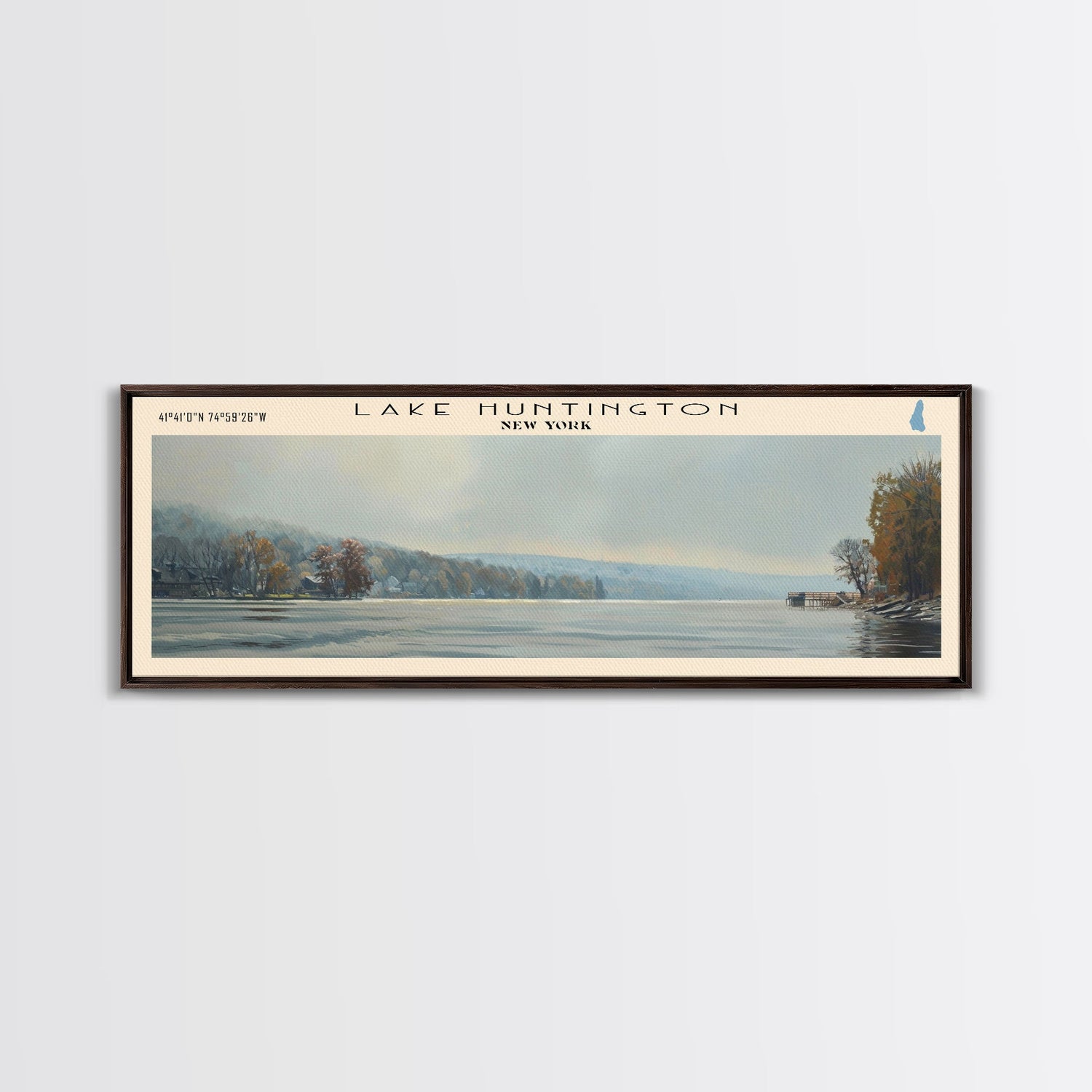 Lake Huntington New York Framed Canvas Print, Lake House Decor, Panoramic Wall Art, Travel Poster, Scenic Landscape Painting, Nature Art