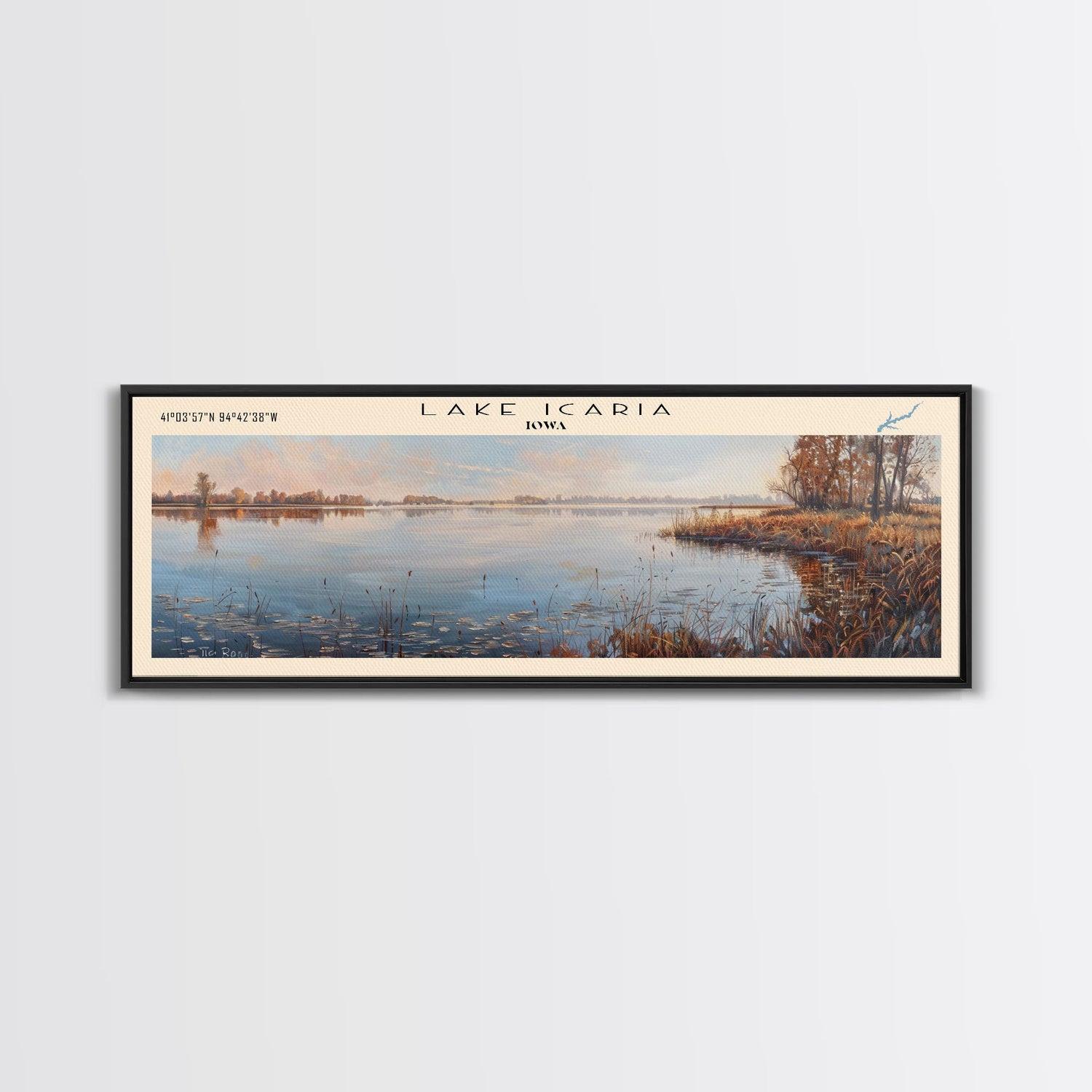 Lake Icaria Iowa Framed Canvas Print, Lake House Decor, Panoramic Wall Art, Travel Poster, Beautiful Lake Painting, Nature Art