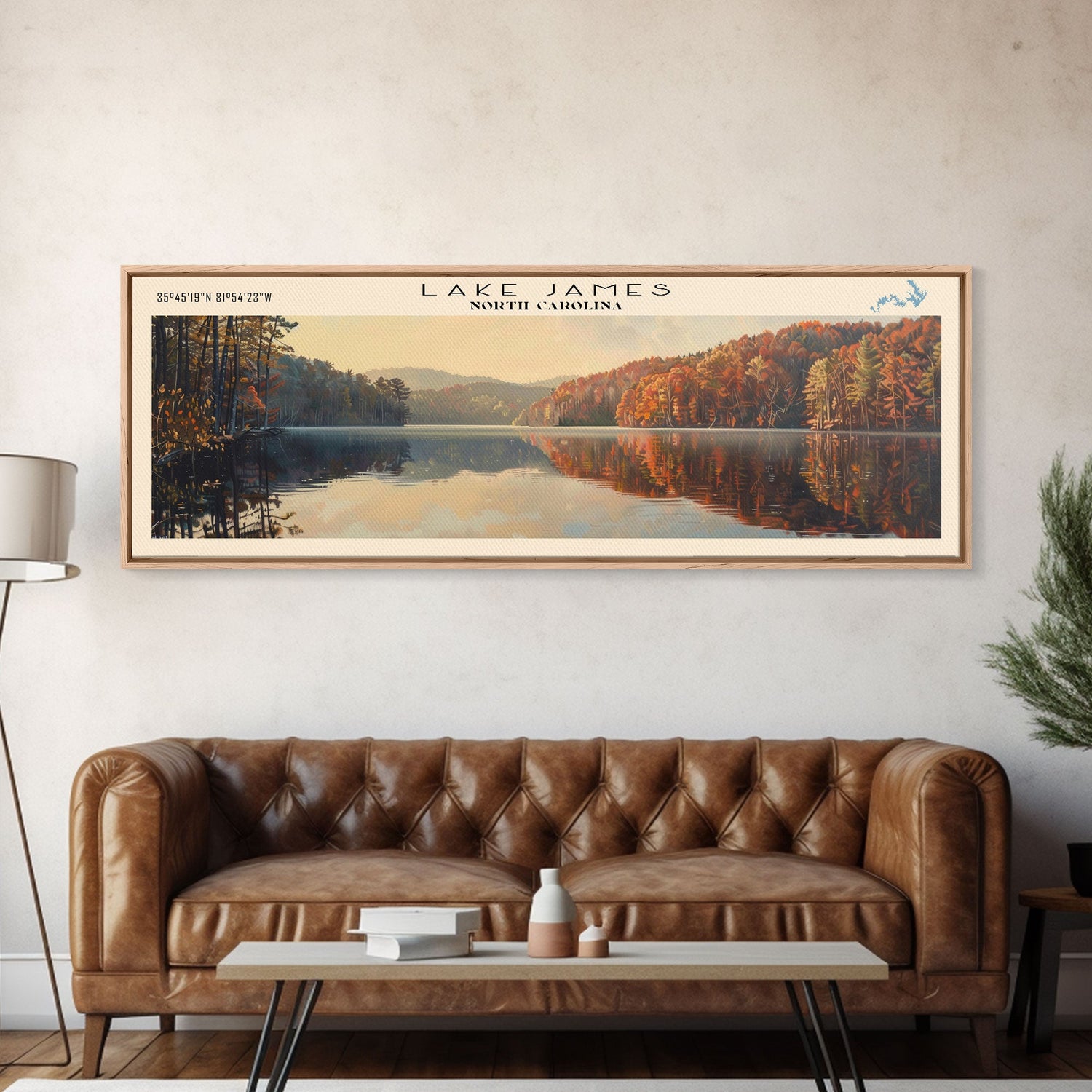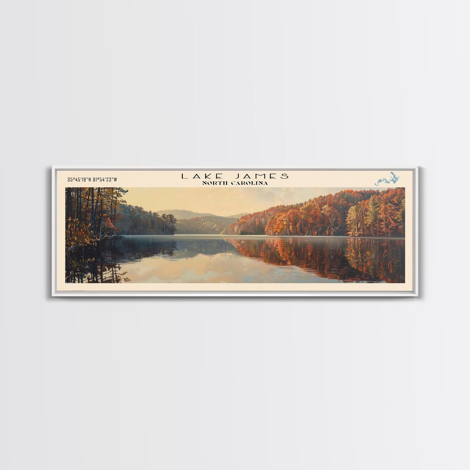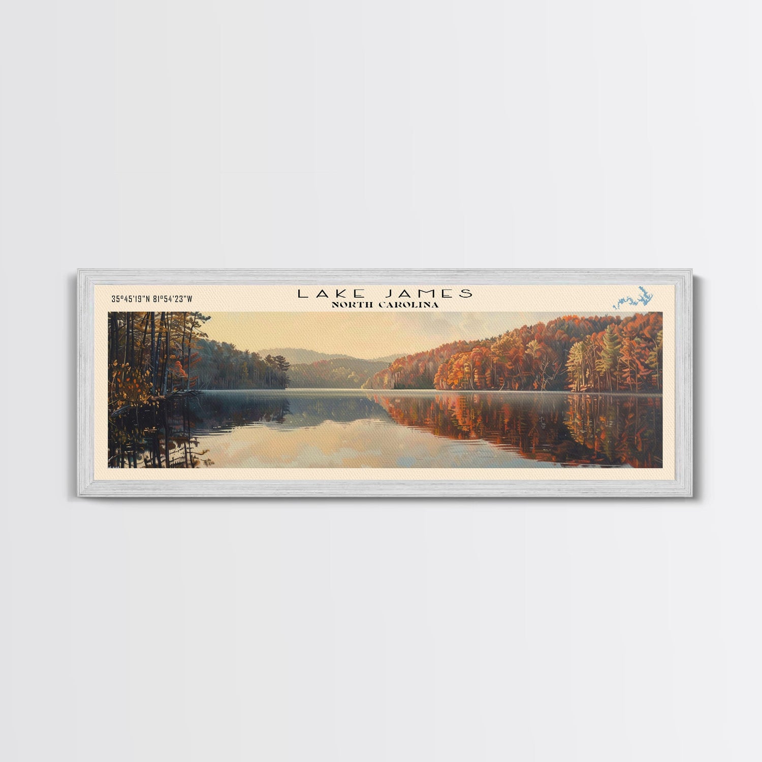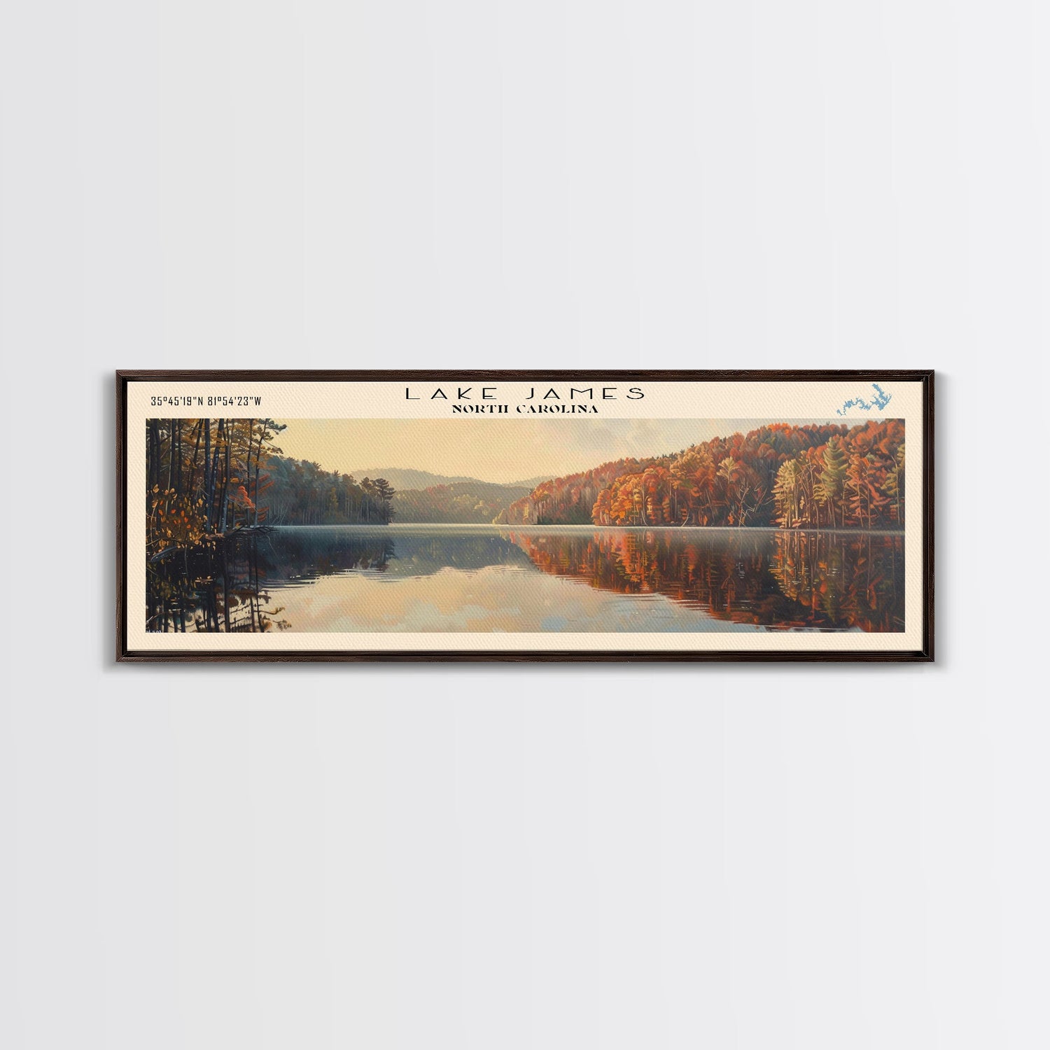 Lake James North Carolina Framed Canvas Print, Lake House Decor, Panoramic Wall Art, Travel Poster, Scenic Lake Painting, Nature Art