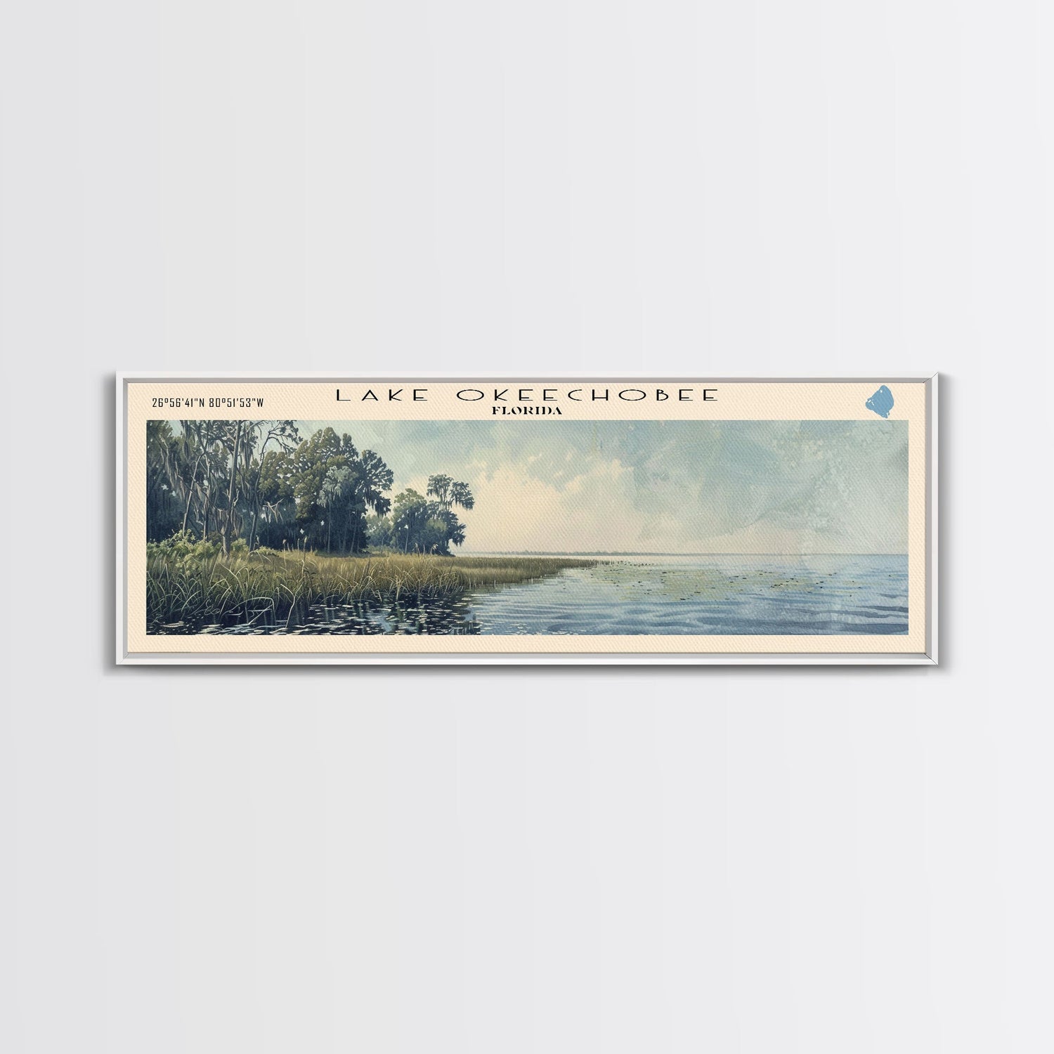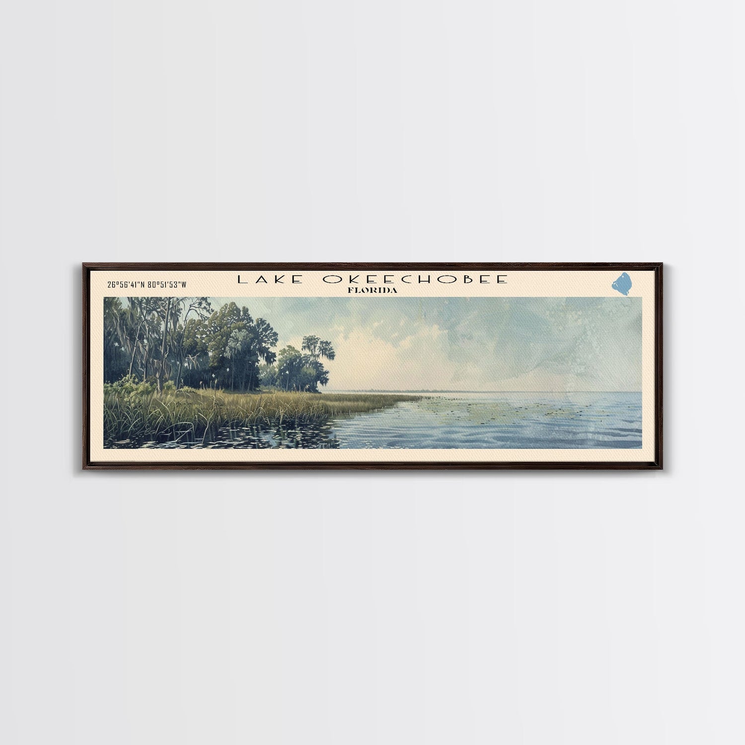 Lake Keechobee Framed Canvas Print, Lake House Decor, Panoramic Wall Art, Travel Poster, Serene Lake Painting, Nature Art