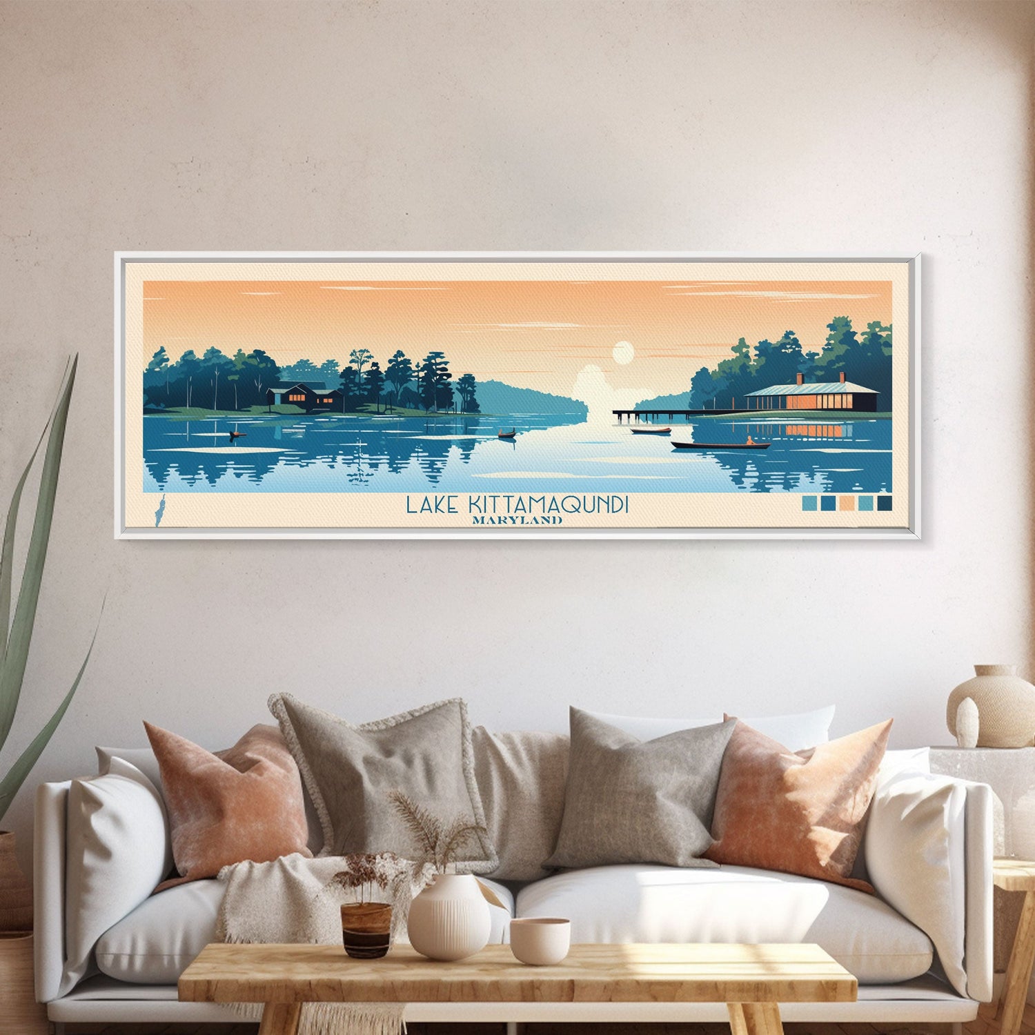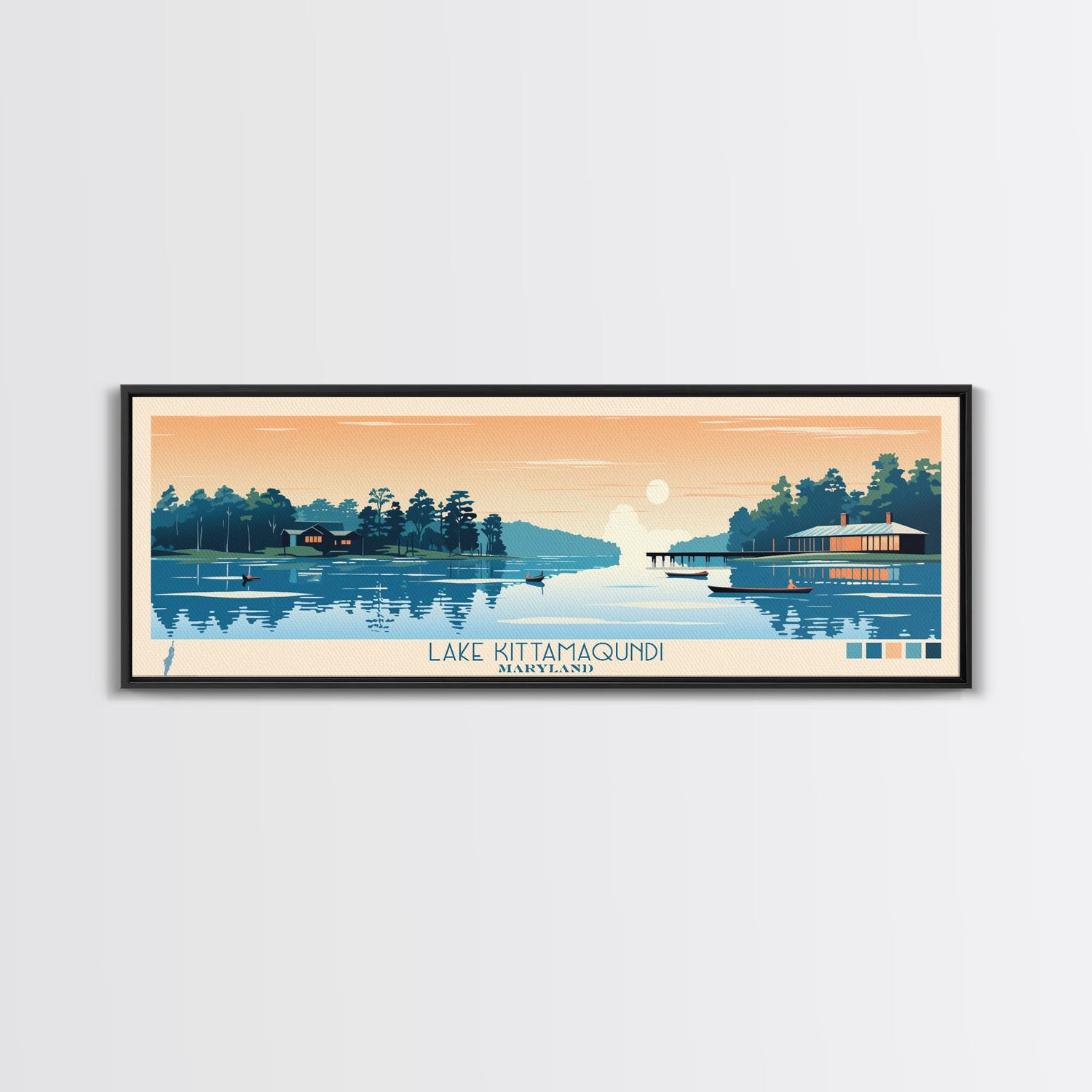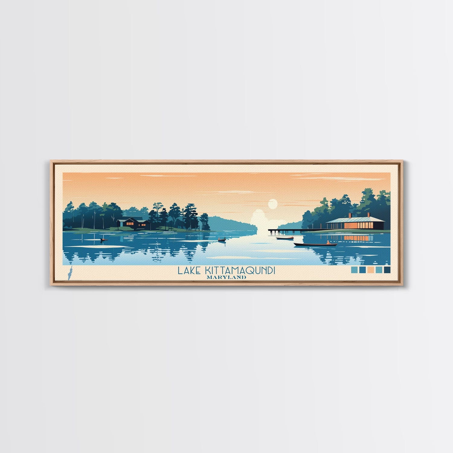 Lake Kittamaqundi Maryland Framed Canvas Print, Panoramic Wall Art, Midcentury Modern, Pop Art, Lake House Decor, Travel Poster, Bedroom Art