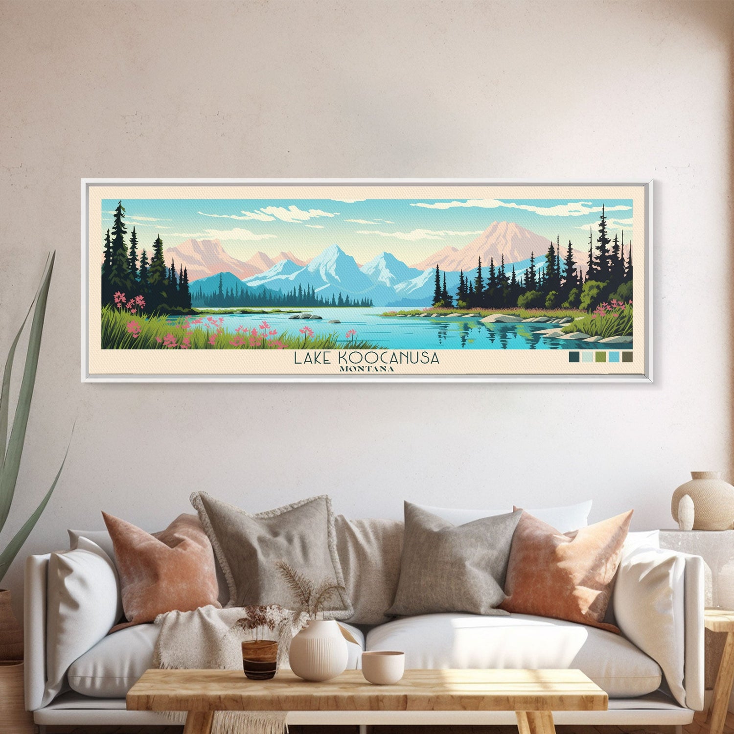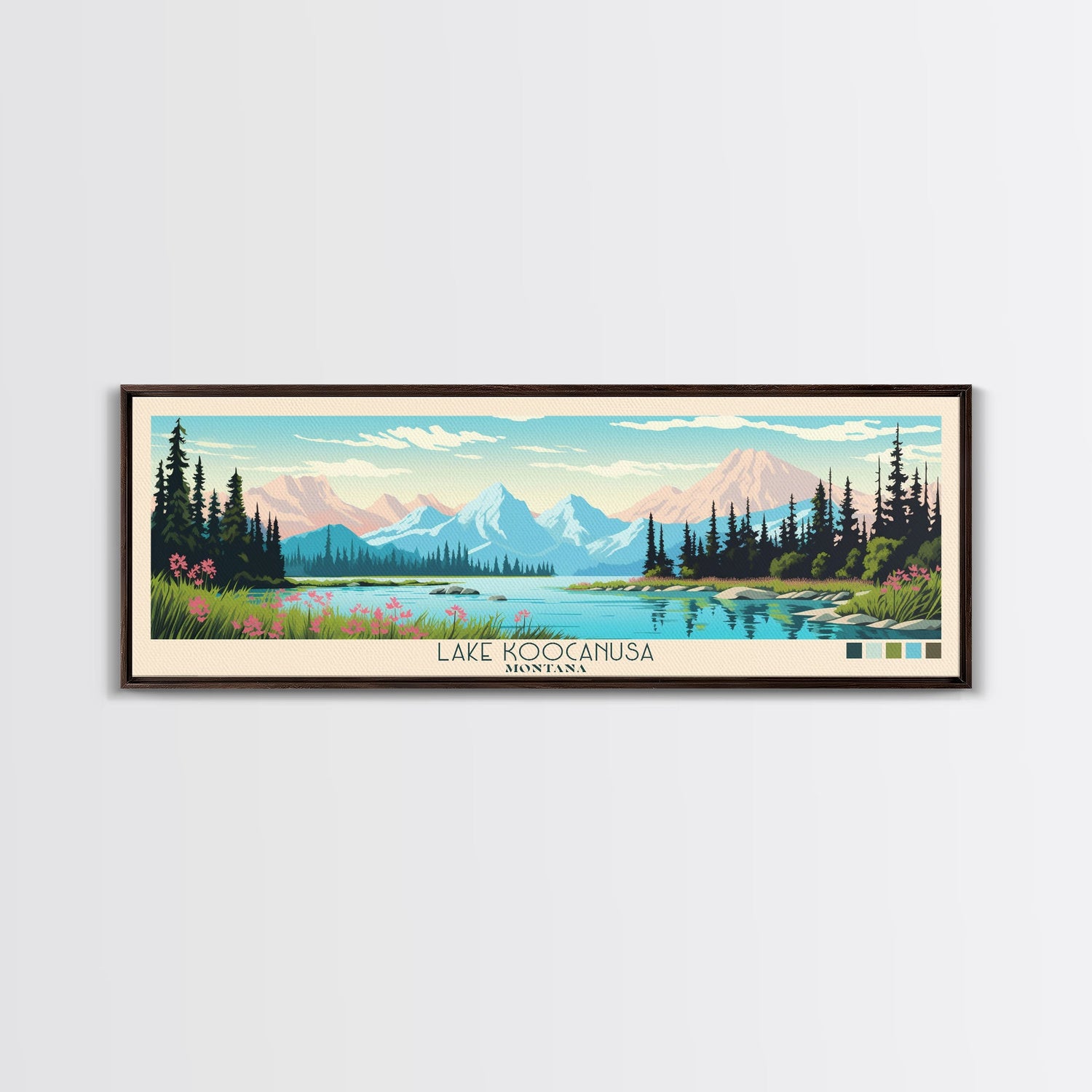 Lake Koocanusa Montana Framed Canvas Print, Panoramic Wall Art, Midcentury Modern, Pop Art, Living Room Decor, Travel Poster, Bedroom Art