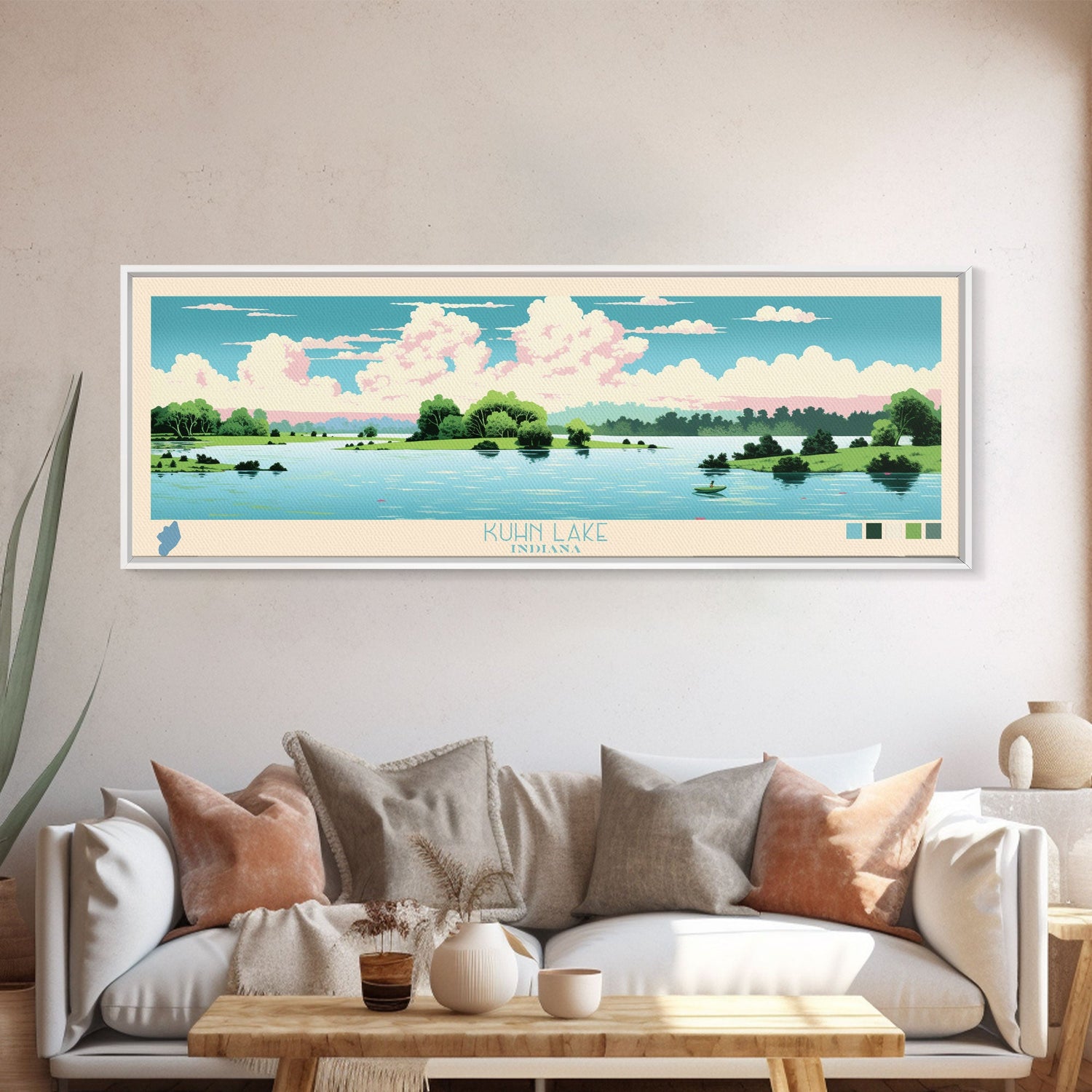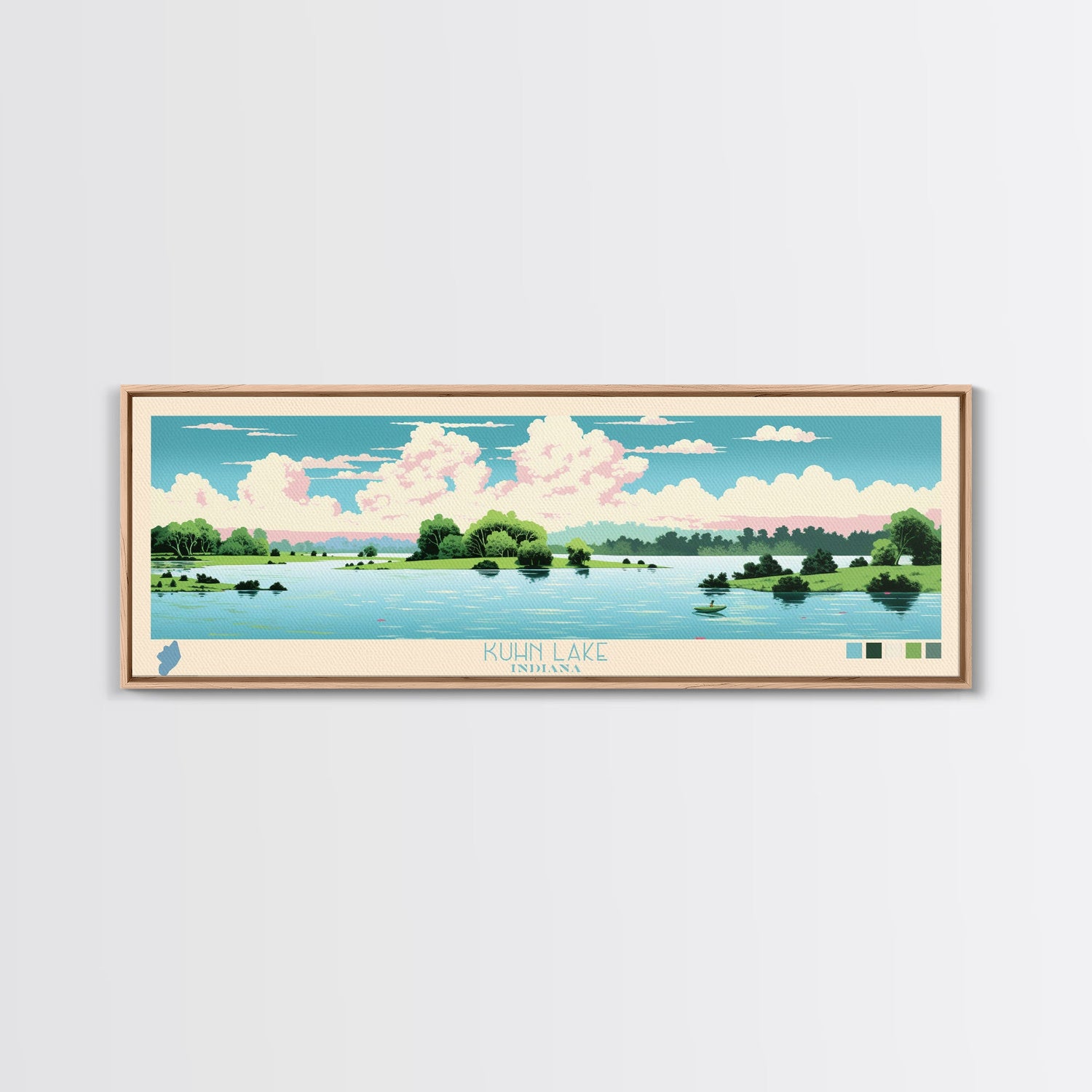 Lake Kuhn Indiana Framed Canvas Print, Panoramic Wall Art, Midcentury Modern, Pop Art, Lake House Decor, Travel Poster, Bedroom Art