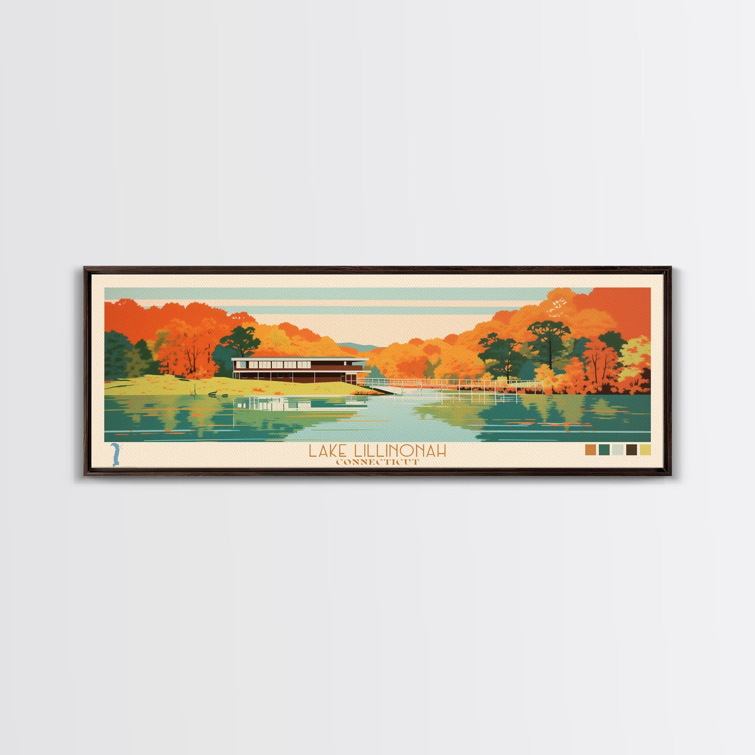 Lake Lillinonah Connecticut Framed Canvas Print, Panoramic Wall Art, Midcentury Modern, Pop Art, Living Room Decor, Travel Poster