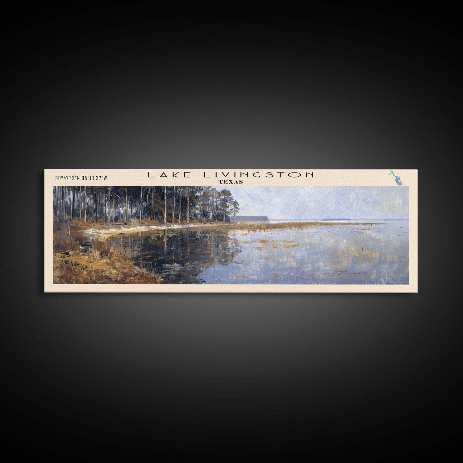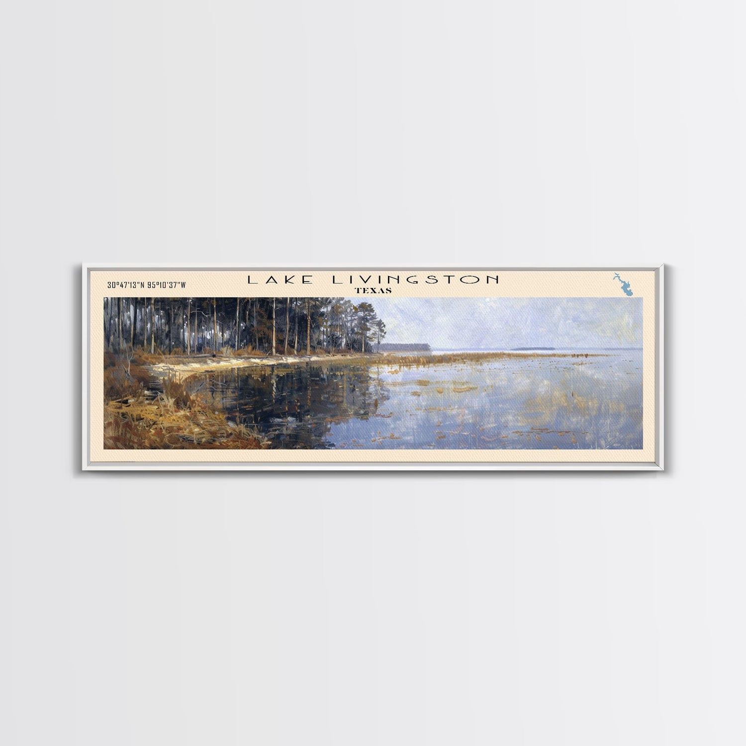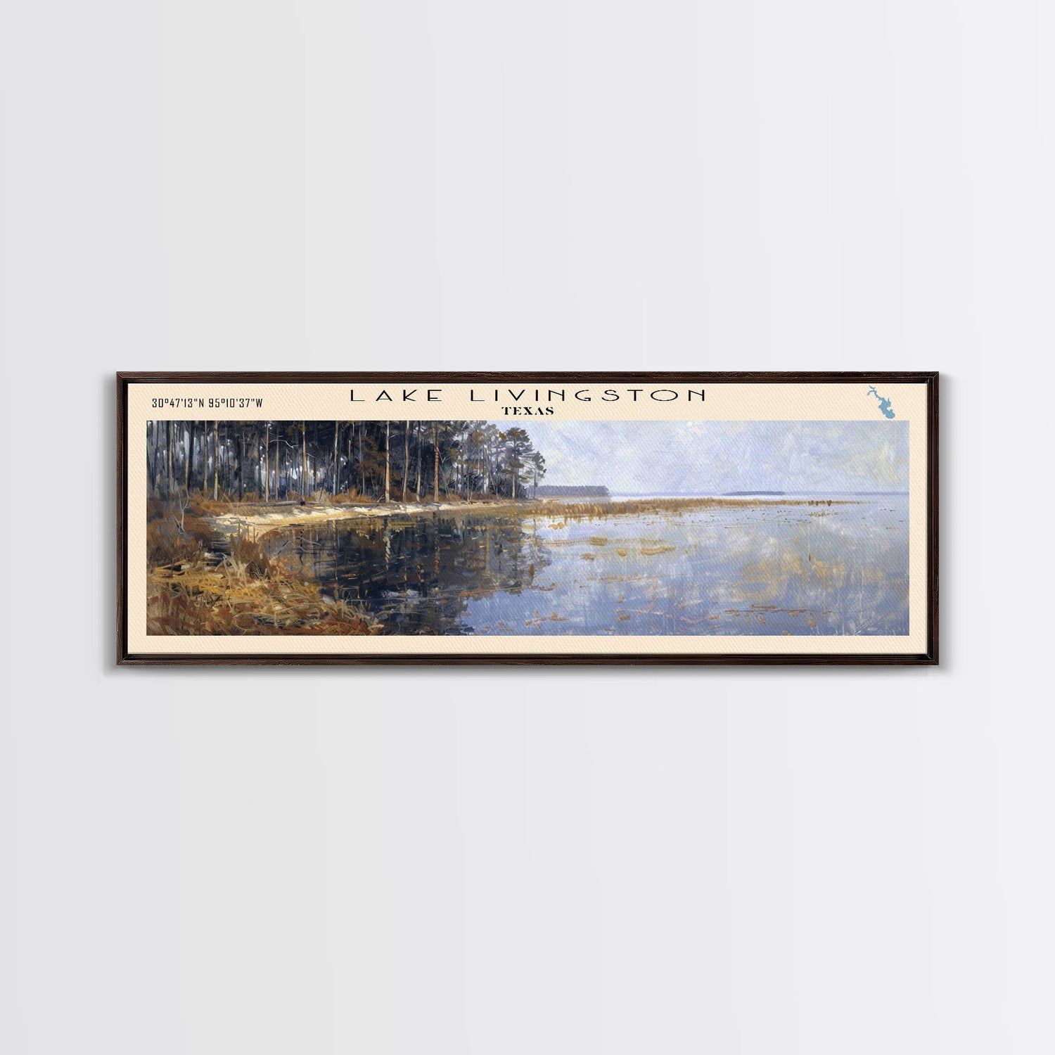 Lake Livingston Texas Framed Canvas Print, Lake House Decor, Panoramic Wall Art, Travel Poster, Scenic Lakeside Painting, Nature Print