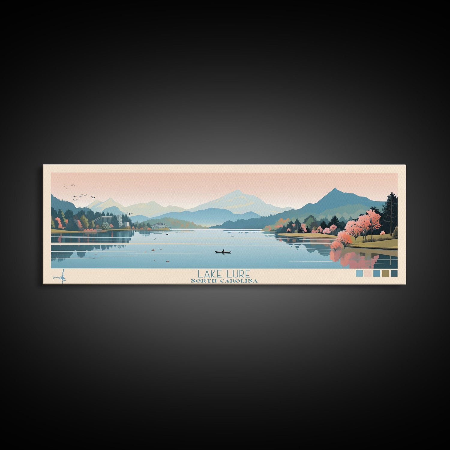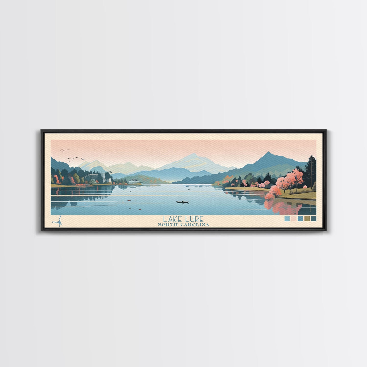 Lake Lure North Carolina Framed Canvas Print, Panoramic Wall Art, Midcentury Modern, Pop Art, Living Room Decor, Travel Poster
