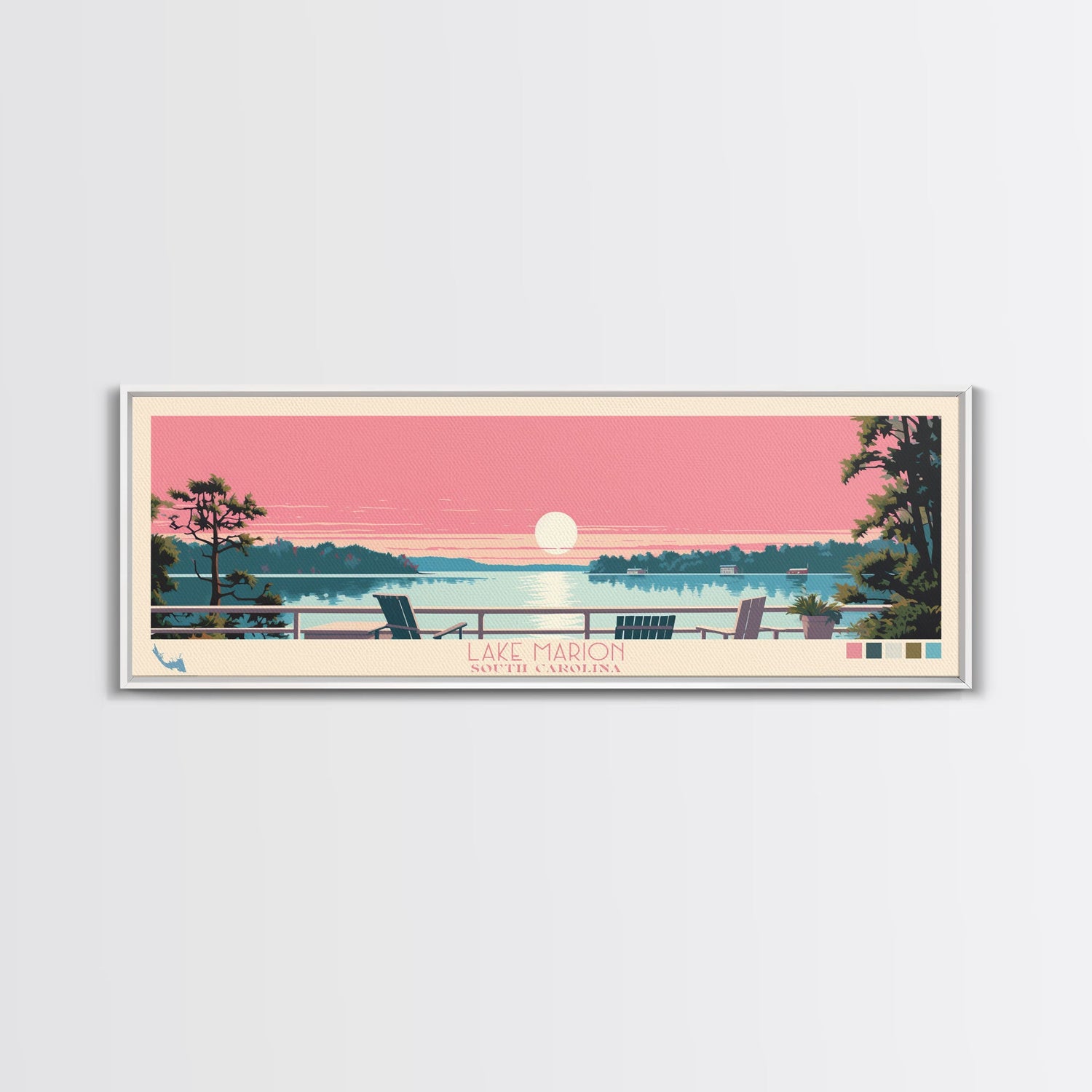 Lake Marion South Carolina Framed Canvas Print, Panoramic Wall Art, Midcentury Modern, Pop Art, Living Room Decor, Travel Poster