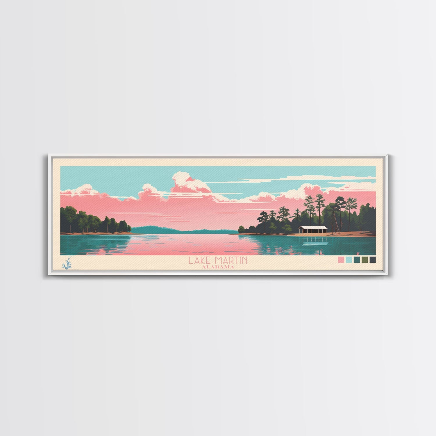 Lake Martin Alabama Framed Canvas Print, Panoramic Wall Art, Midcentury Modern, Pop Art, Living Room Decor, Travel Poster