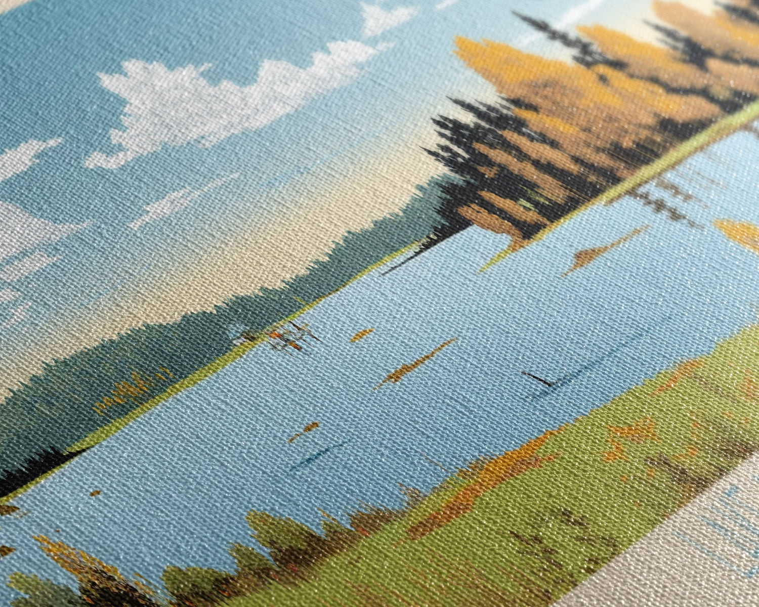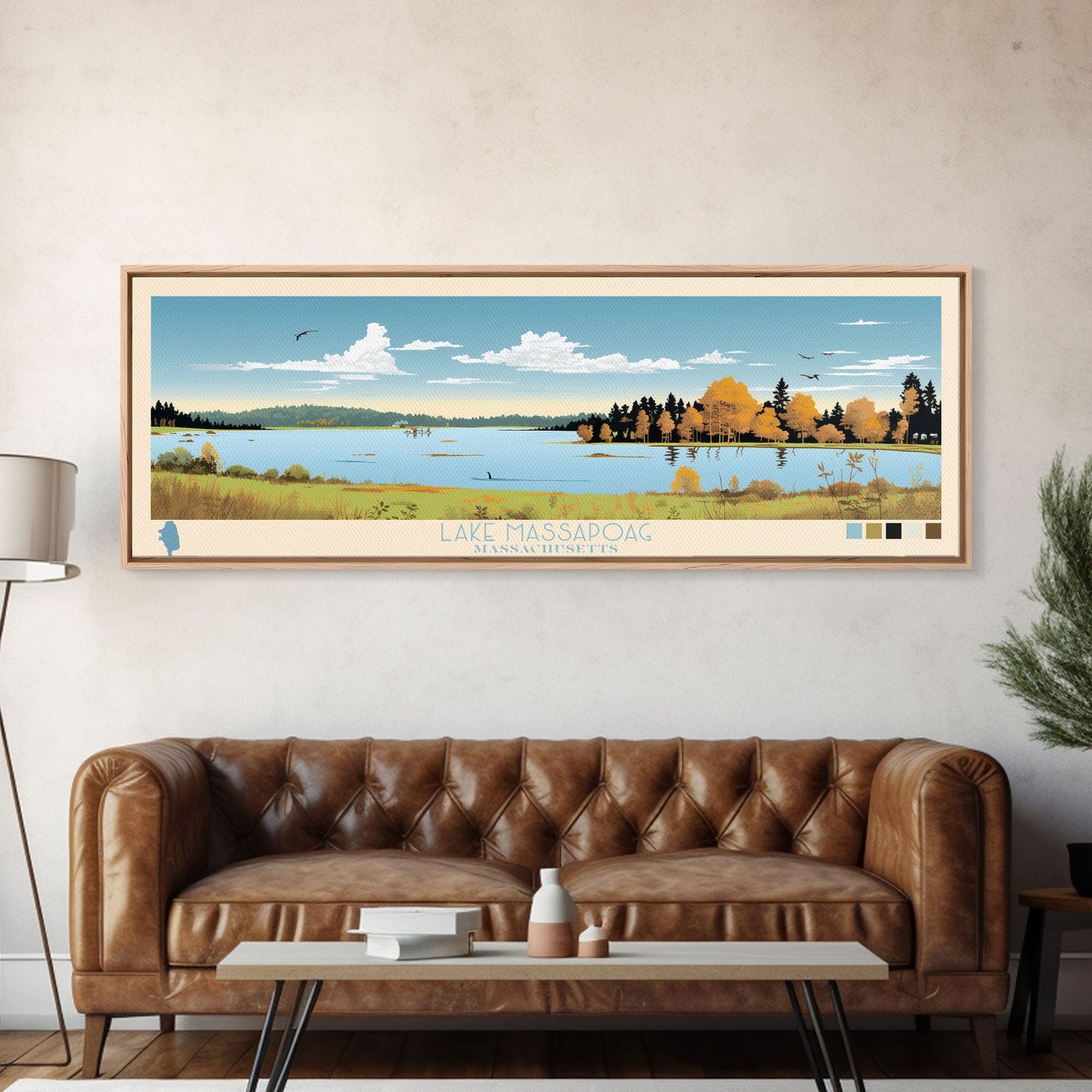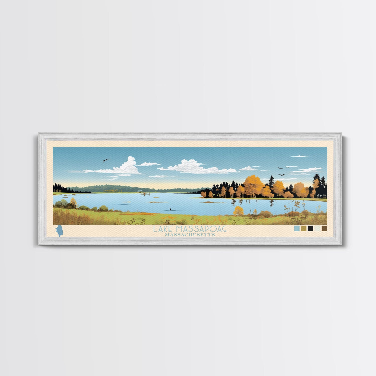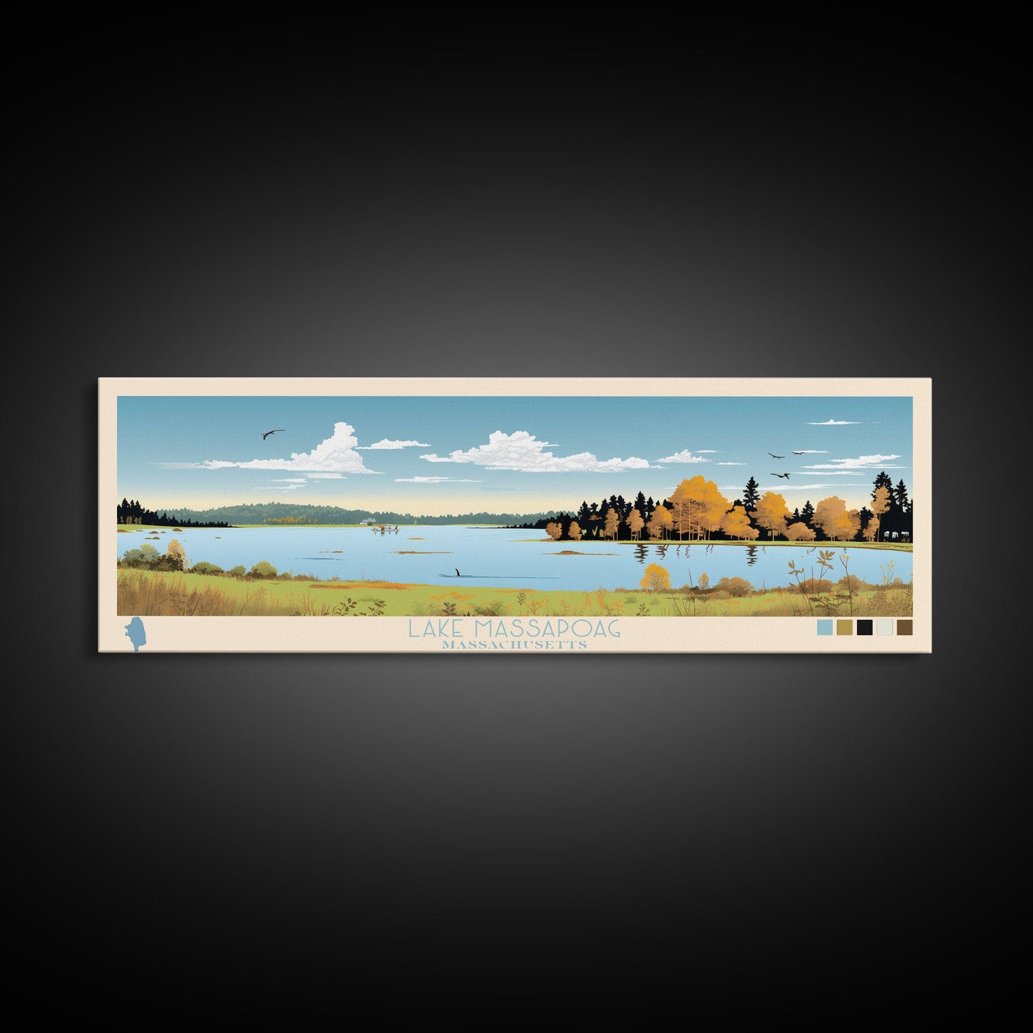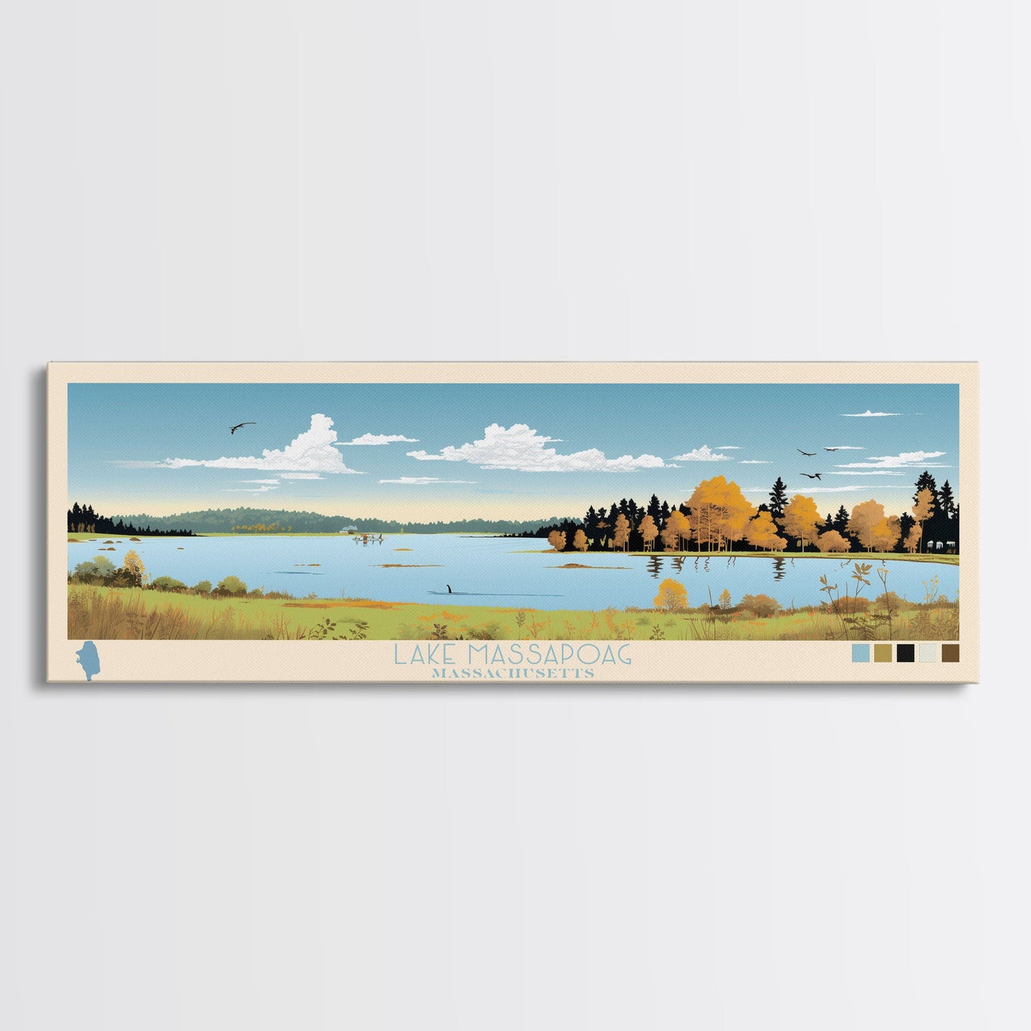 Lake Massapoag Massachusetts Framed Canvas Print, Panoramic Wall Art, Midcentury Modern, Pop Art, Living Room Decor, Travel Poster