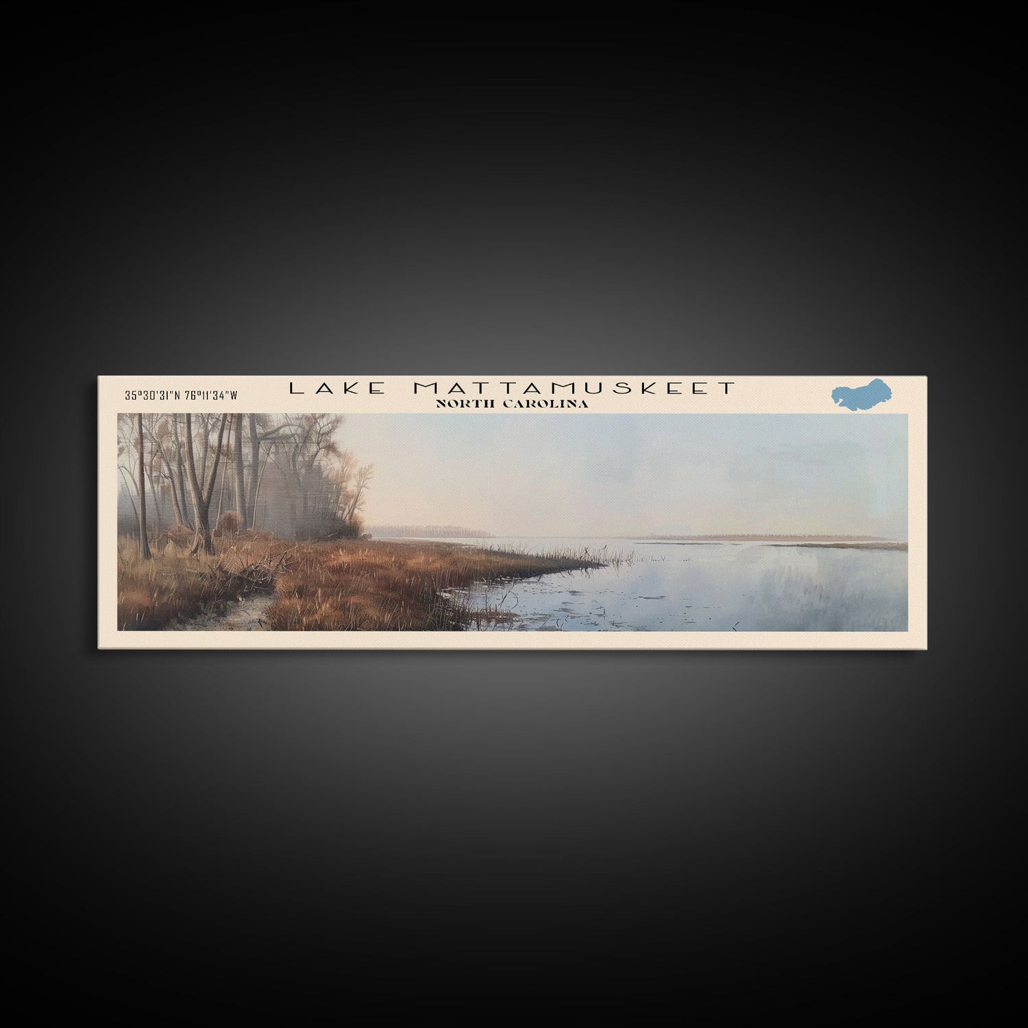 Lake Mattamuskeet North Carolina Framed Canvas Print, Lake House Decor, Panoramic Wall Art, Travel Poster, Beautiful Lakeview Painting, Modern Art
