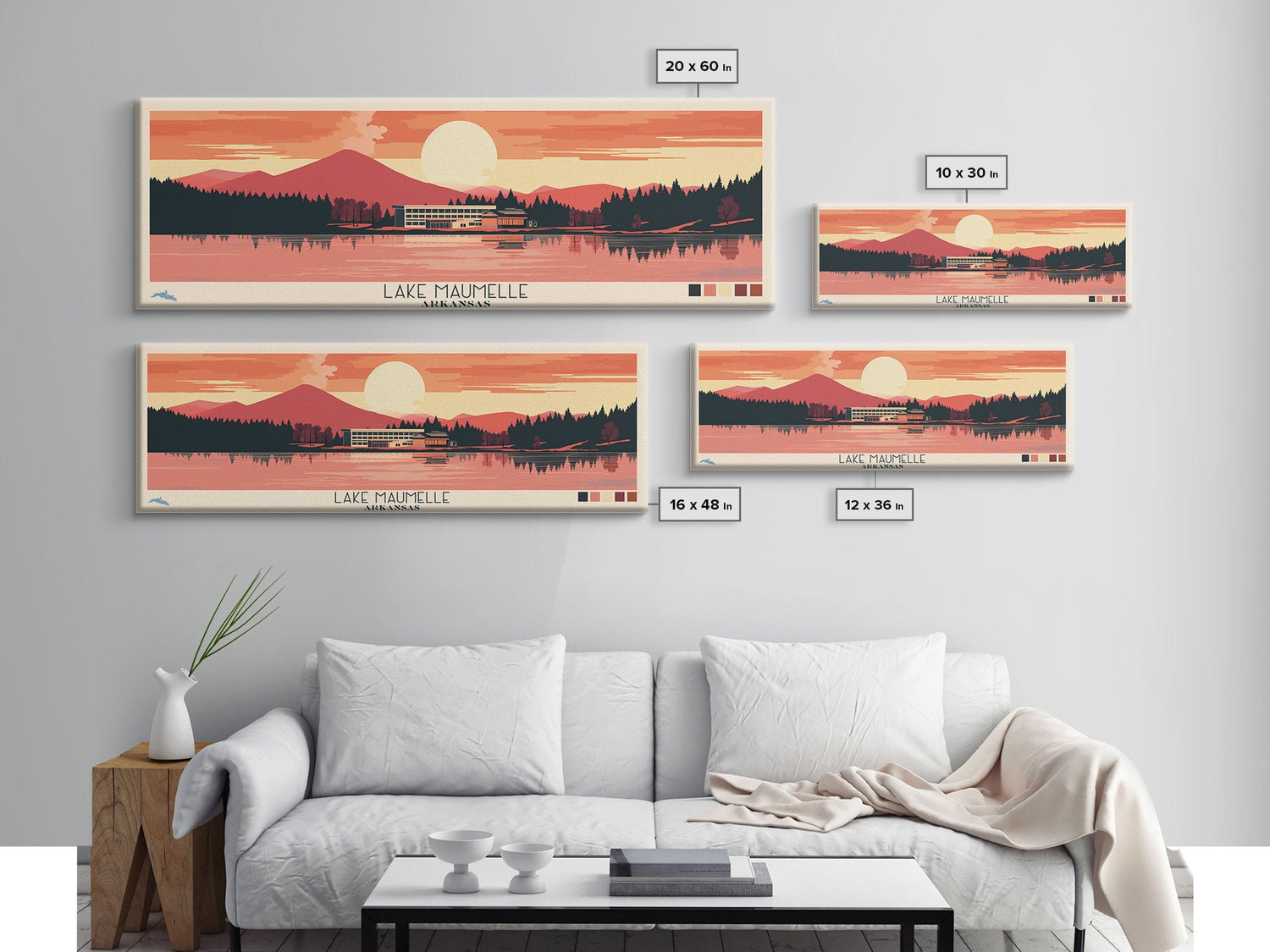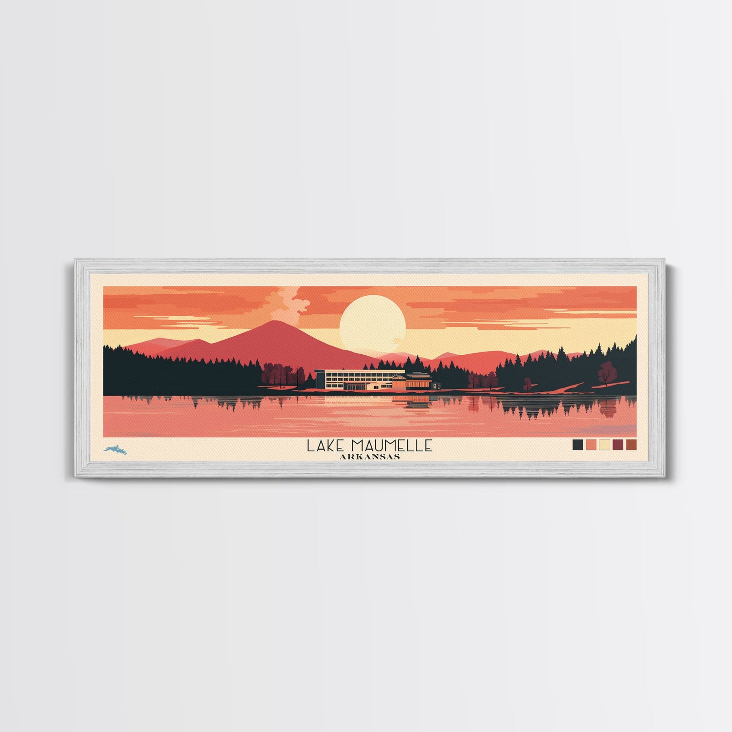 Lake Maumelle Arkansas Framed Canvas Print, Panoramic Wall Art, Midcentury Modern, Pop Art, Living Room Decor, Travel Poster