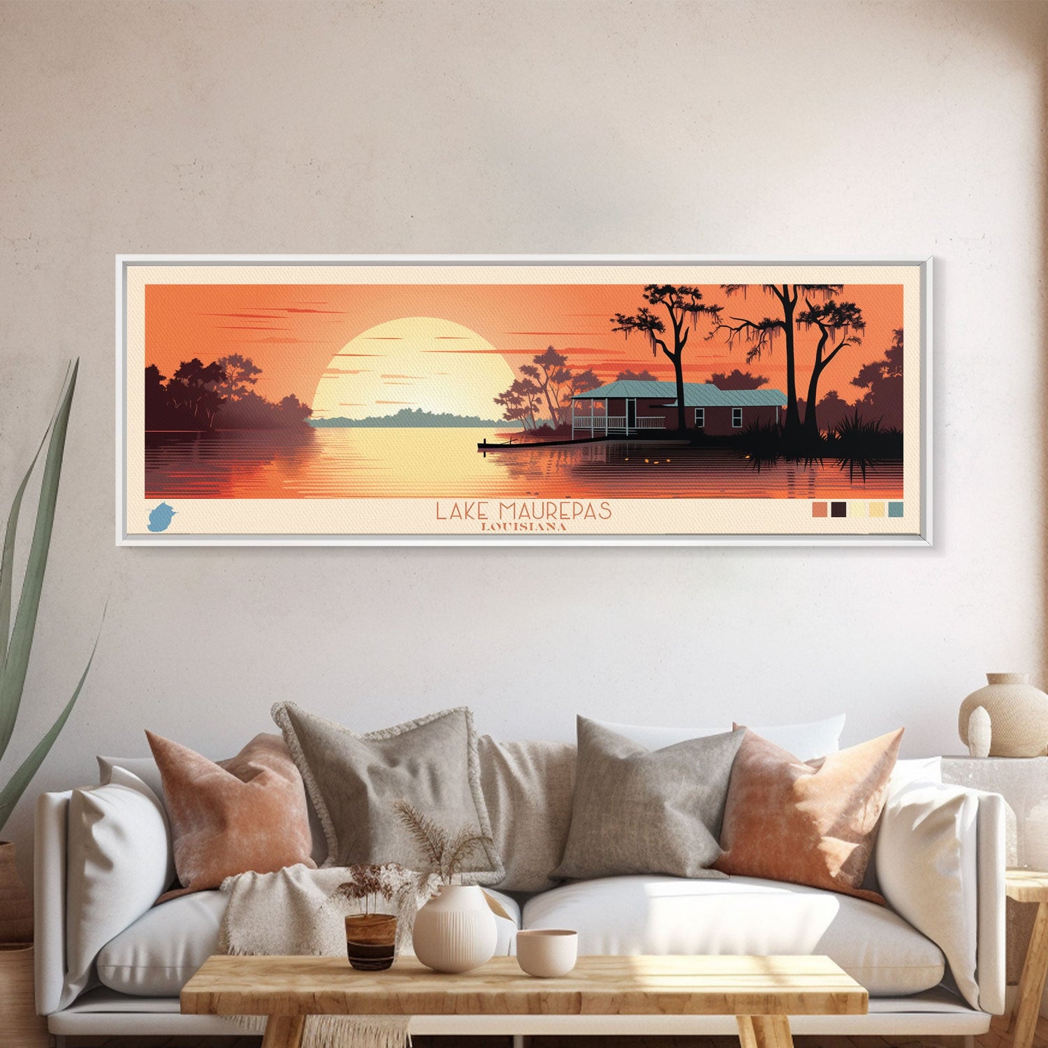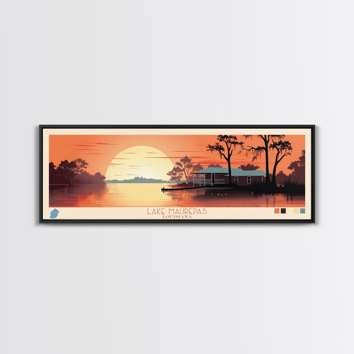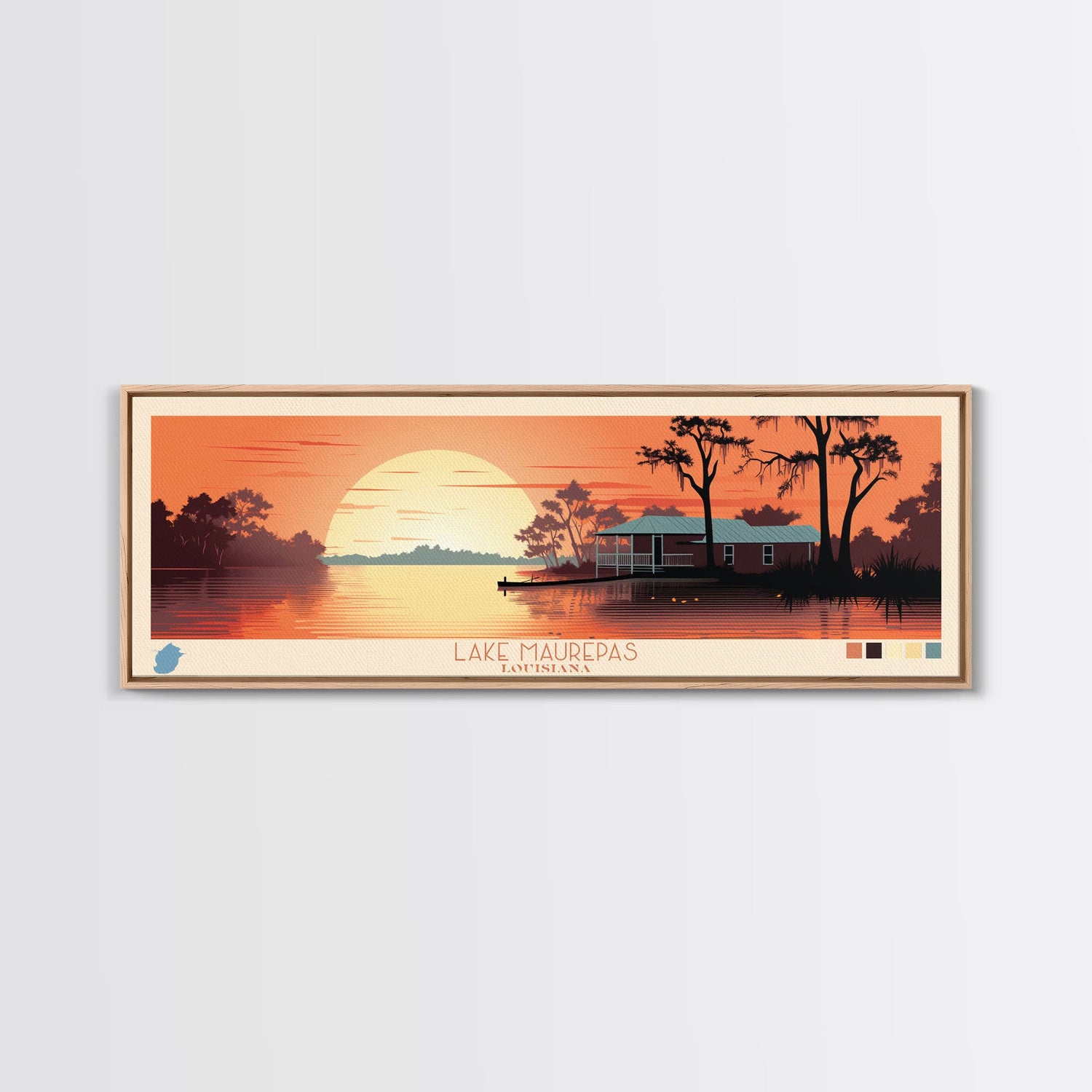 Lake Maurepas Louisiana Framed Canvas Print, Panoramic Wall Art, Midcentury Modern, Pop Art, Bedroom Art, Travel Poster, Lake House Decor