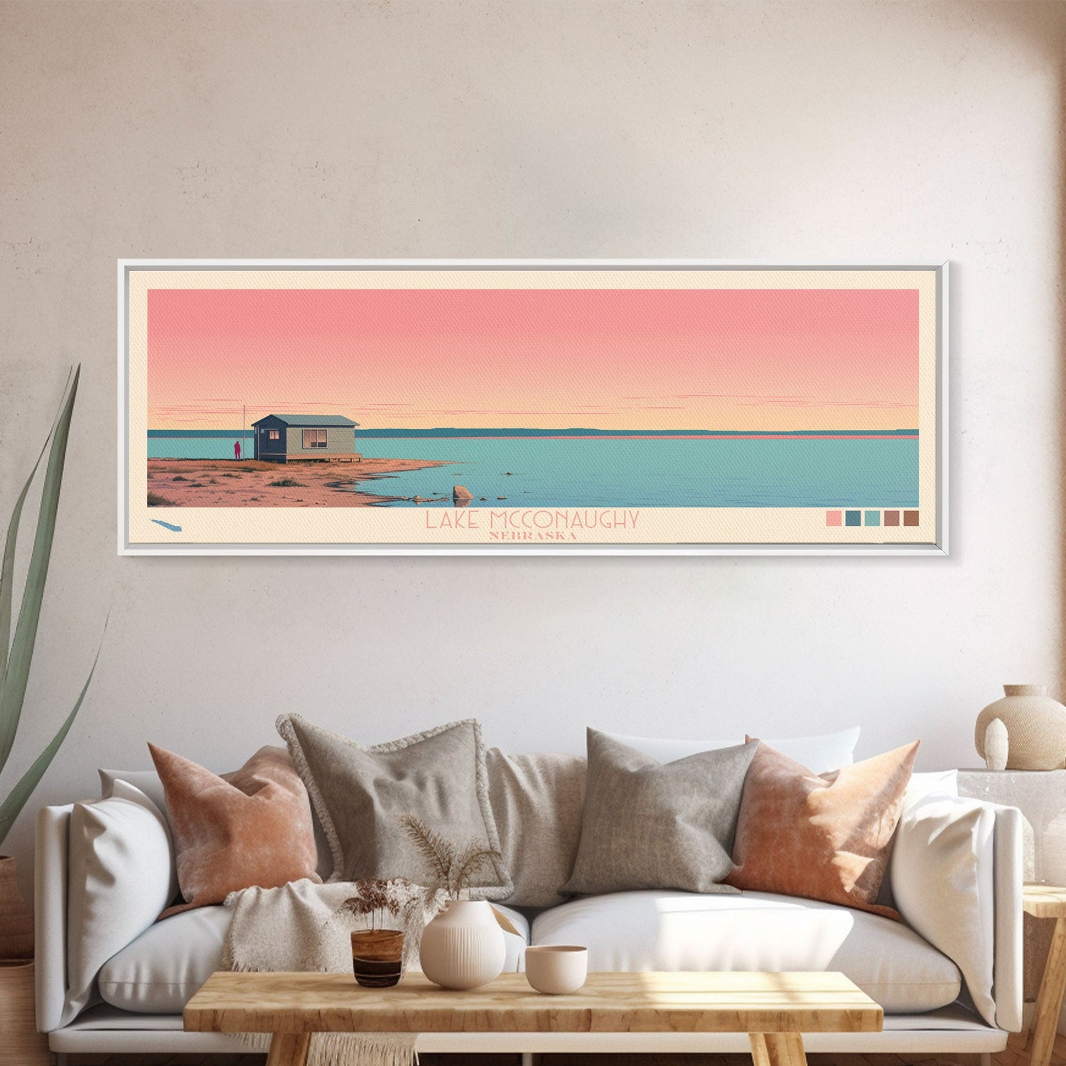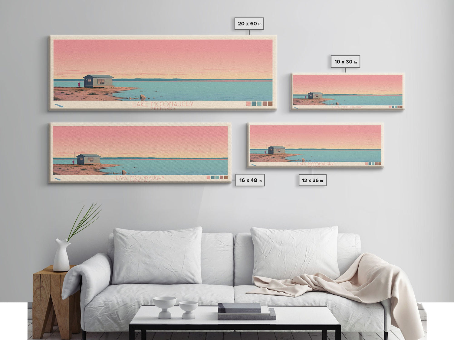 Lake McConaughy Nebraska Framed Canvas Print, Panoramic Wall Art, Midcentury Modern, Pop Art, Living Room Decor, Travel Poster