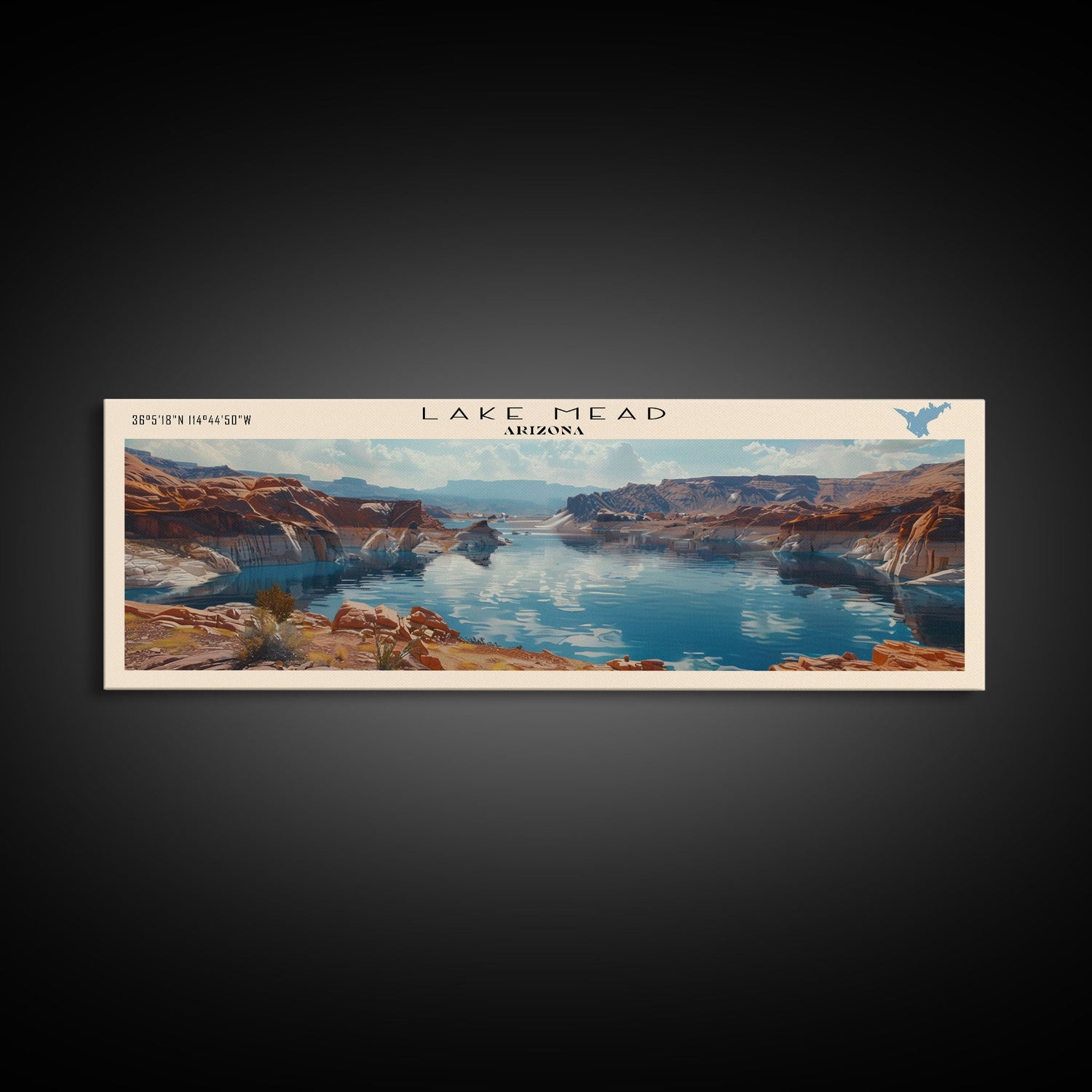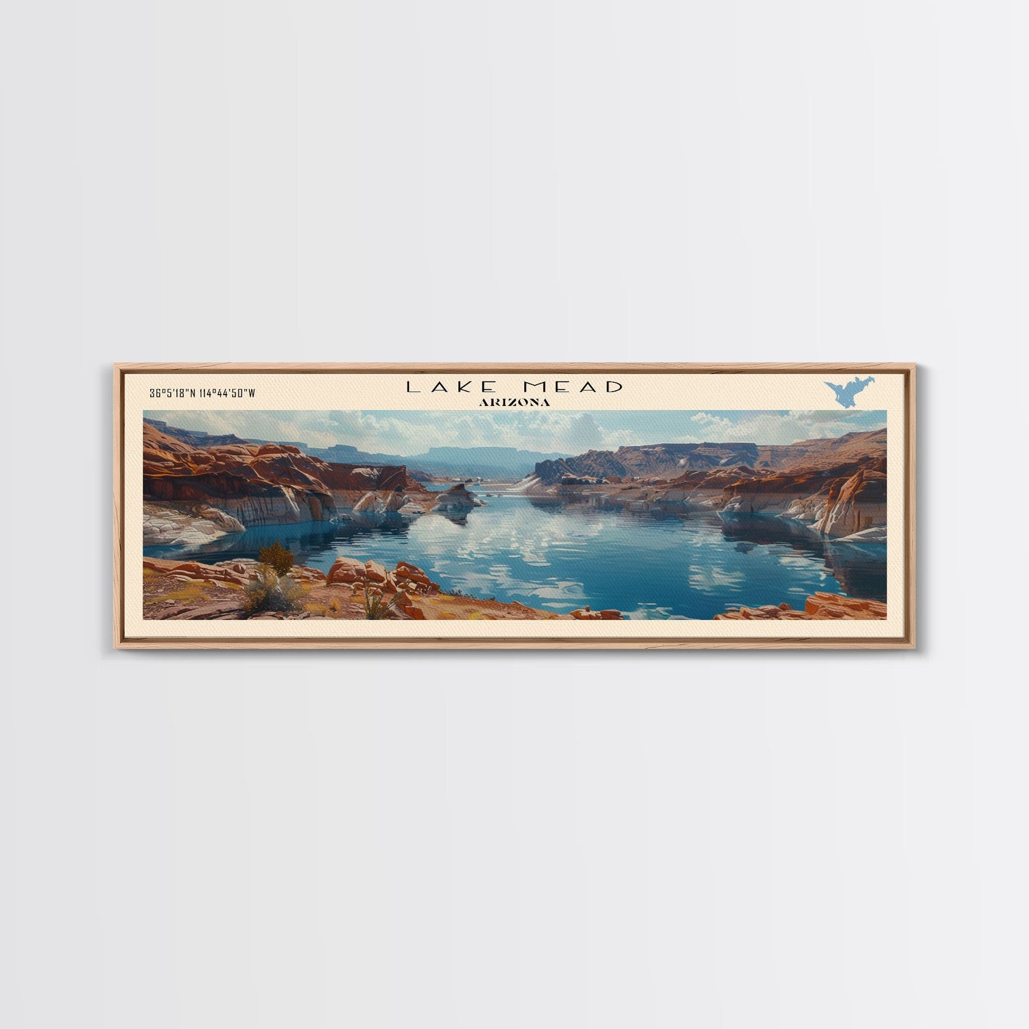 Lake Mead Framed Canvas Print, Lake House Decor, Panoramic Wall Art, Travel Poster, Serene Landscape Painting, Living Room Decor