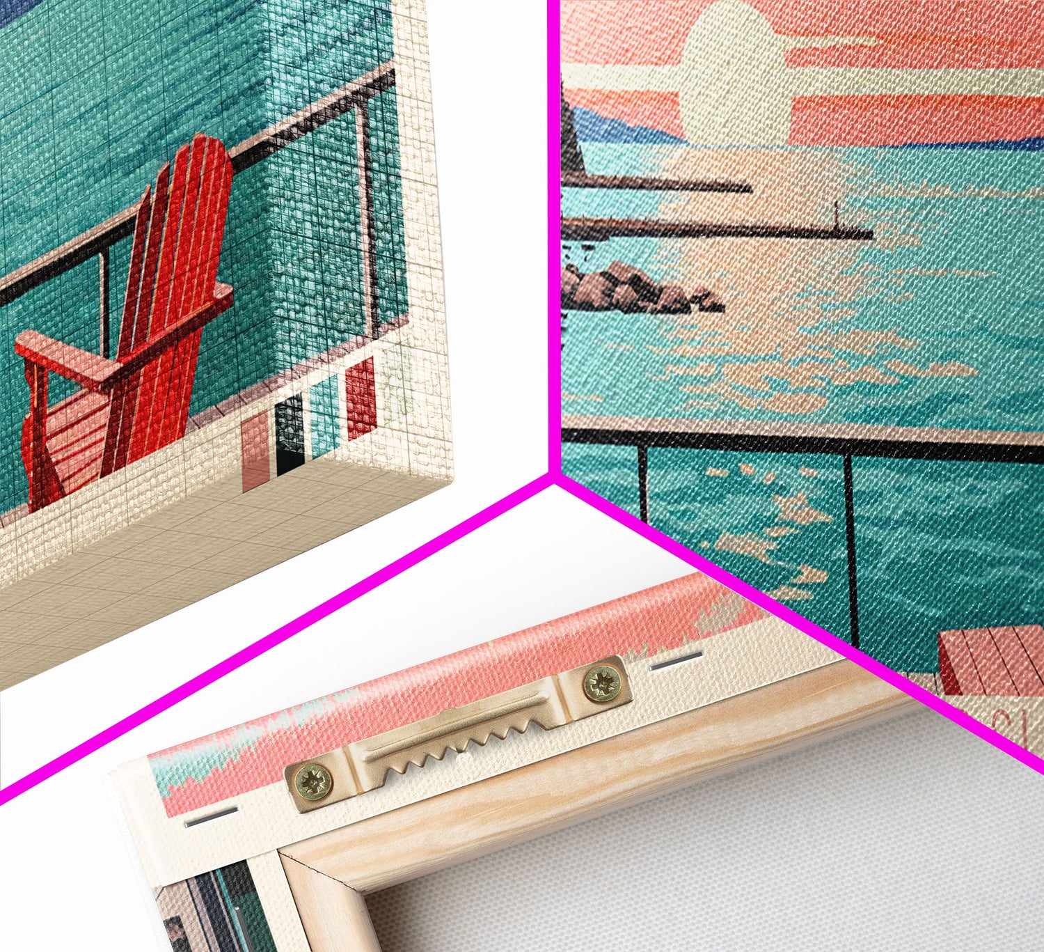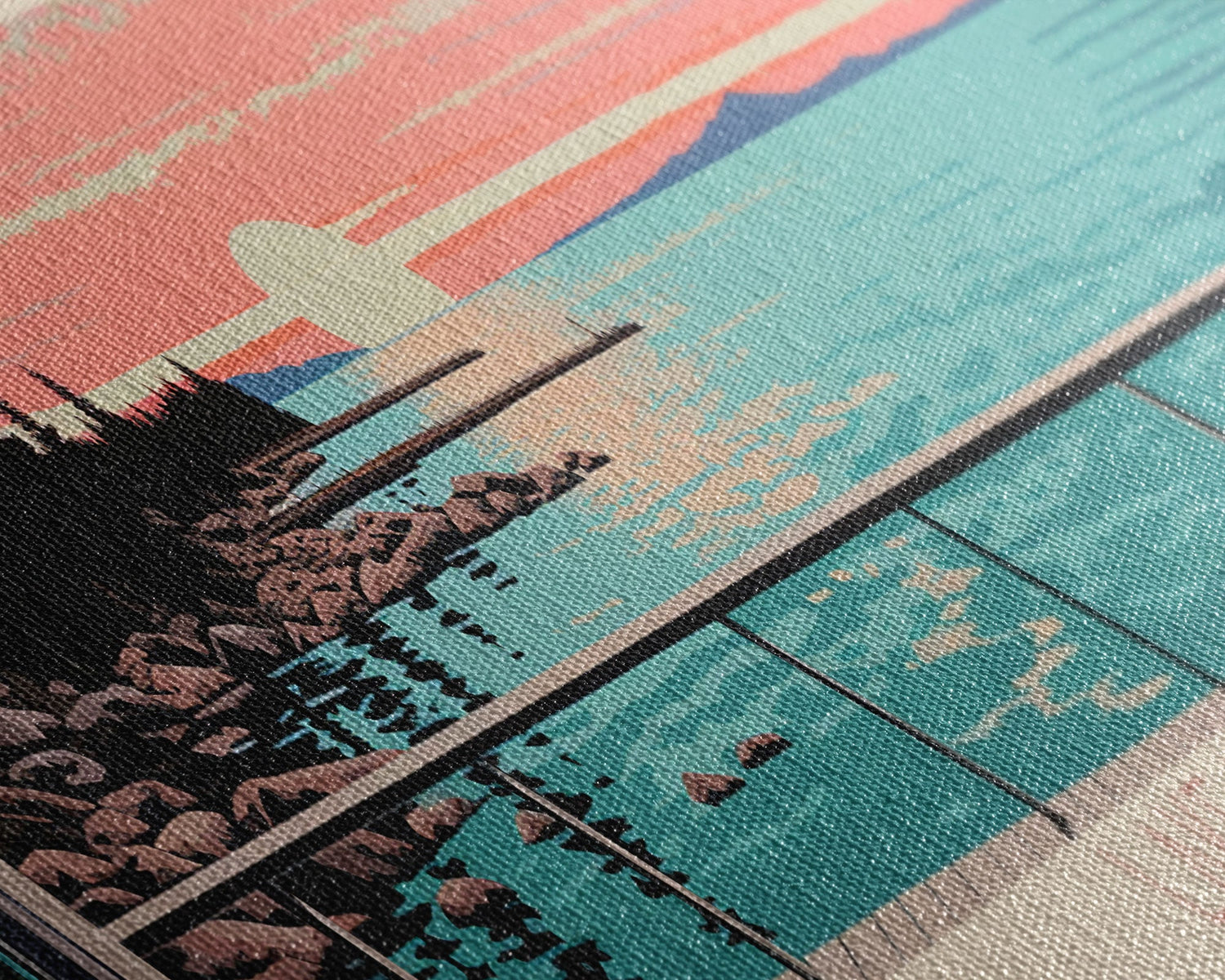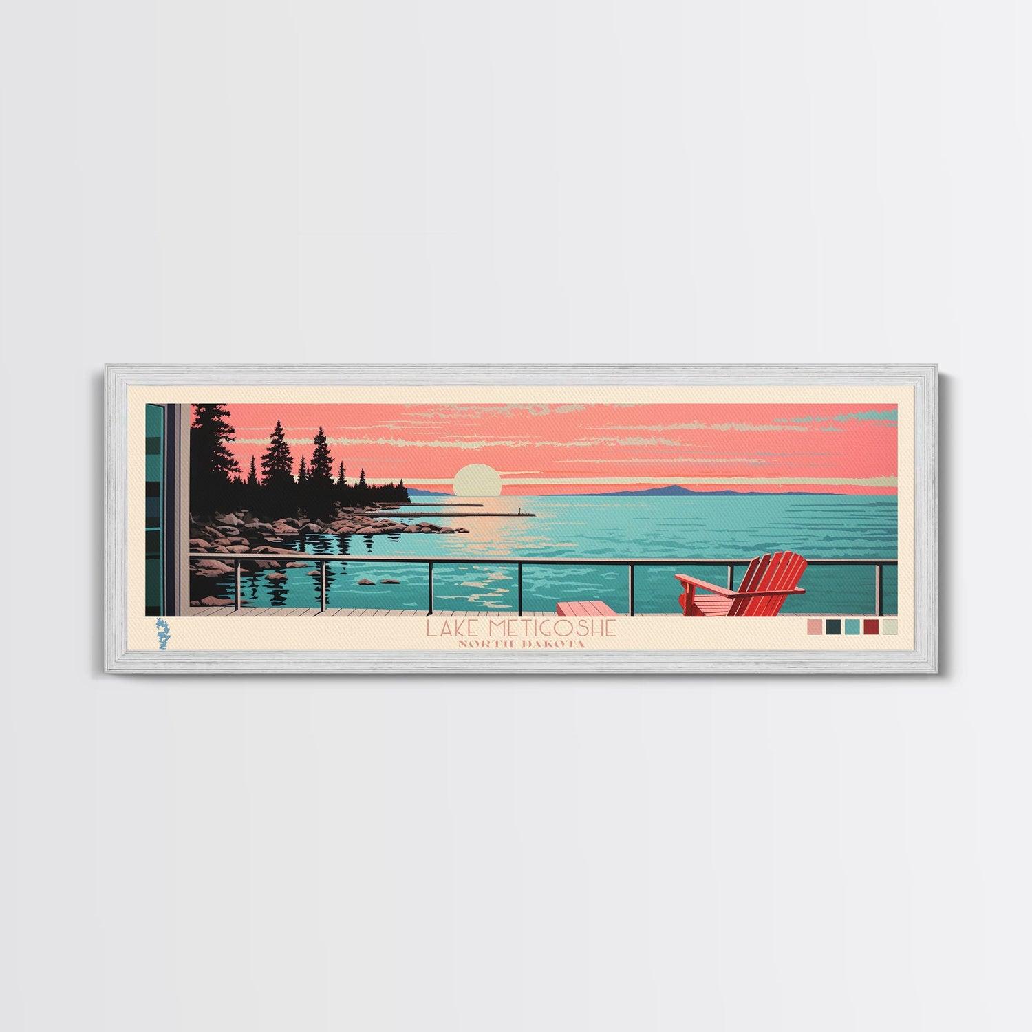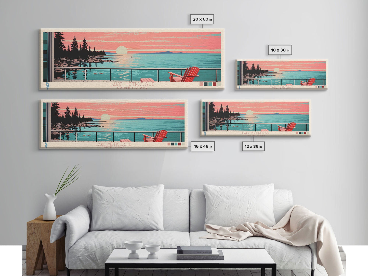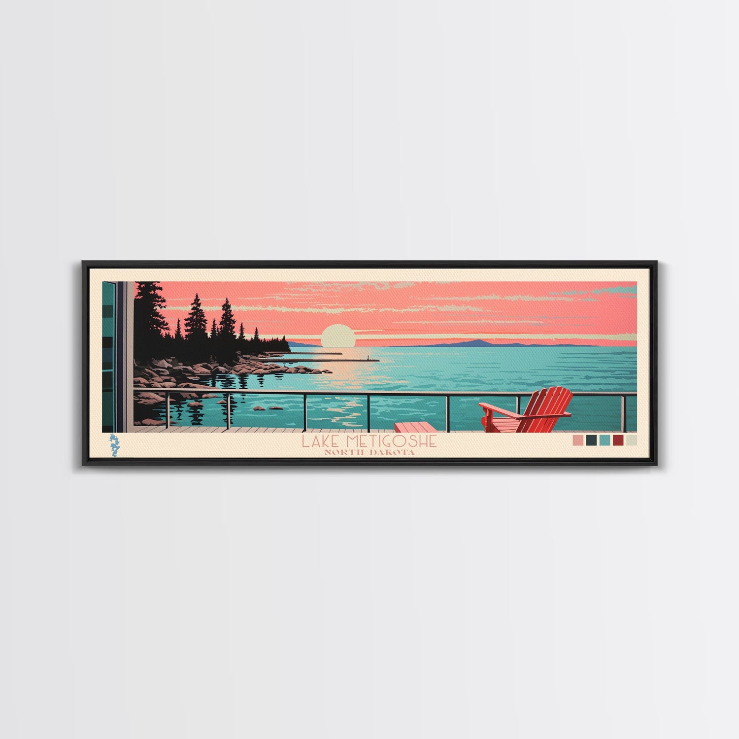 Lake Metigoshe North Dakota Framed Canvas Print, Panoramic Wall Art, Midcentury Modern, Pop Art, Living Room Decor, Travel Poster