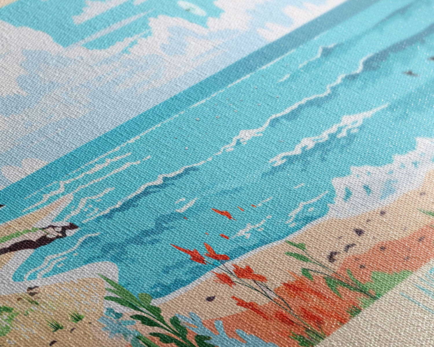 Most of our canvases are made in the USA, with the exception of canvases ordered with the light oak unstained frames, and any large canvases (24x48, 30x60, 16x48 and 20x60) ordered WITH a frame. These are temporarily made in and shipped from Europe, while we try to find a more consistent supplier in the USA.