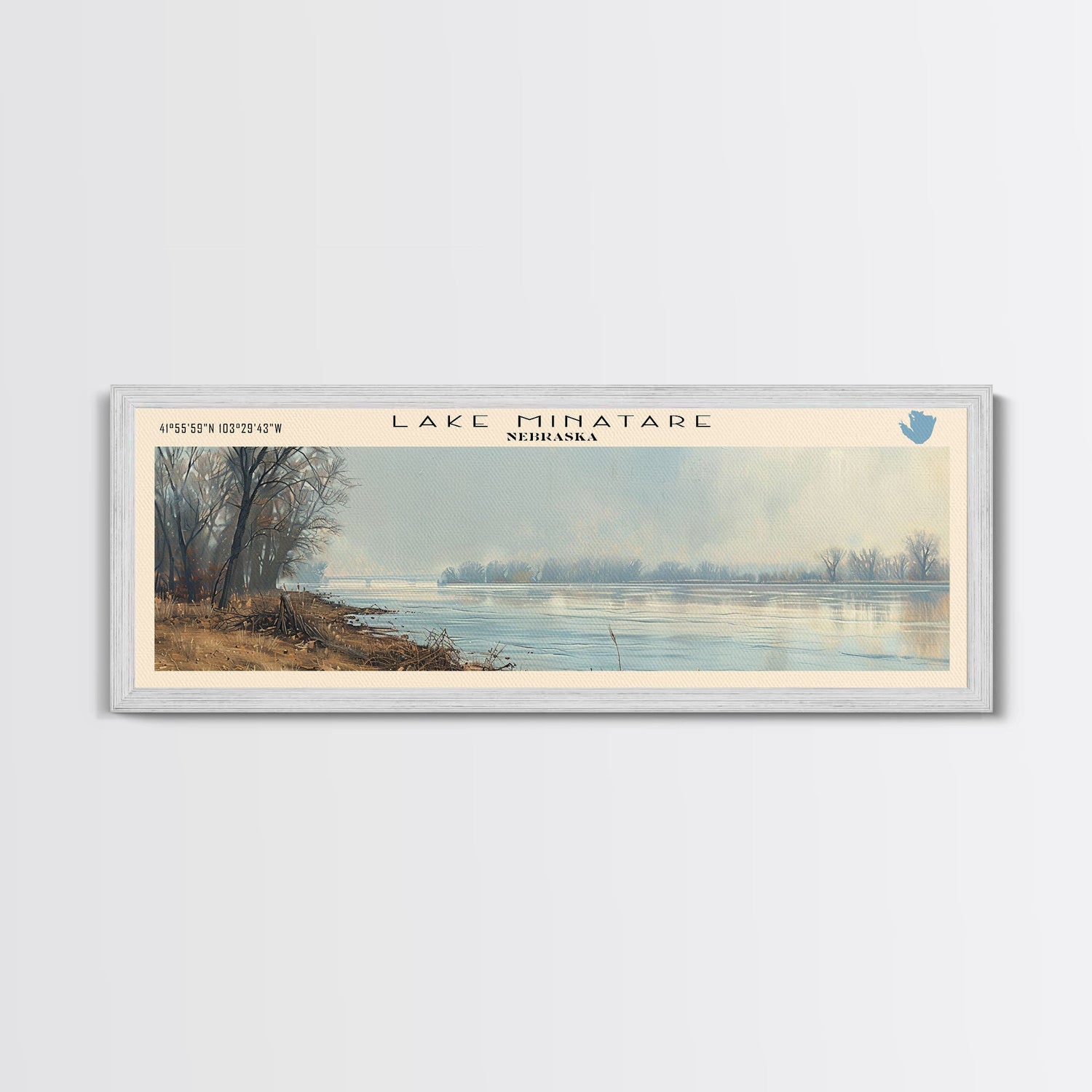 Lake Minatare Nebraska Framed Canvas Print, Lake House Decor, Panoramic Wall Art, Travel Poster, Stunning Landscape Painting, Living Room Decor