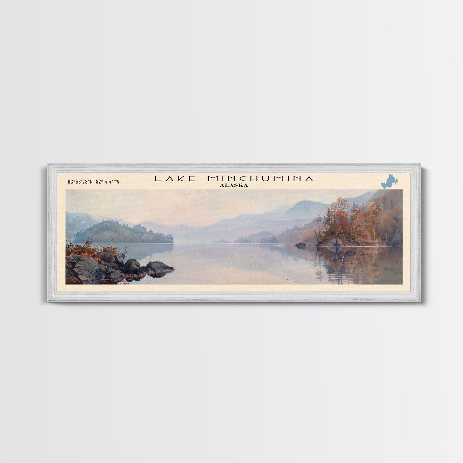 Lake Minchumina Framed Canvas Print, Lake House Decor, Panoramic Wall Art, Travel Poster, Serene Landscape Painting, Bedroom Decor