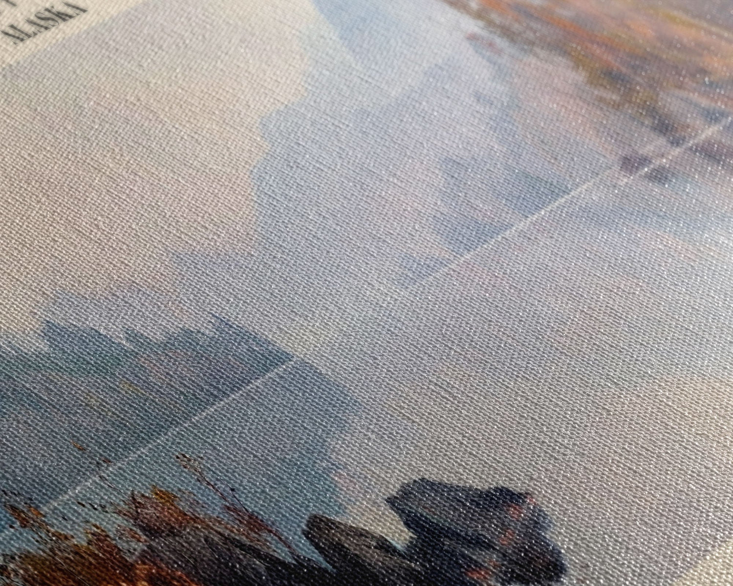 Most of our canvases are made in the USA, with the exception of canvases ordered with the light oak unstained frames, and any large canvases (24x48, 30x60, 16x48 and 20x60) ordered WITH a frame. These are temporarily made in and shipped from Europe, while we try to find a more consistent supplier in the USA.