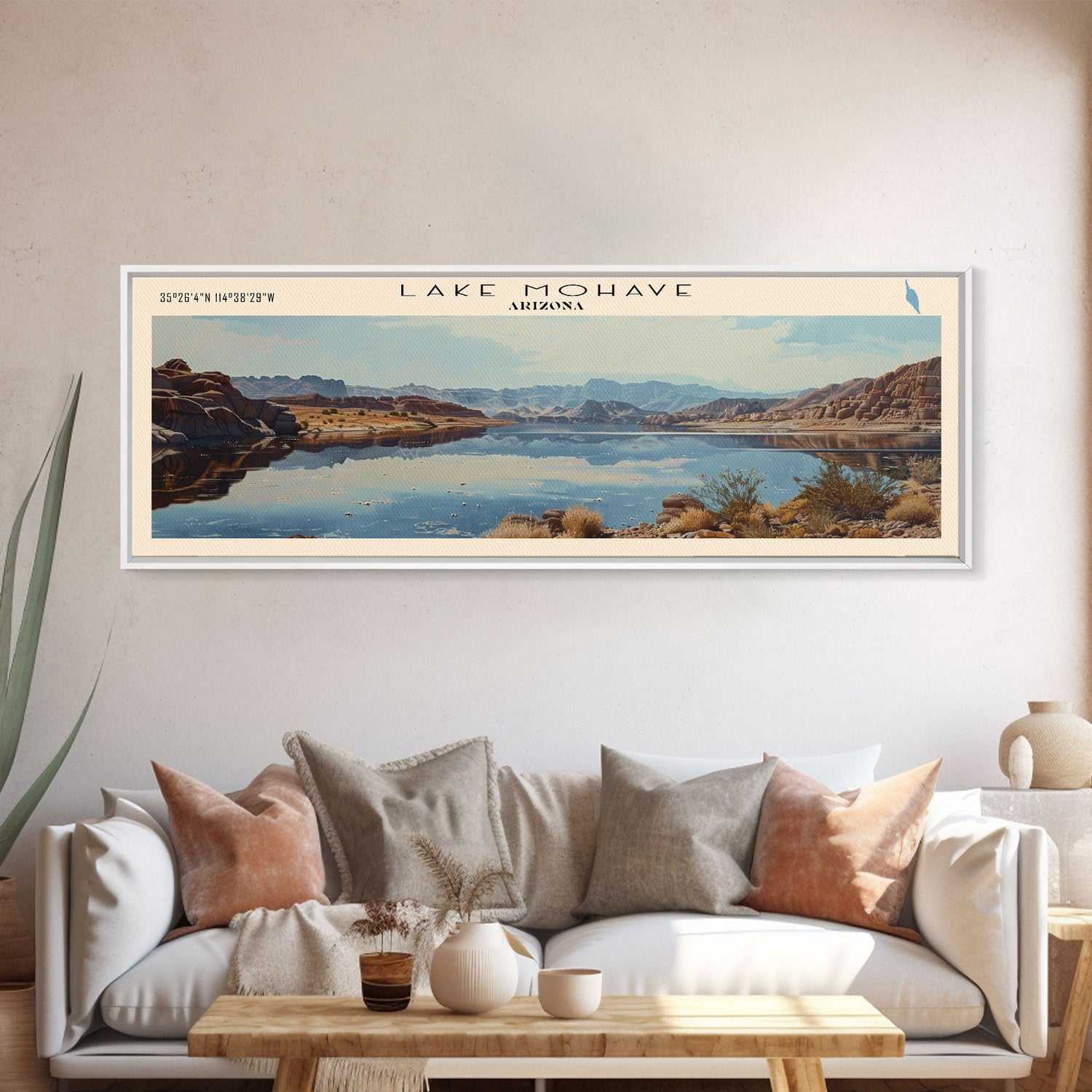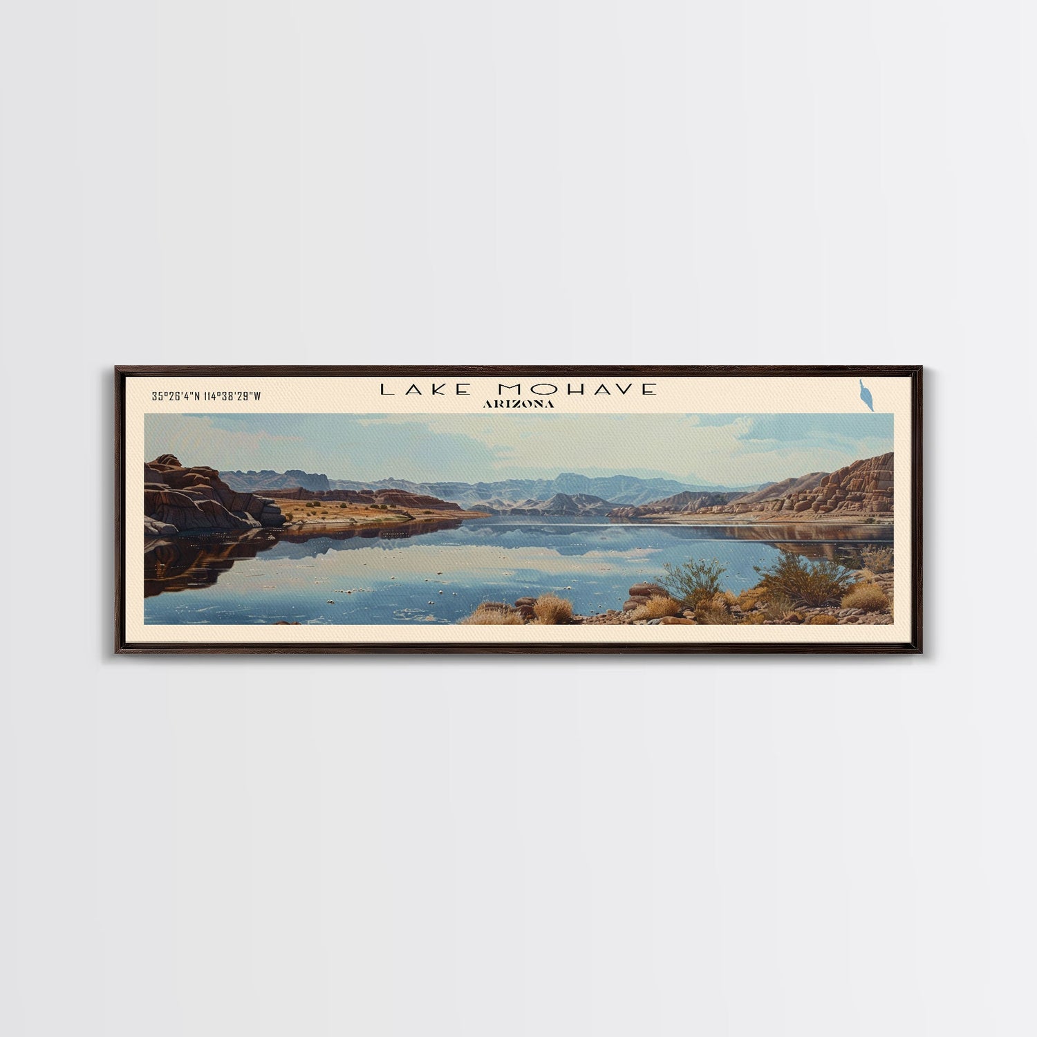 Lake Mohave Arizona Framed Canvas Print, Lake House Decor, Panoramic Wall Art, Travel Poster, Beautiful Landscape Painting, Bedroom Decor