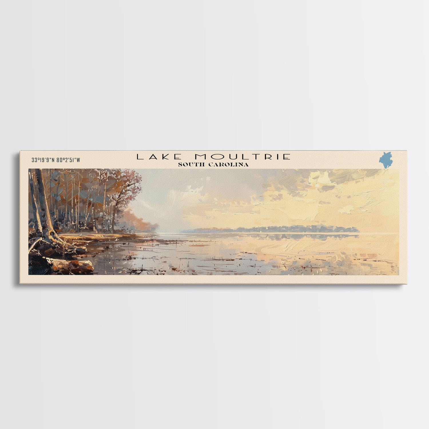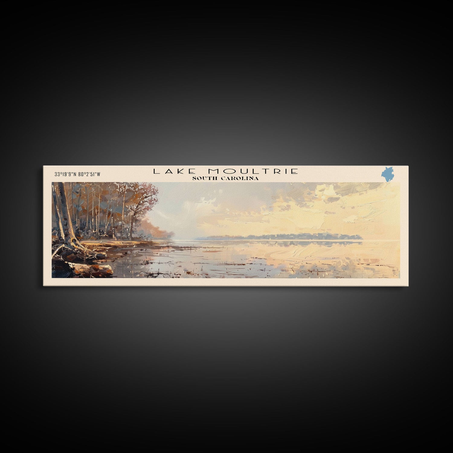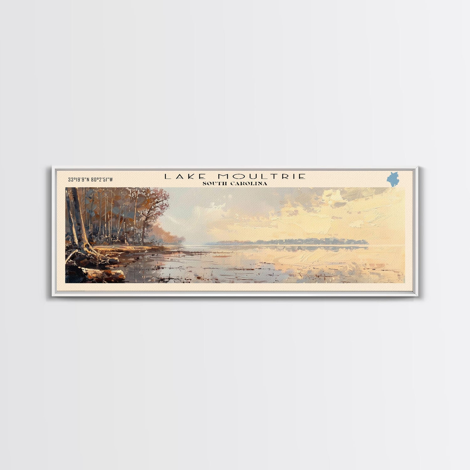 Lake Moultrie Framed Canvas Print, Lake House Decor, Panoramic Wall Art, Travel Poster, Scenic Landscape Painting, Living Room Decor