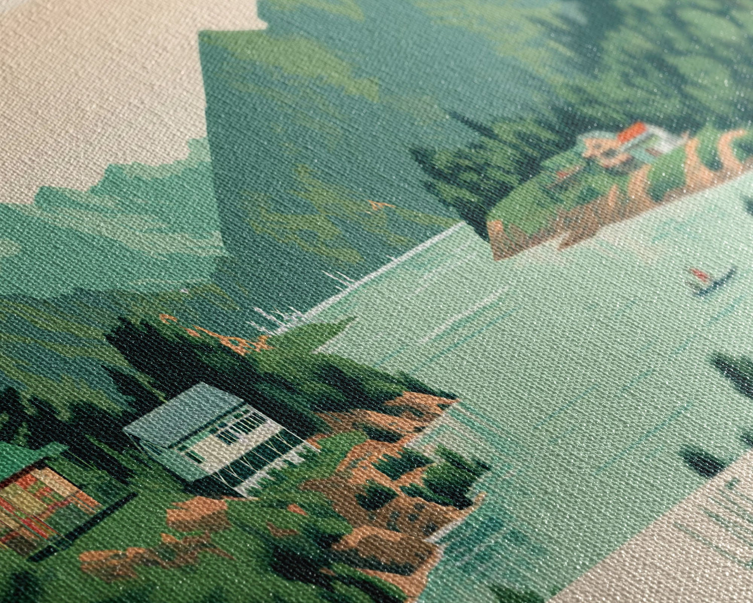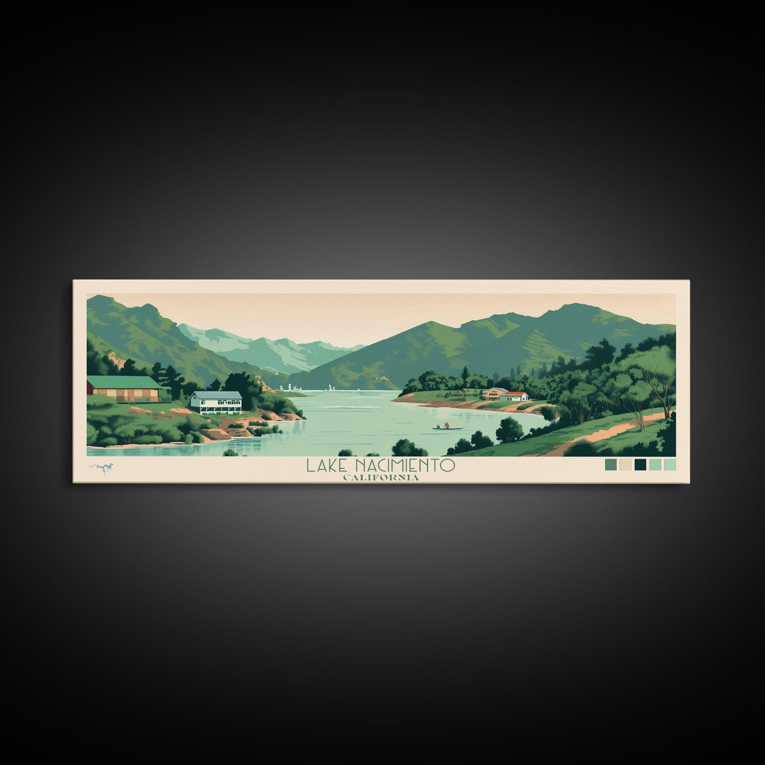 Lake Nacimiento California Framed Canvas Print, Panoramic Wall Art, Midcentury Modern, Pop Art, Living Room Decor, Travel Poster, Lake House Art