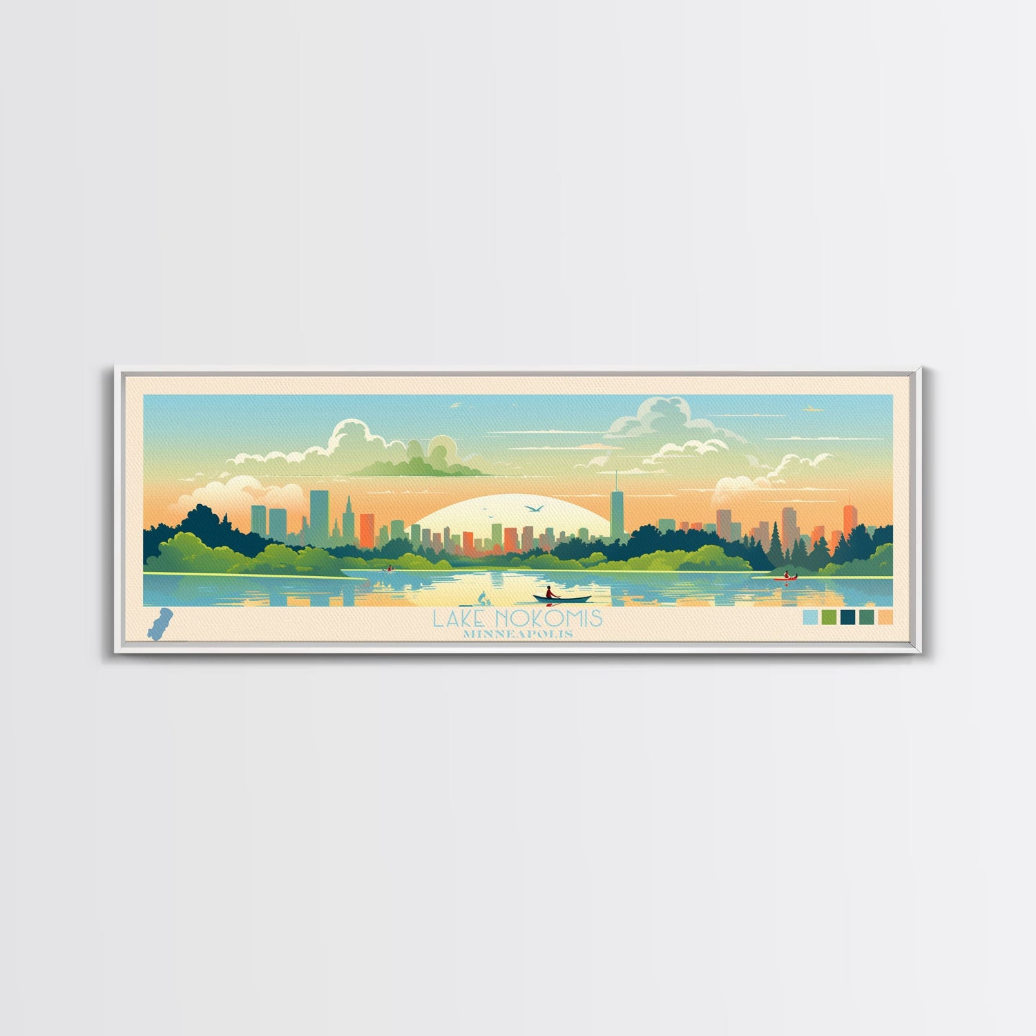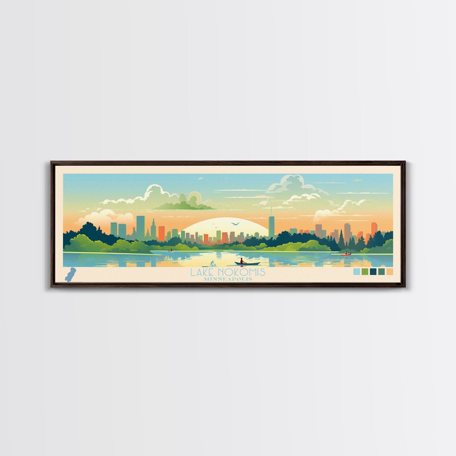 Lake Nokomis Minneapolis Framed Canvas Print, Panoramic Wall Art, Midcentury Modern, Pop Art, Bedroom Art, Travel Poster, Lake House Decor