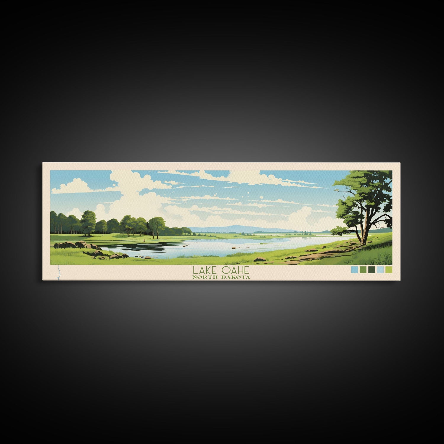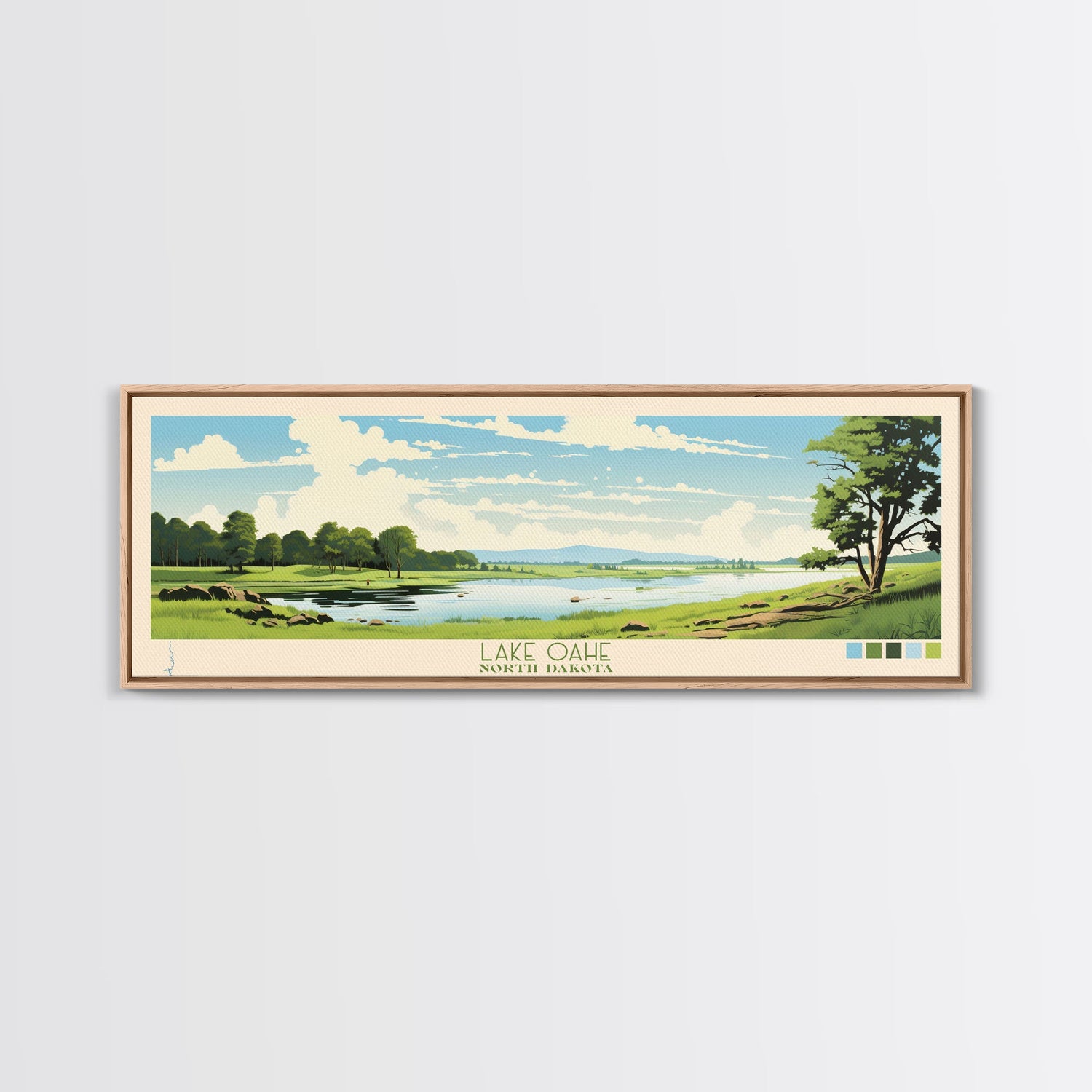 Lake Oahe North Dakota Framed Canvas Print, Panoramic Wall Art, Midcentury Modern, Pop Art, Bedroom Art, Travel Poster, Lake House Decor