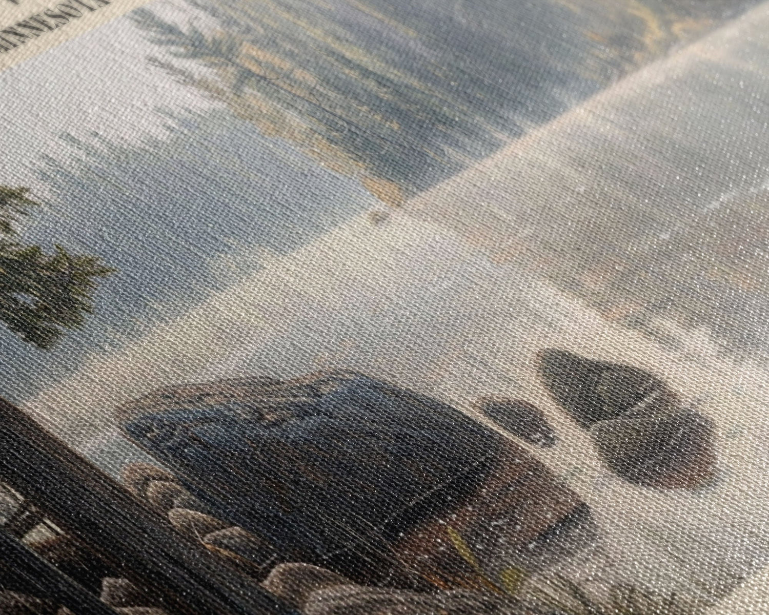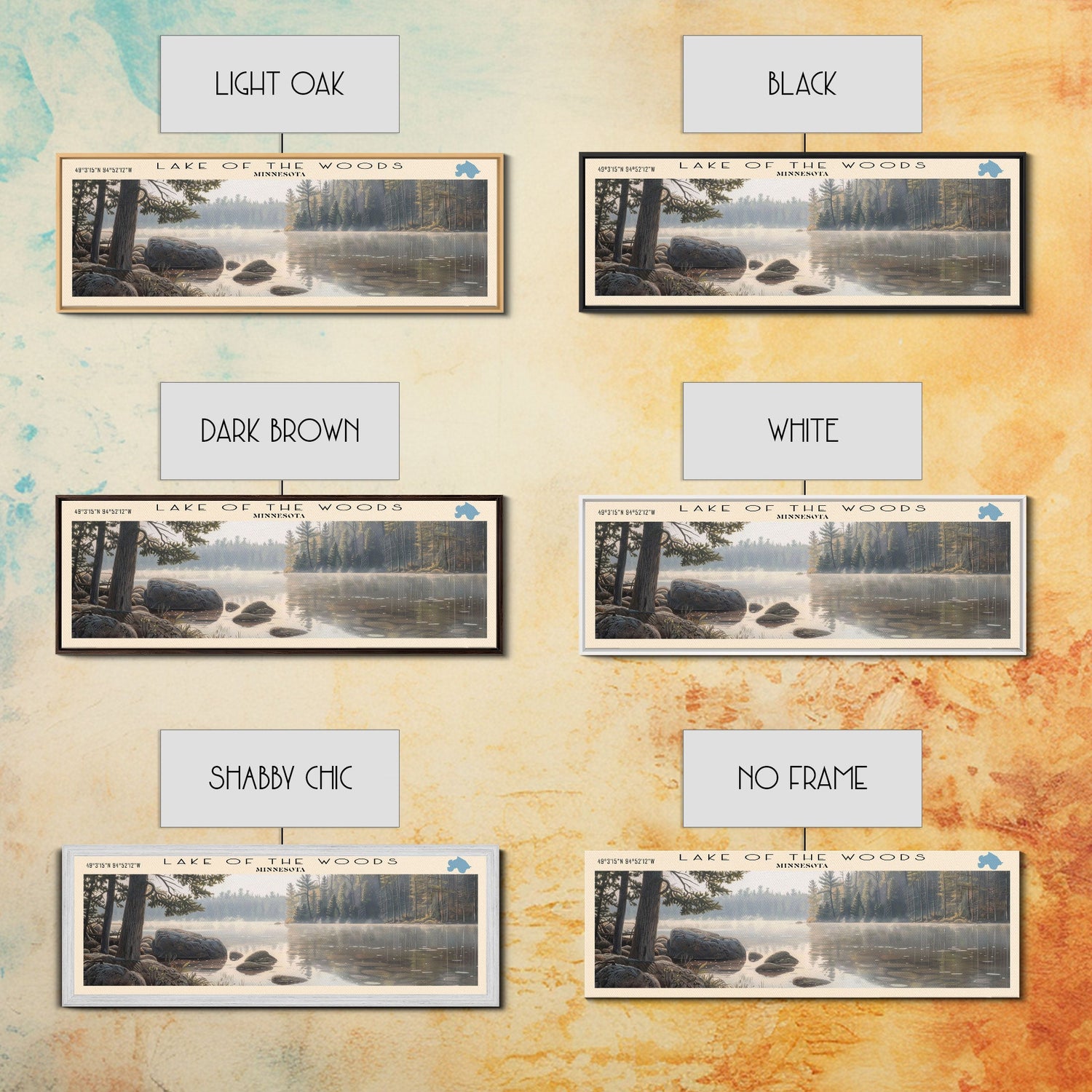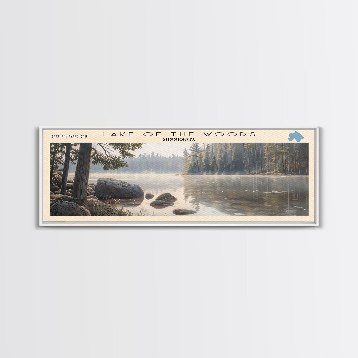Lake of the Woods Framed Canvas Print, Lake House Decor, Panoramic Wall Art, Travel Poster, Landscape Painting, Contemporary Art