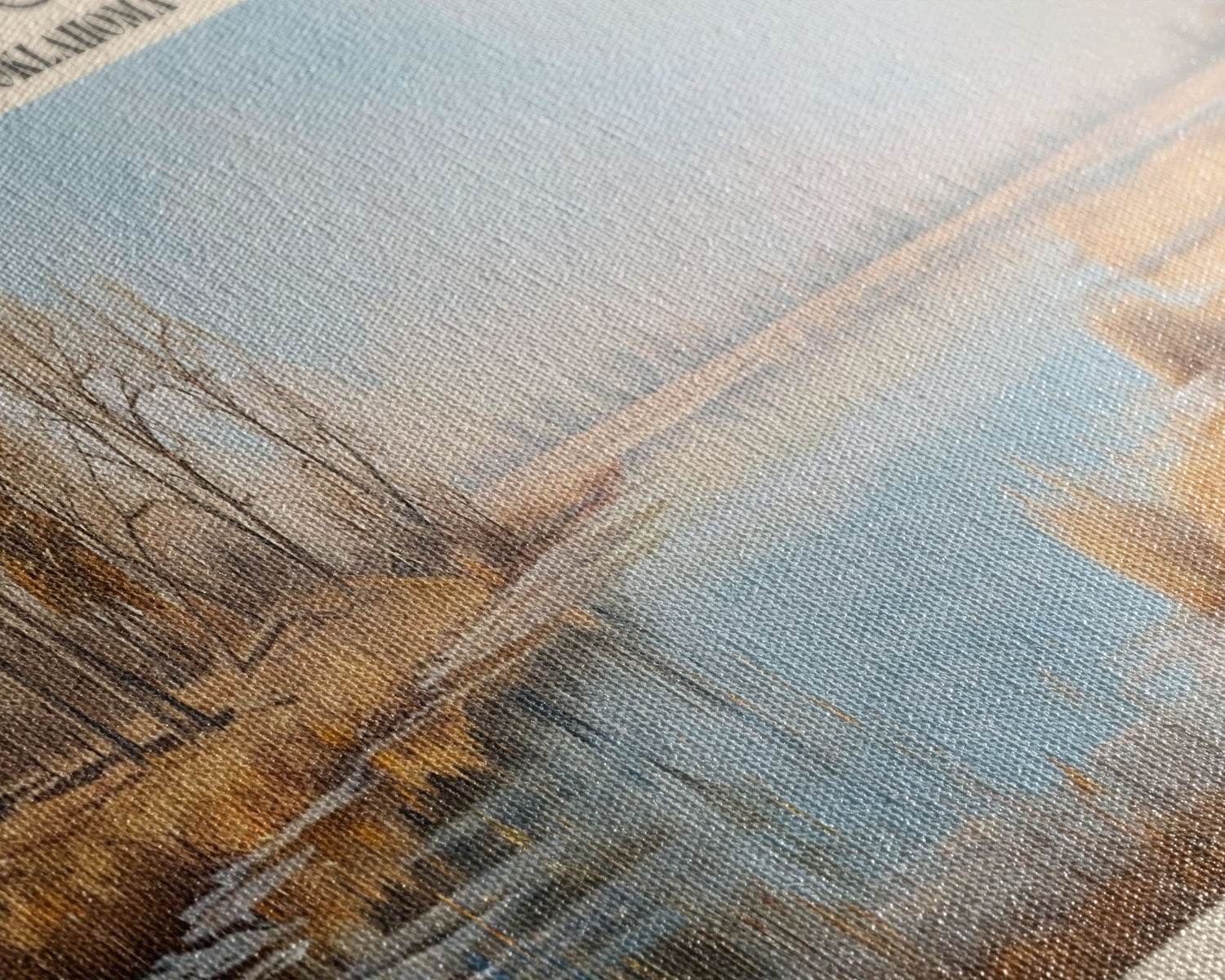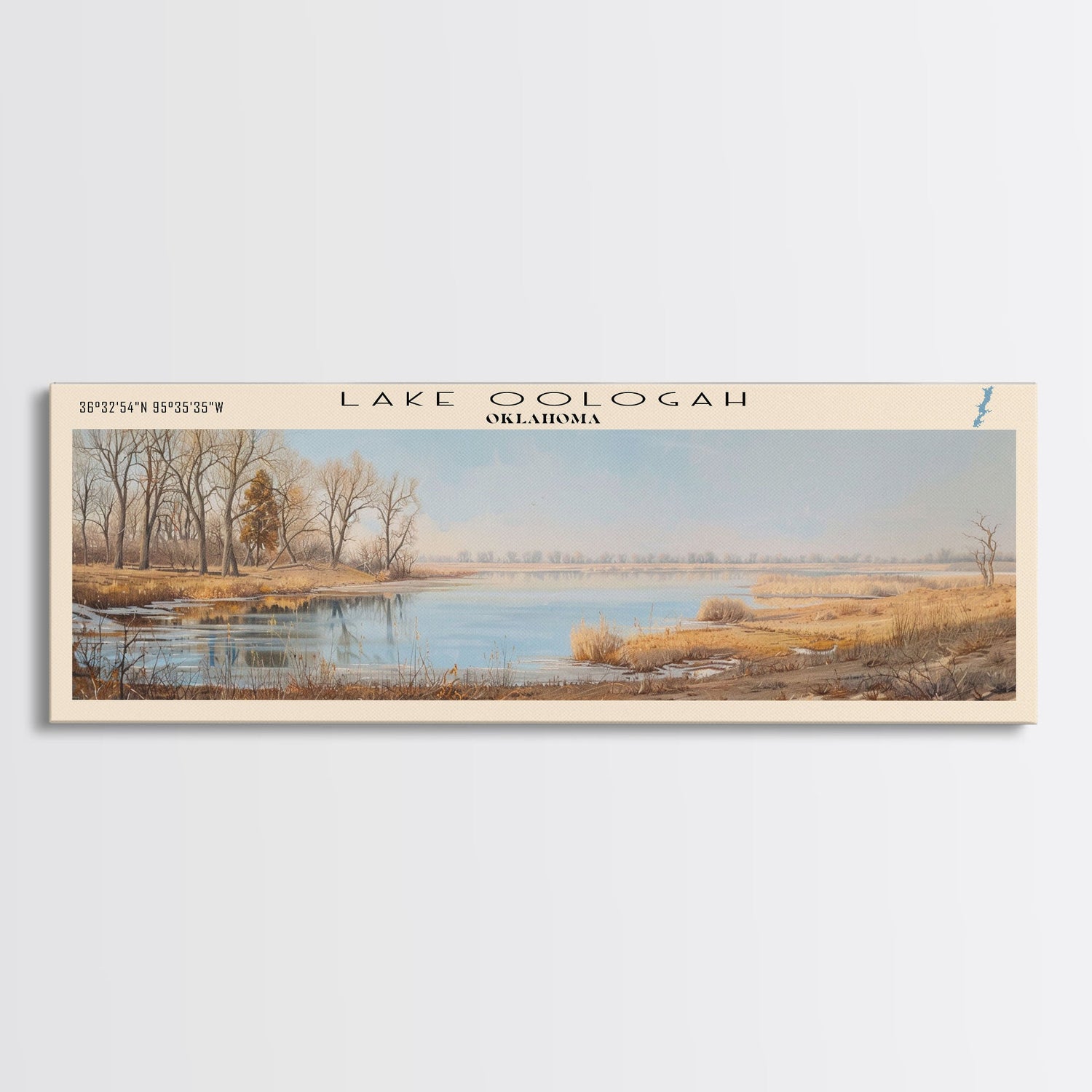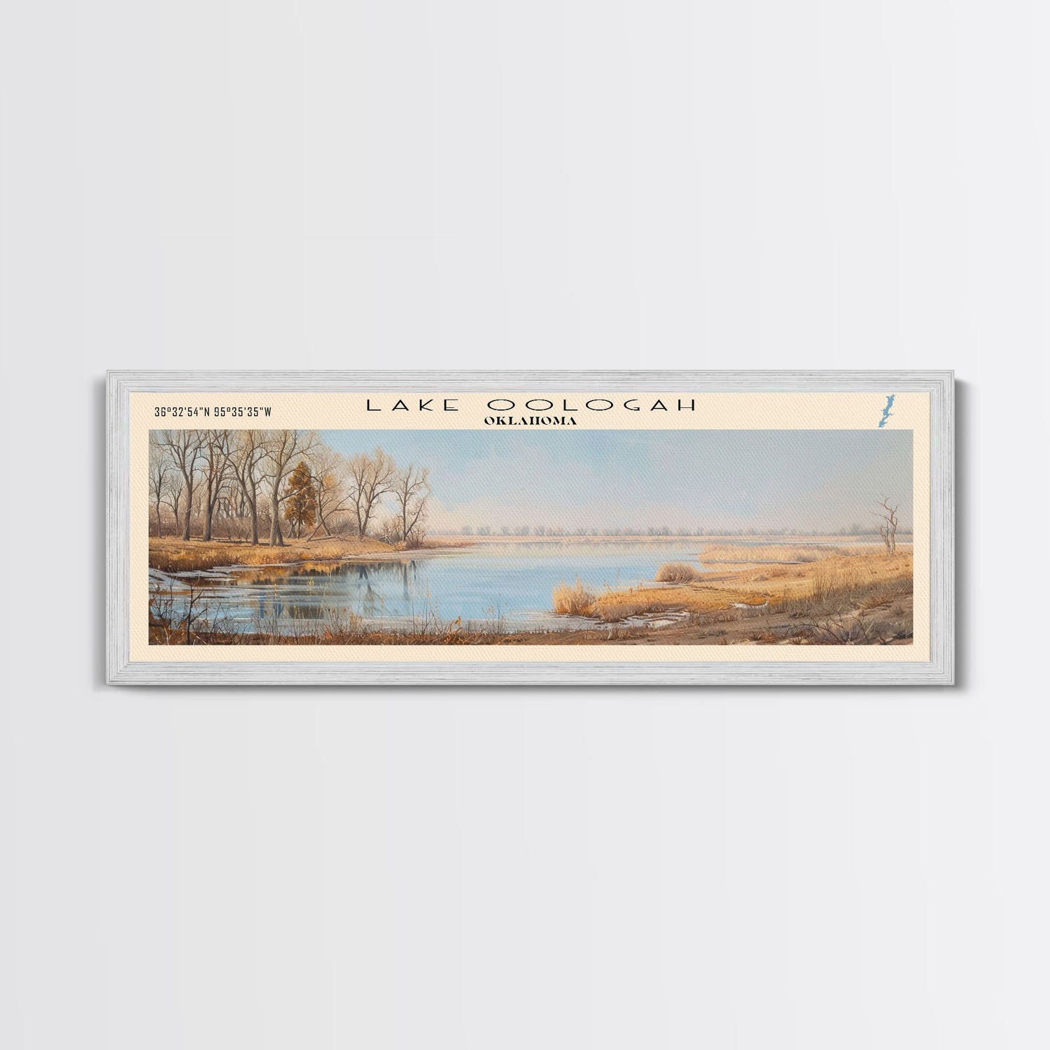 Lake Oologah Oklahoma Framed Canvas Print, Lake House Decor, Panoramic Wall Art, Travel Poster, Serene Landscape Painting, Bedroom Decor