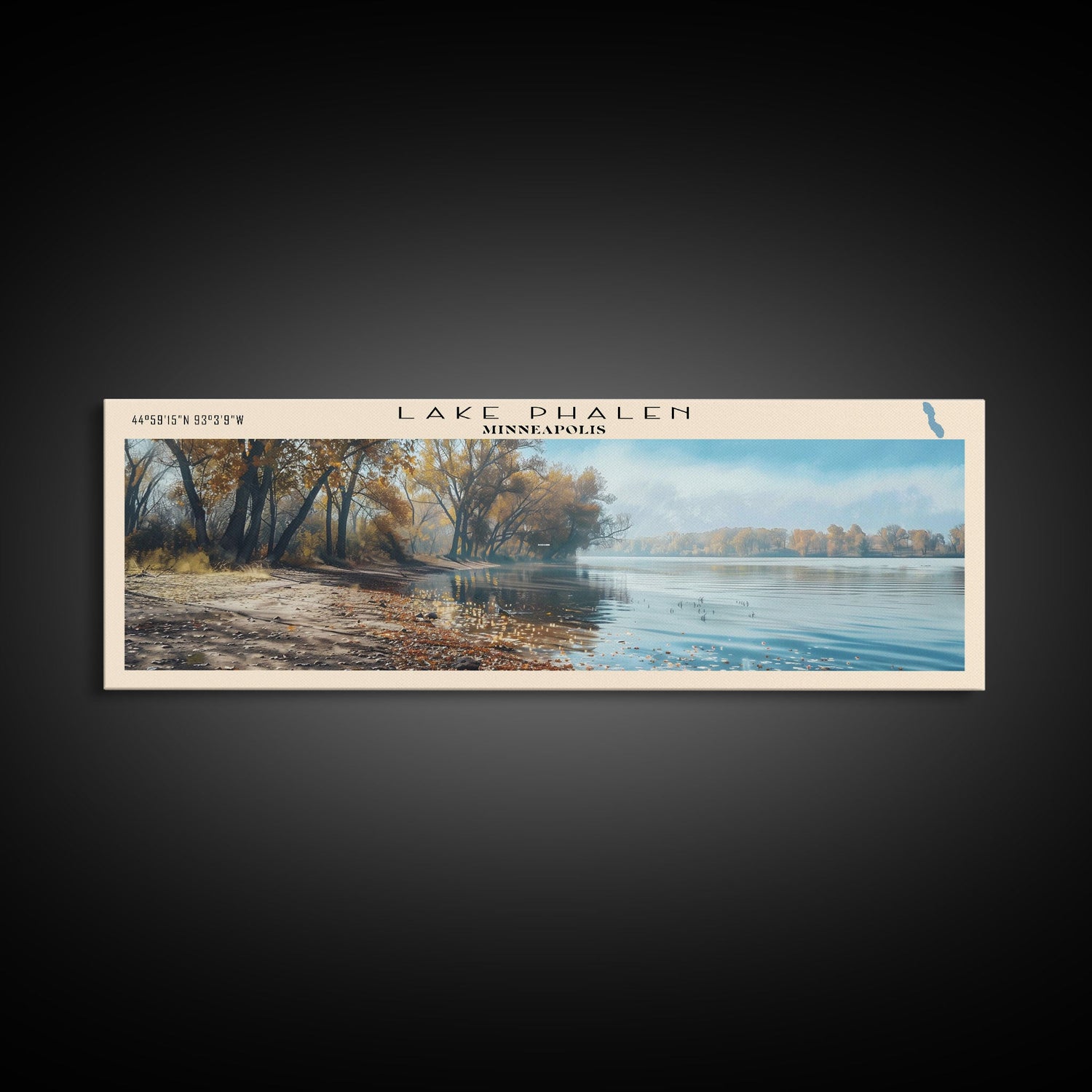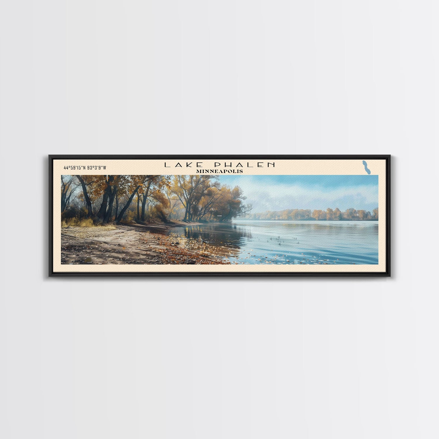 Lake Phalen Minneapolis Framed Canvas Print, Lake House Decor, Panoramic Wall Art, Travel Poster, Serene Landscape Painting, Rustic Art